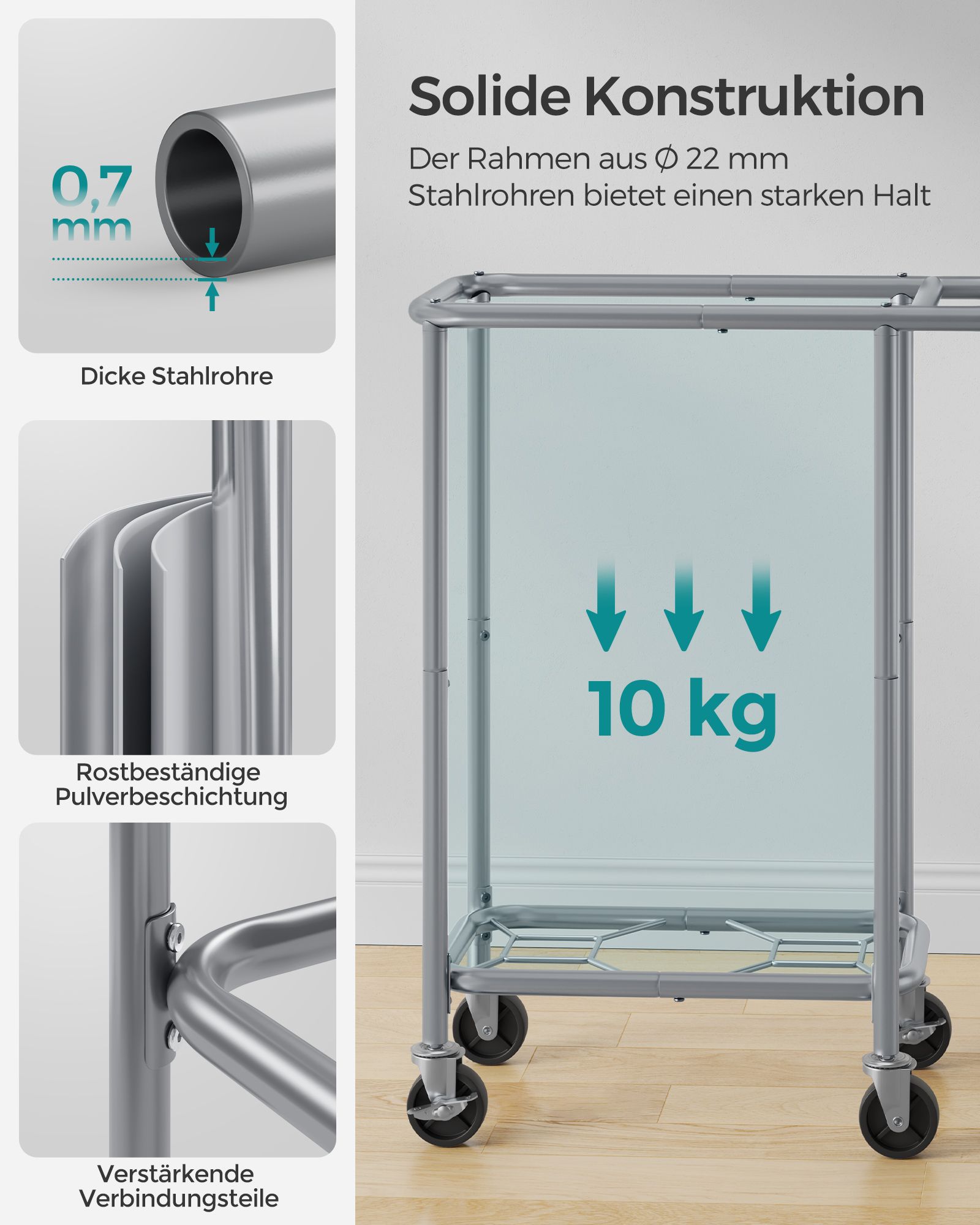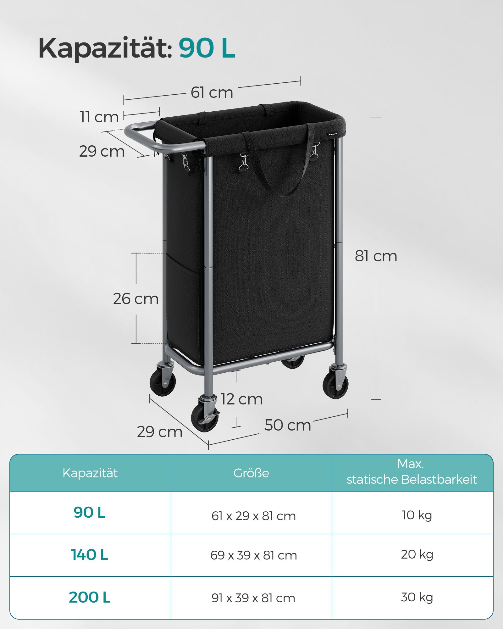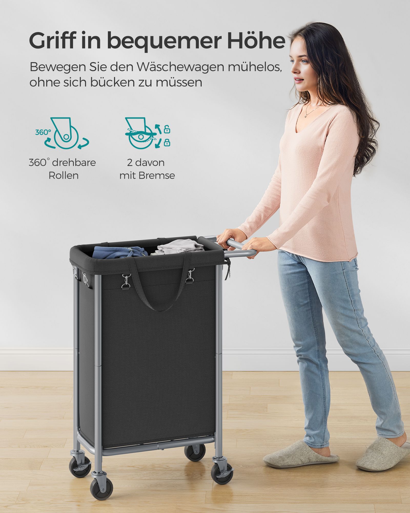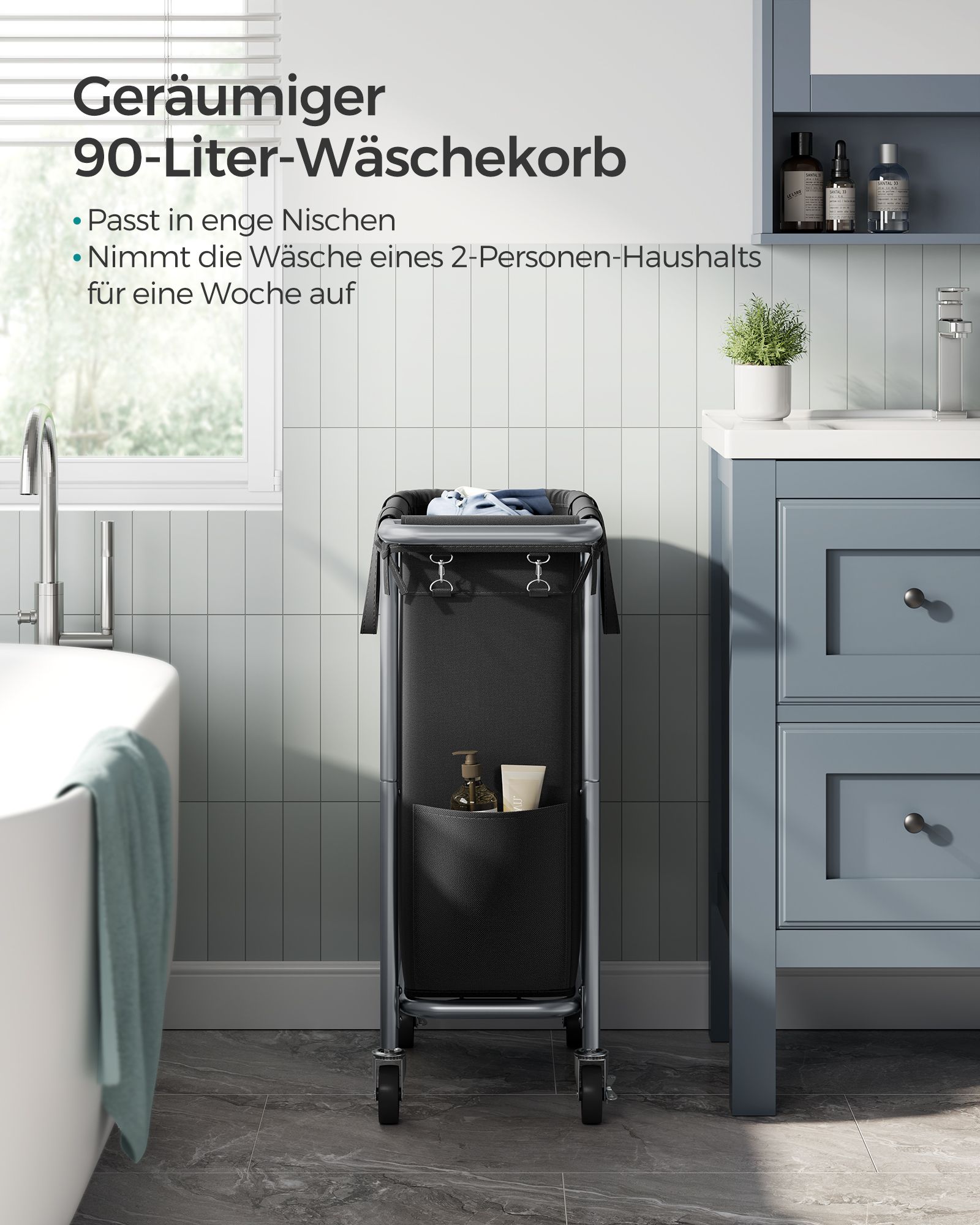 SONGMICS laundry basket, 90 liters, laundry collector with casters, laundry cart, removable laundry bag, steel frame, with handle, spacious