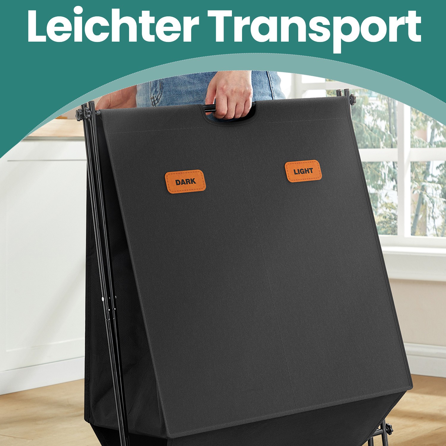 Laundry basket, laundry collector 155 liters, laundry box, 4 compartments, foldable X-frame, labels, for laundry room, bedroom, ink black