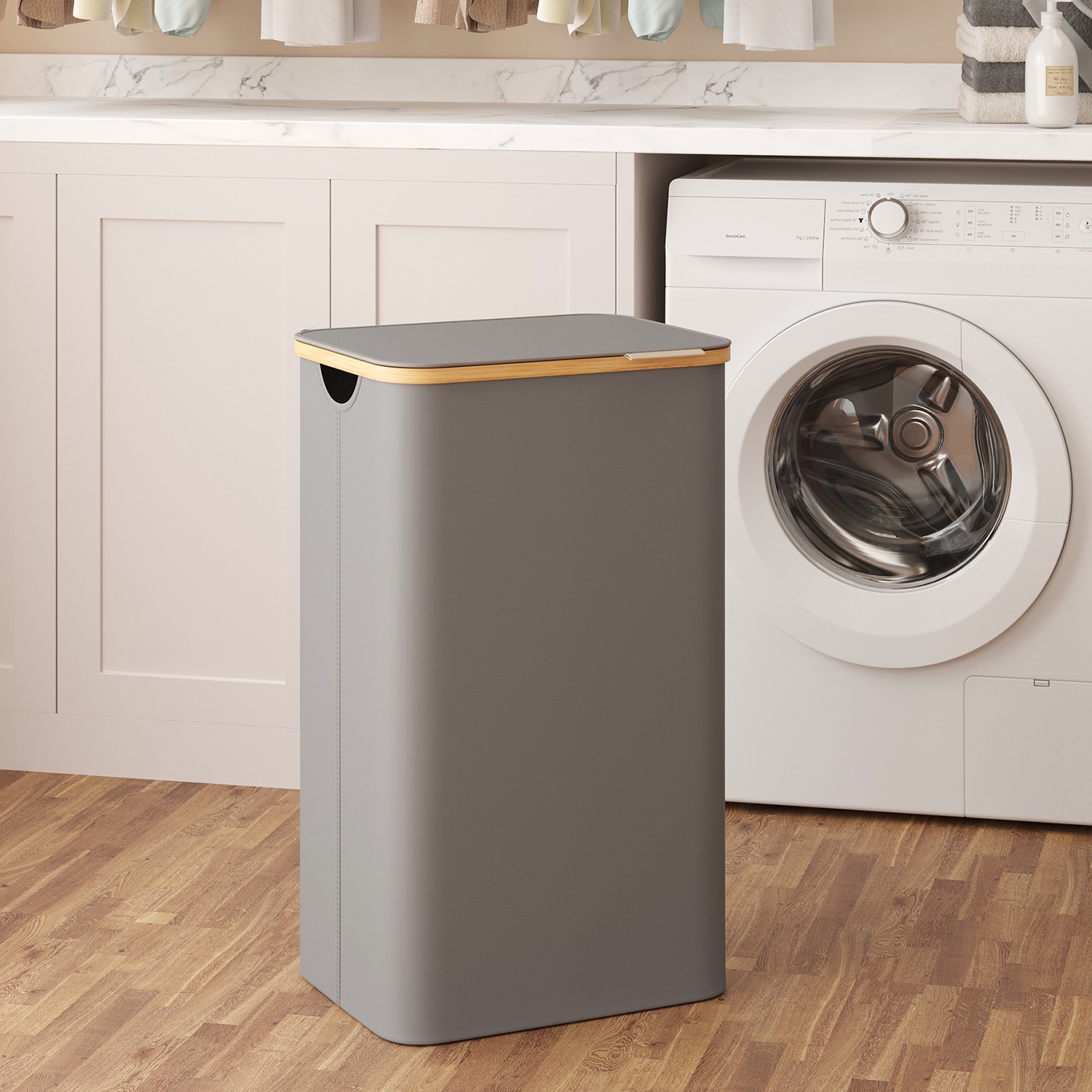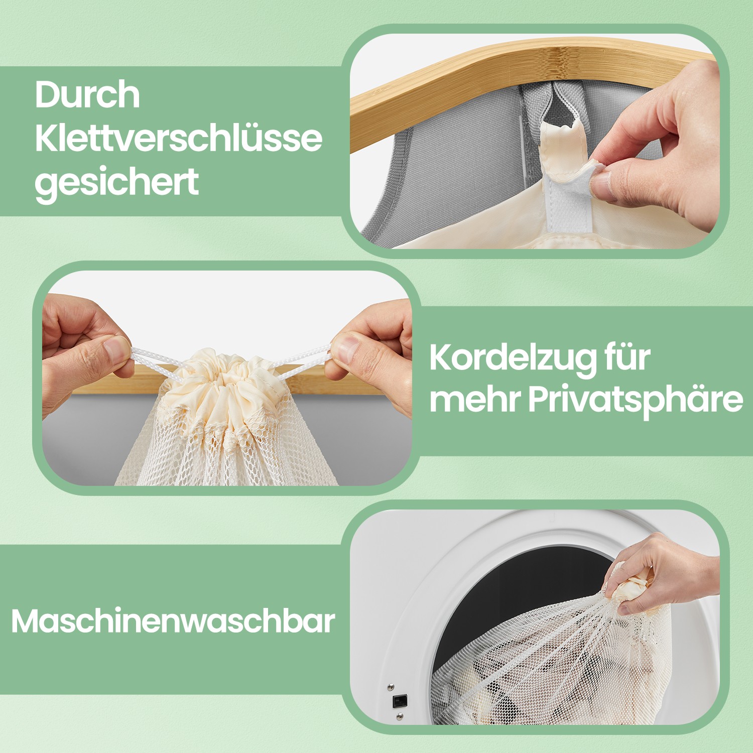 Laundry basket with 3 compartments, laundry collector with lid, 150 L, removable laundry bag, Oxford fabric, collapsible, ink black