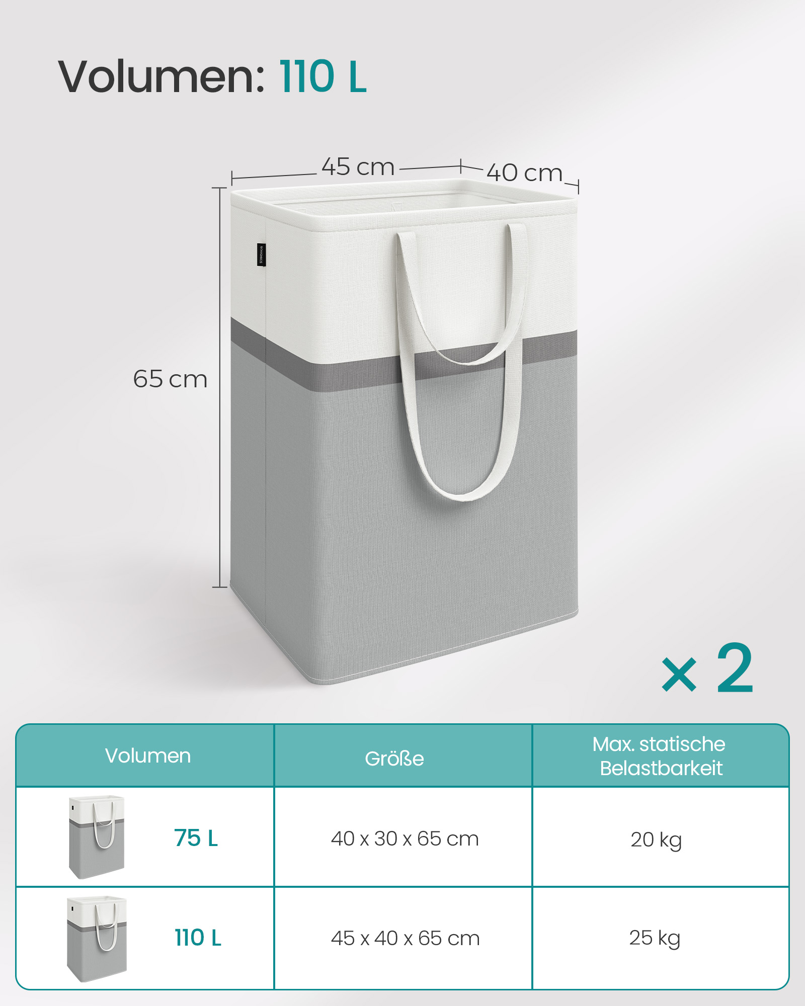 Size per laundry bag: 45 x 40 x 65 cm (L x W x H)