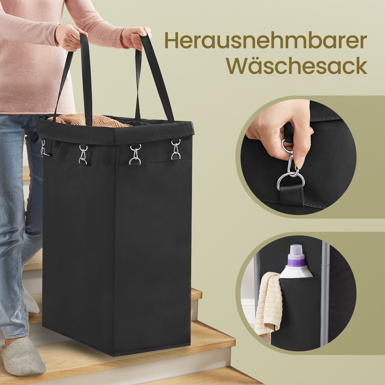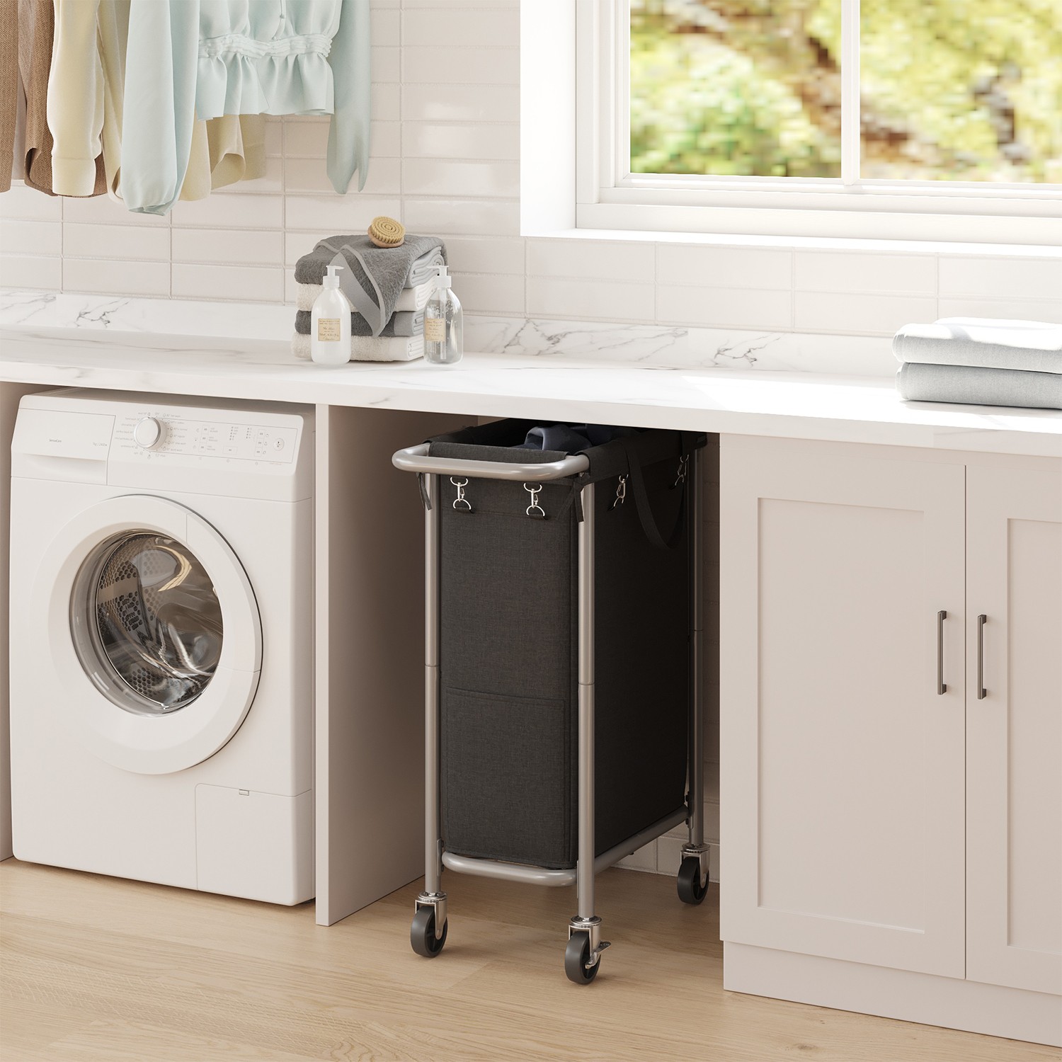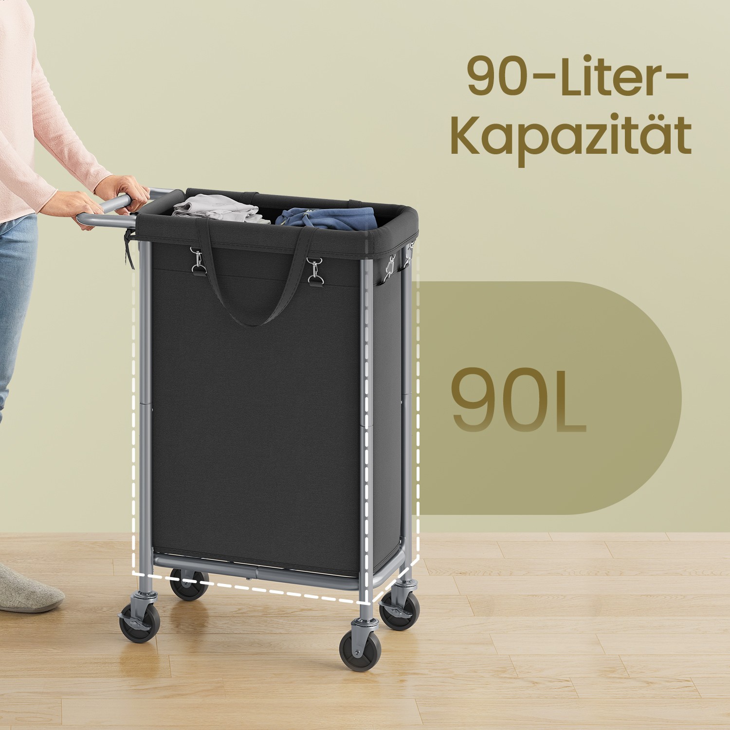 SONGMICS laundry basket, 90 liters, laundry collector with casters, laundry cart, removable laundry bag, steel frame, with handle, spacious
