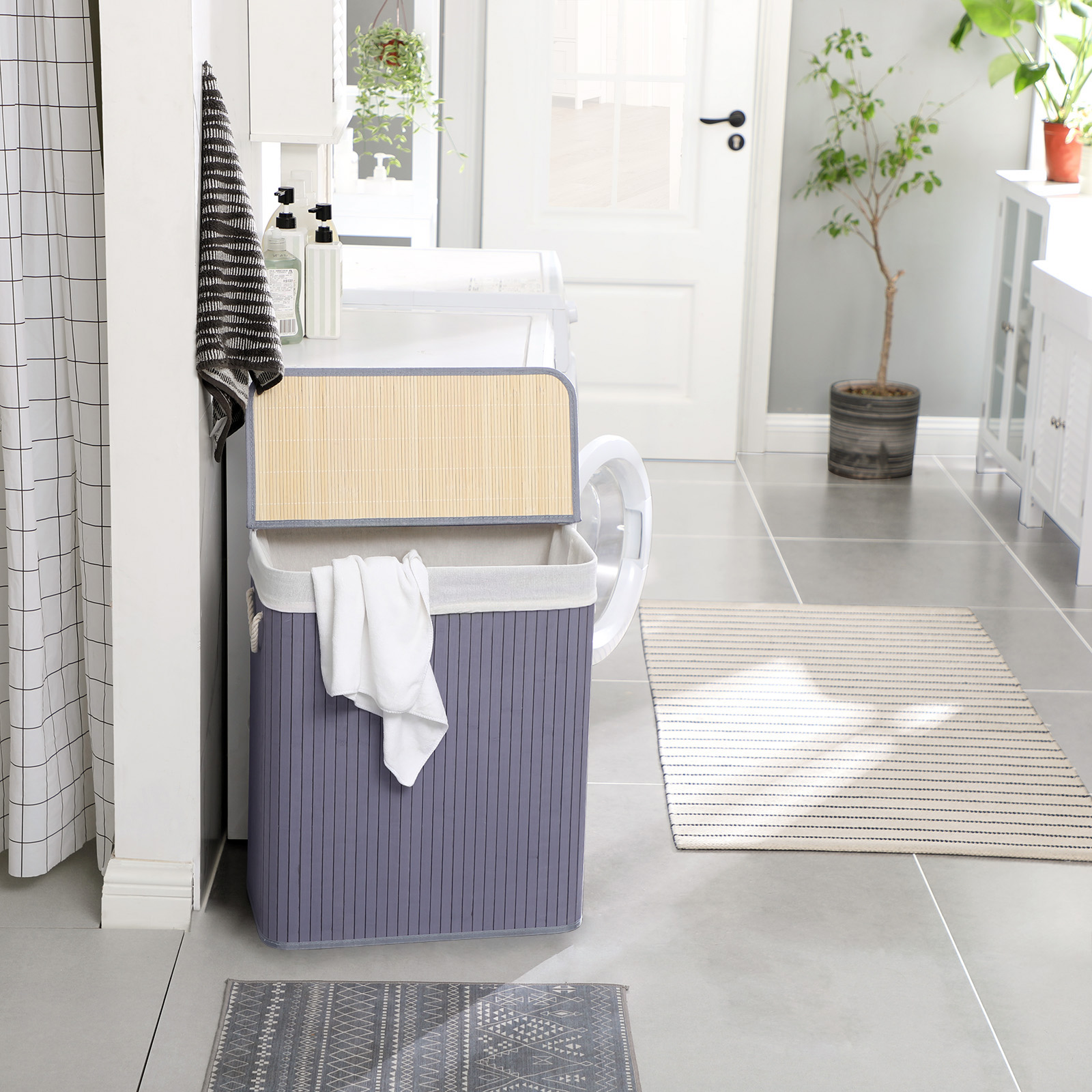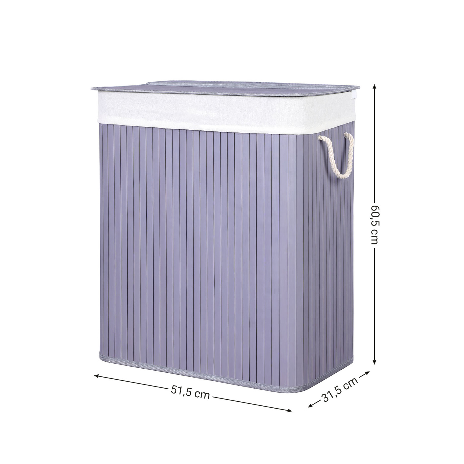 For an effortless laundry day: Is your dirty laundry scattered all over the room, so that you have to laboriously collect it on laundry day before you can take it to the washing machine? Or do you regularly discover more items of clothing after your laundry is already happily spinning in the washing machine?If so, this laundry basket from SONGMICS is just right for you! Welcome bamboo into your home: Natural material? Renewable? These are just the icing on the cake when it comes to the advantages of bamboo. This material is also characterized by its high stability and attractive, fresh appearance. So you don’t have to compromise on style when you want to buy a sturdy piece of furniture. Will accompany you for many years: The metal frame and base plate give the basket a stable hold. This makes this laundry basket resistant to deformation and promises good load-bearing capacity (up to 25 kg) and a long service life. Product details: Color: White Material: bamboo, cotton, plywood, metal frame, ABS clip Size: 51.5 x 31.5 x 60.5 cm (L x W x H) Weight: 2.7 kg Max. static load capacity: 25 kg Scope of delivery: 1 x laundry basket 1 x instructions (DE, EN, FR, ES, IT) SONGMICS notes:Please do not store sharp objects in this product to avoid damage or injury. The max. static load capacity is 25 kg. Please do not store heavier items in this laundry basket.