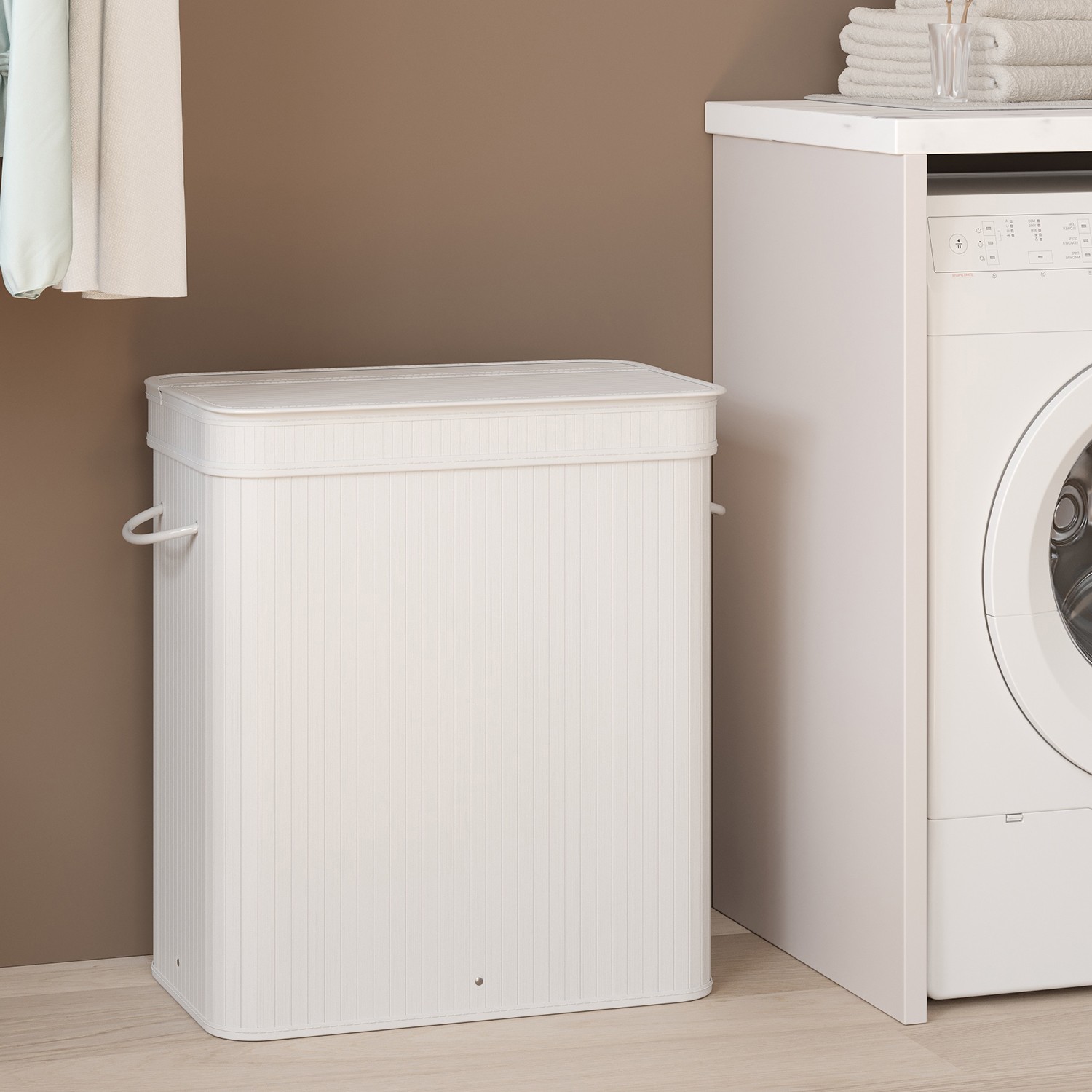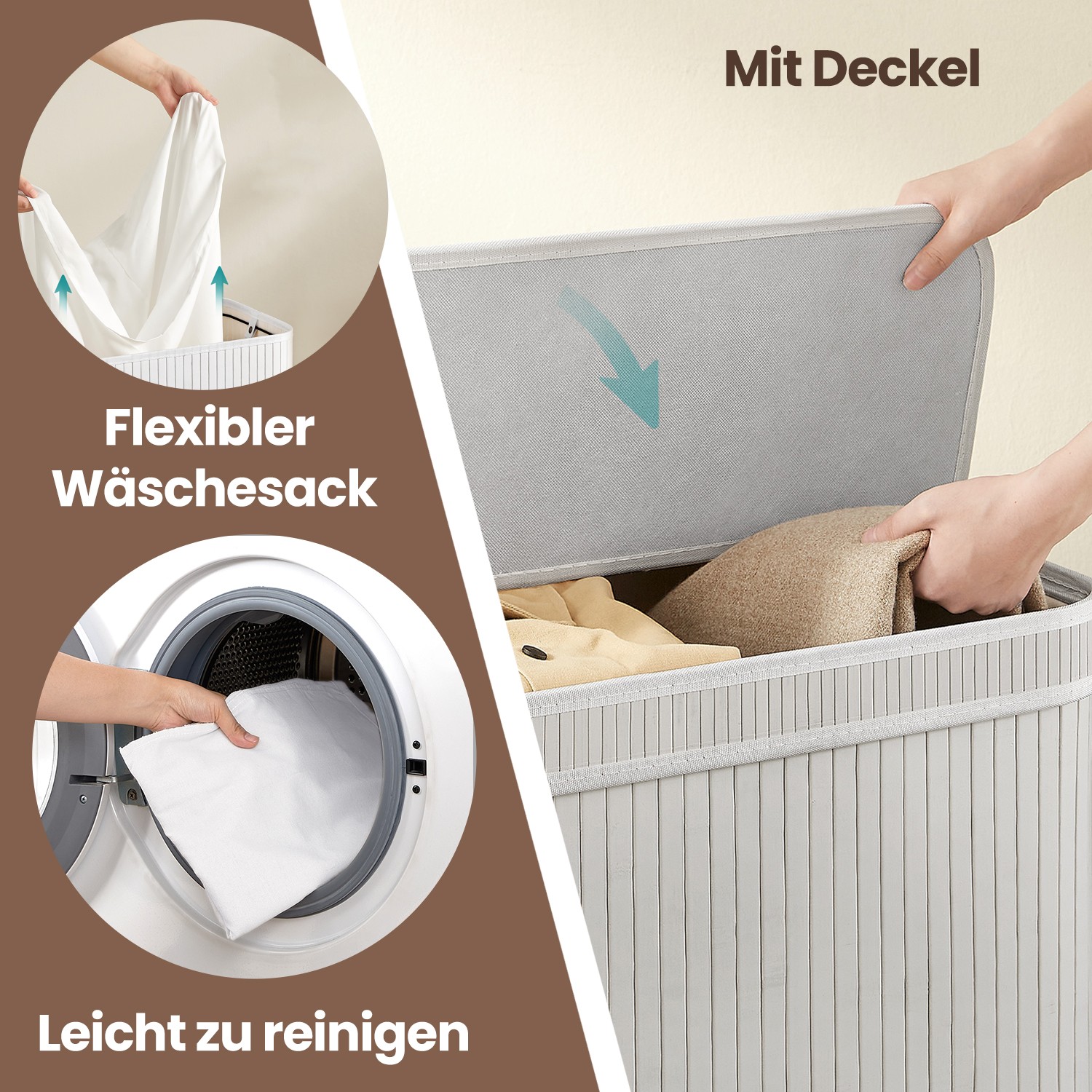 SONGMICS laundry basket with lid, 100 liters, bamboo laundry collector, removable and machine-washable laundry bag, with handles, for laundry room, bedroom, living room, natural color LCB063N01