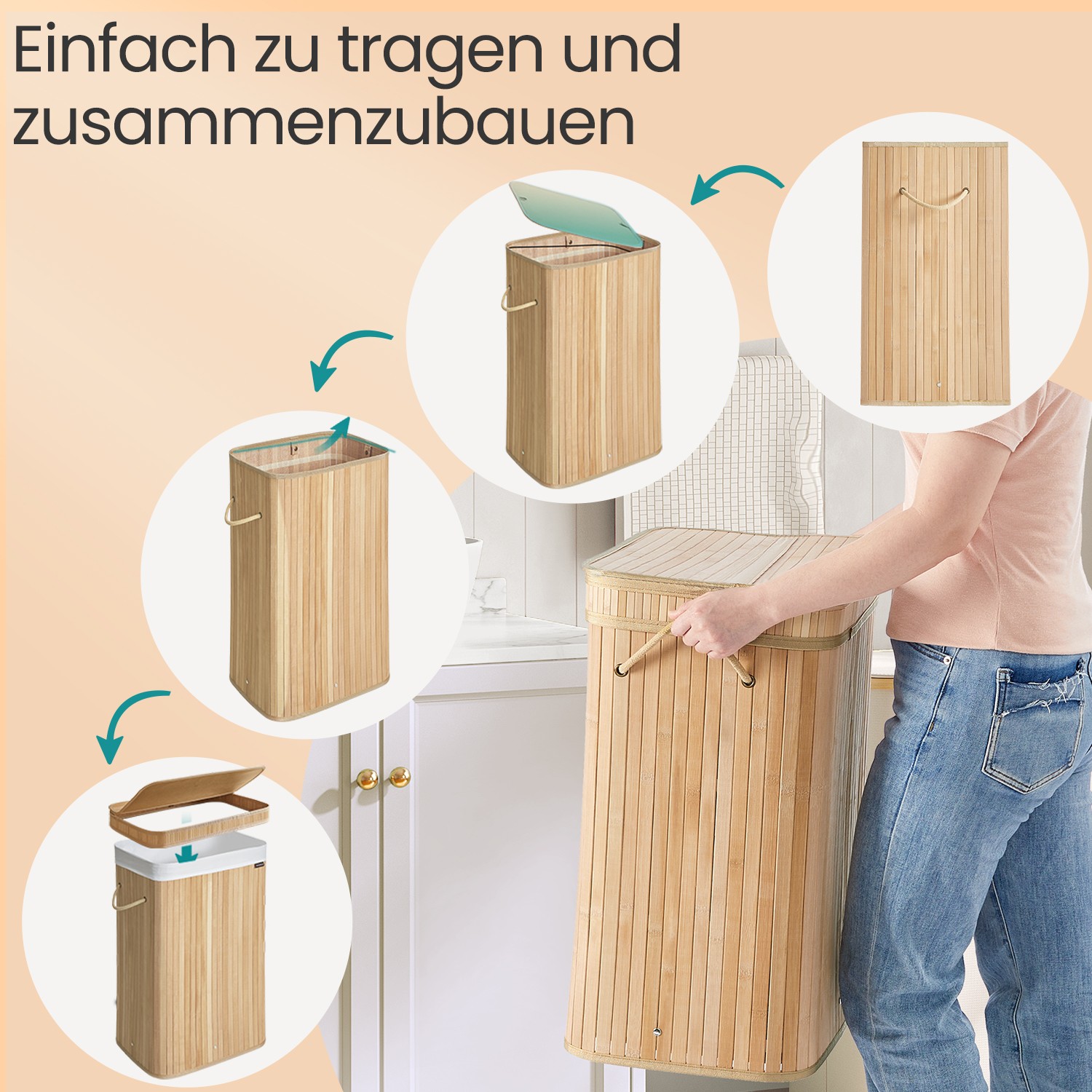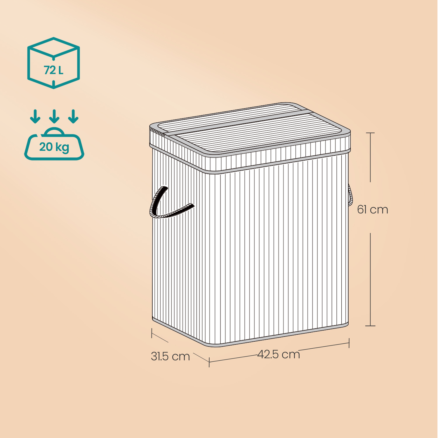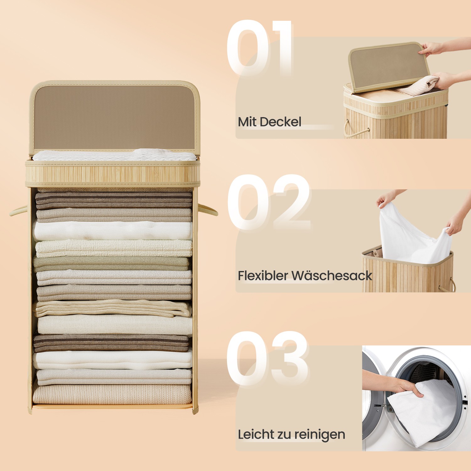 SONGMICS laundry basket with lid, 100 liters, bamboo laundry collector, removable and machine-washable laundry bag, with handles, for laundry room, bedroom, living room, natural color LCB063N01