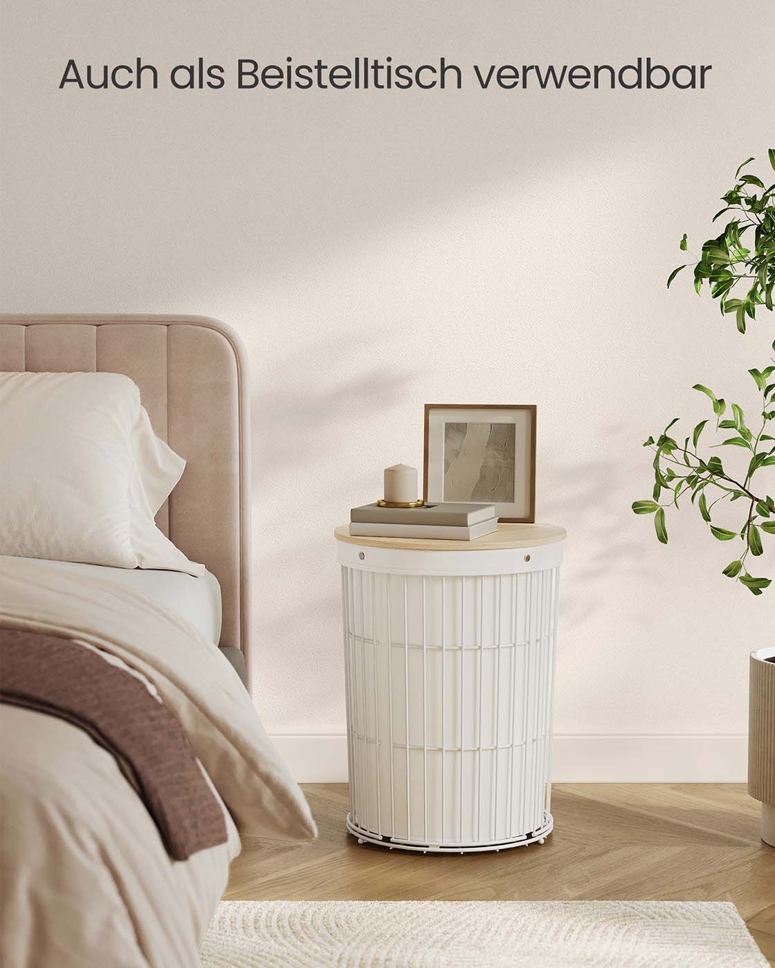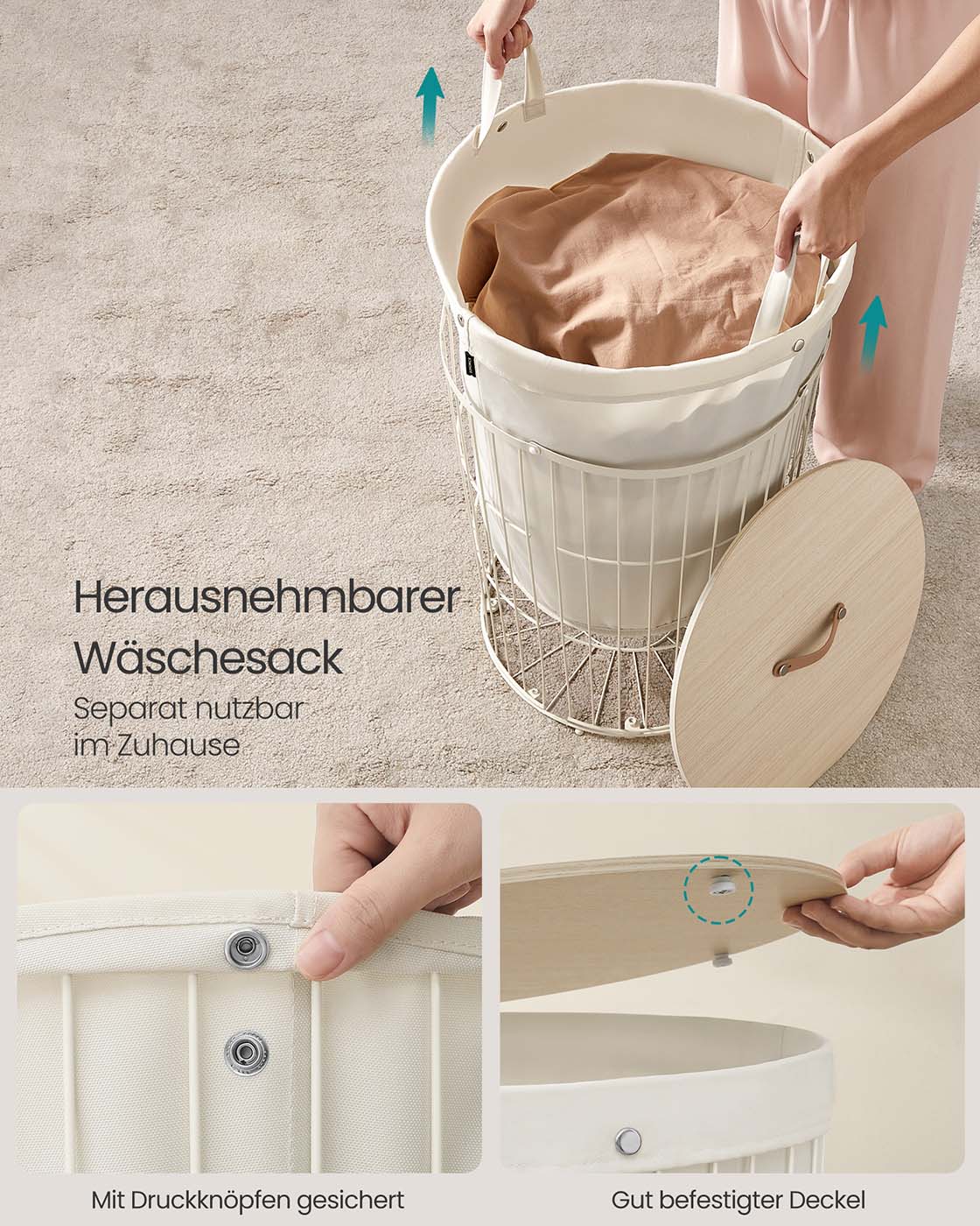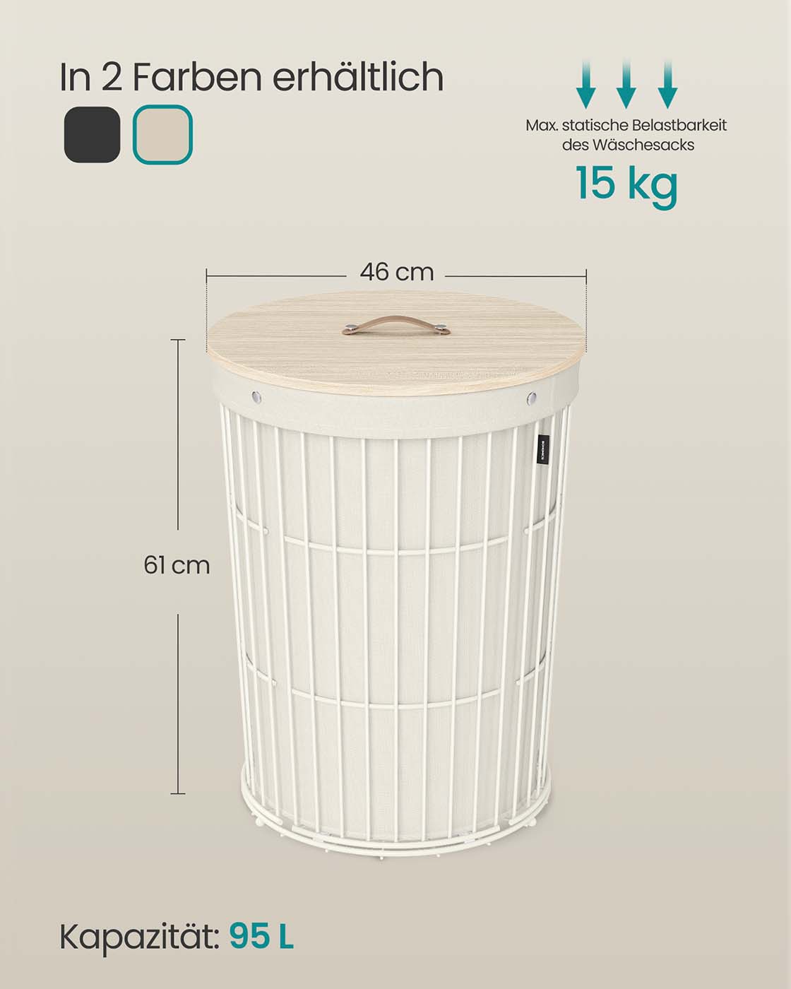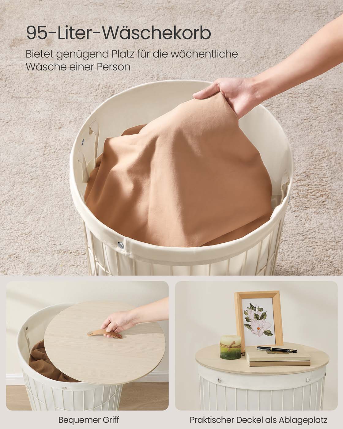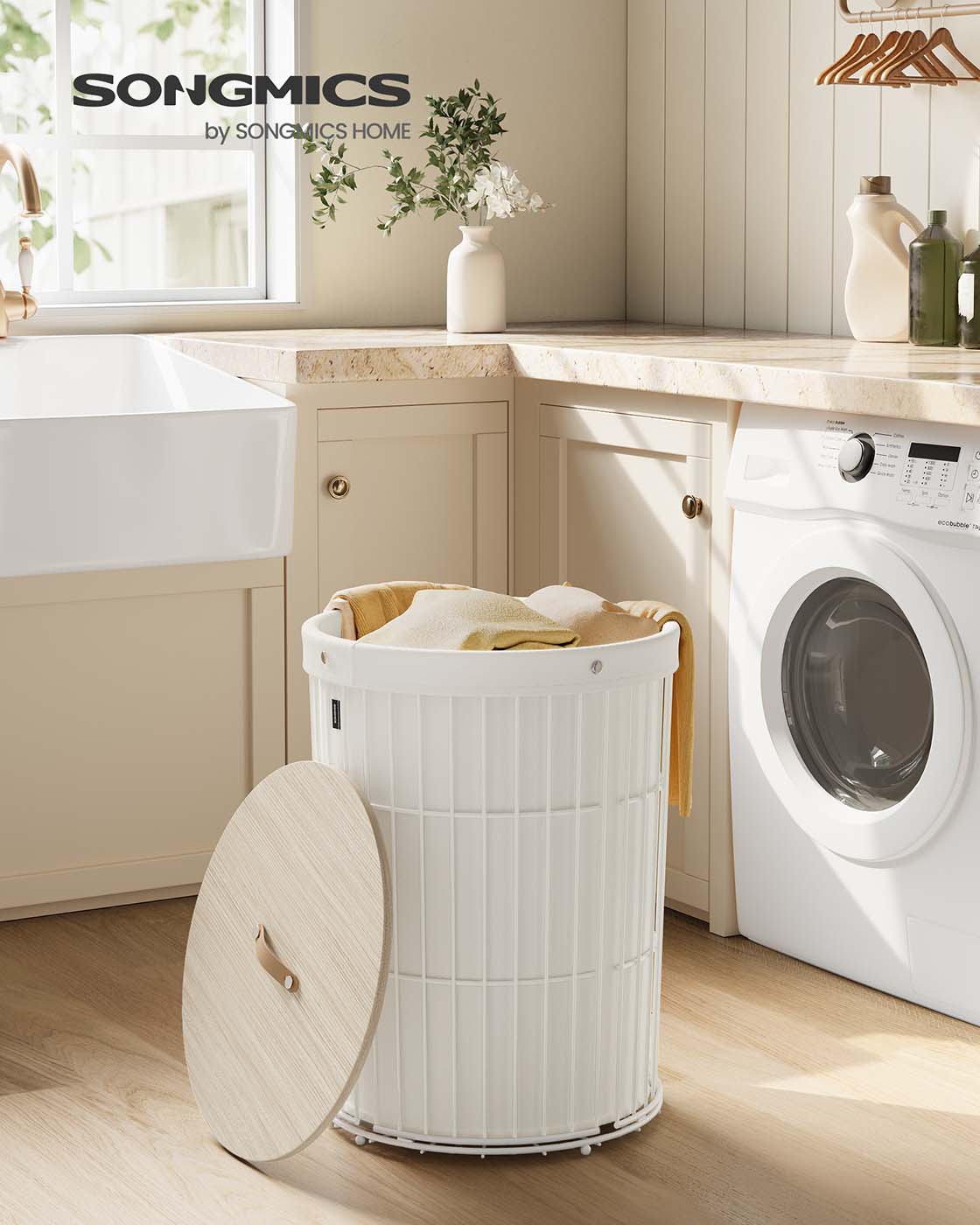 SONGMICS laundry basket with lid, round laundry collector, 95 L, versatile, removable laundry bag, large capacity, for laundry room, bedroom, living room, ink black LCB160B01
