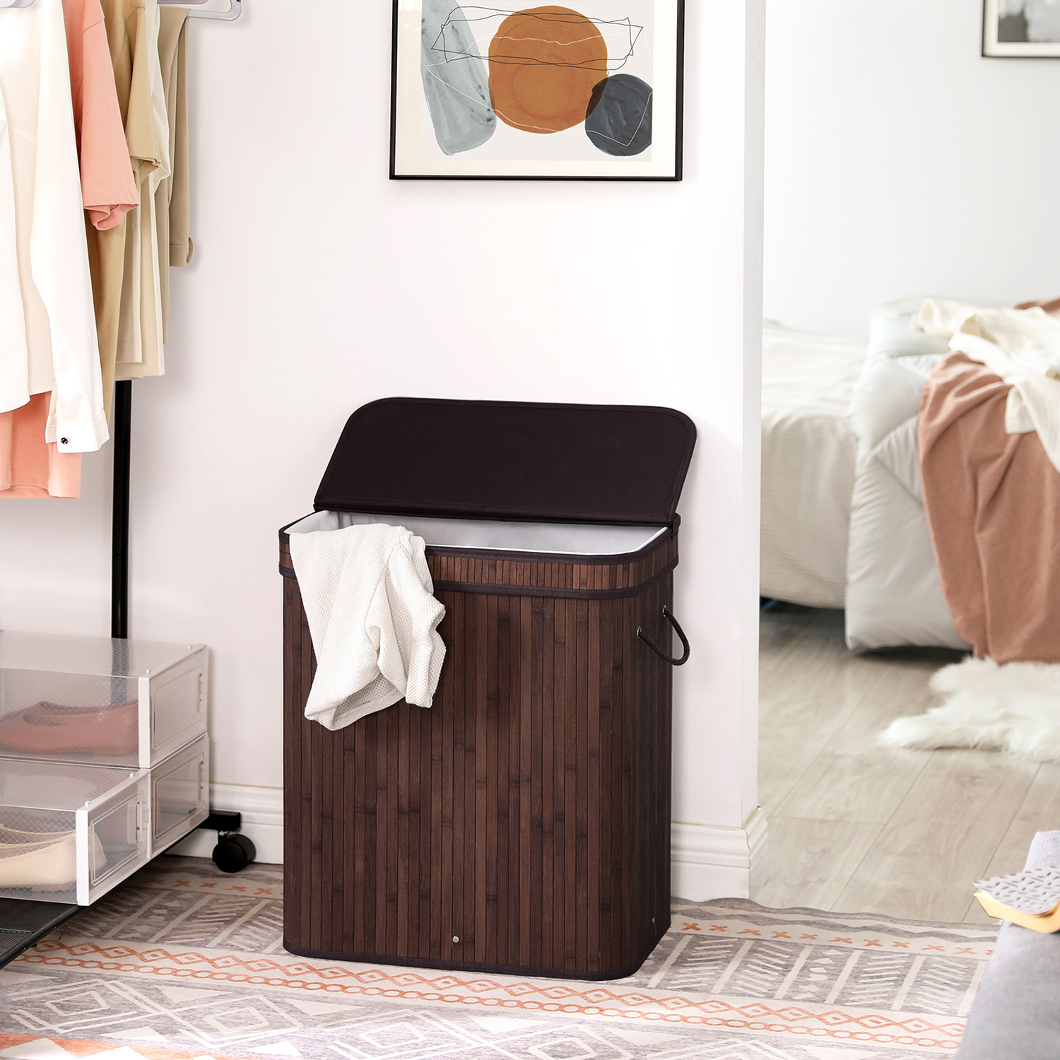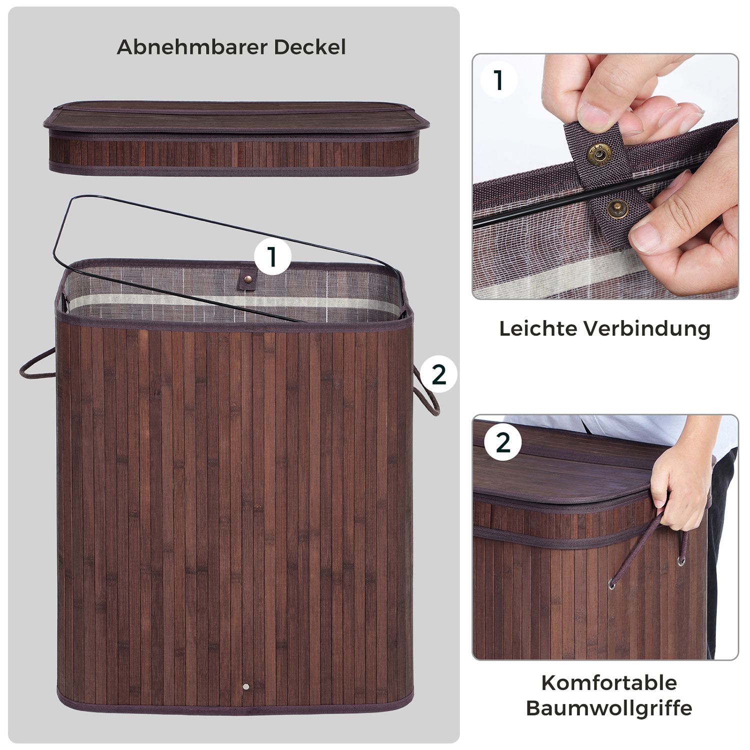 SONGMICS laundry basket with lid, 100 liters, bamboo laundry collector, removable and machine-washable laundry bag, with handles, for laundry room, bedroom, living room, natural color LCB063N01