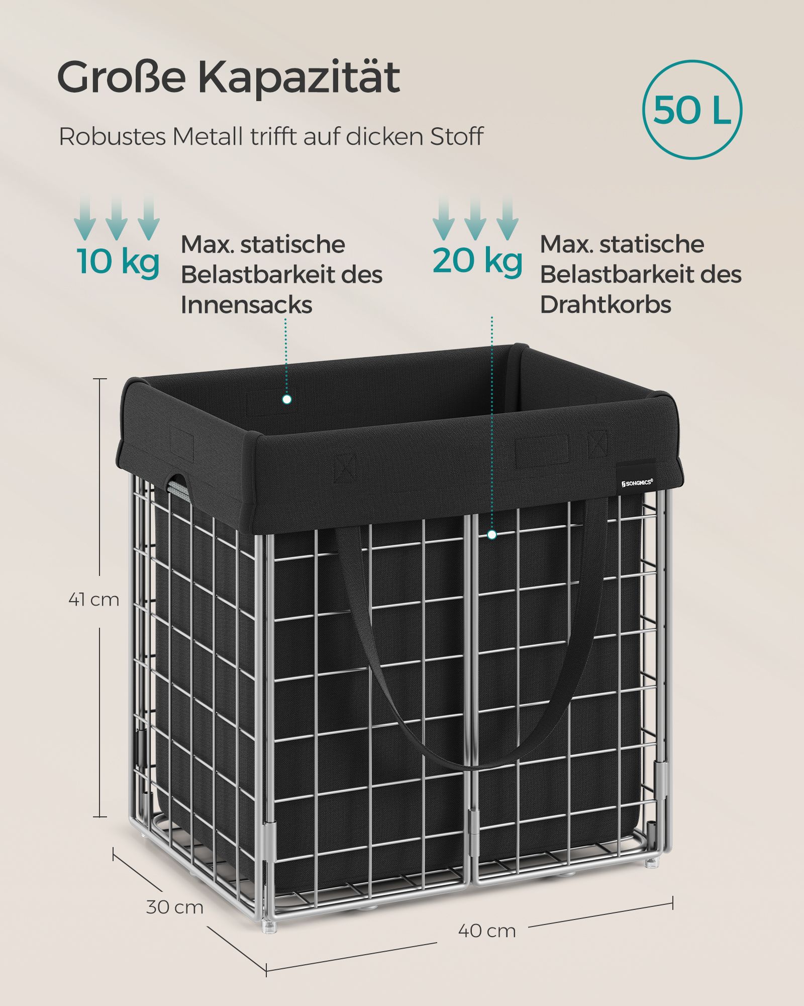SONGMICS laundry basket 50L, foldable laundry collector, removable and washable laundry bag, metal wire frame, for bedroom, bathroom, laundry room