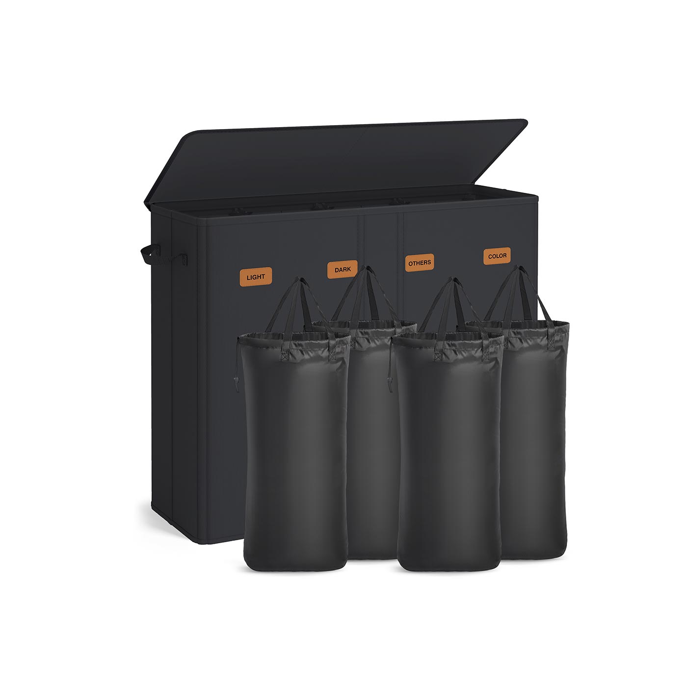 SONGMICS laundry basket with 3 compartments, 160 L, with lid, 5 labels, removable and washable inner bag, laundry room bedroom, ink black RLH013B01