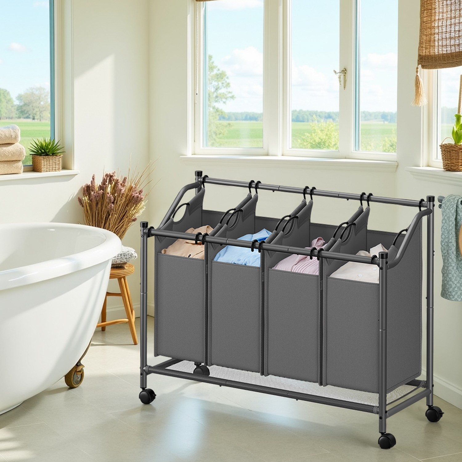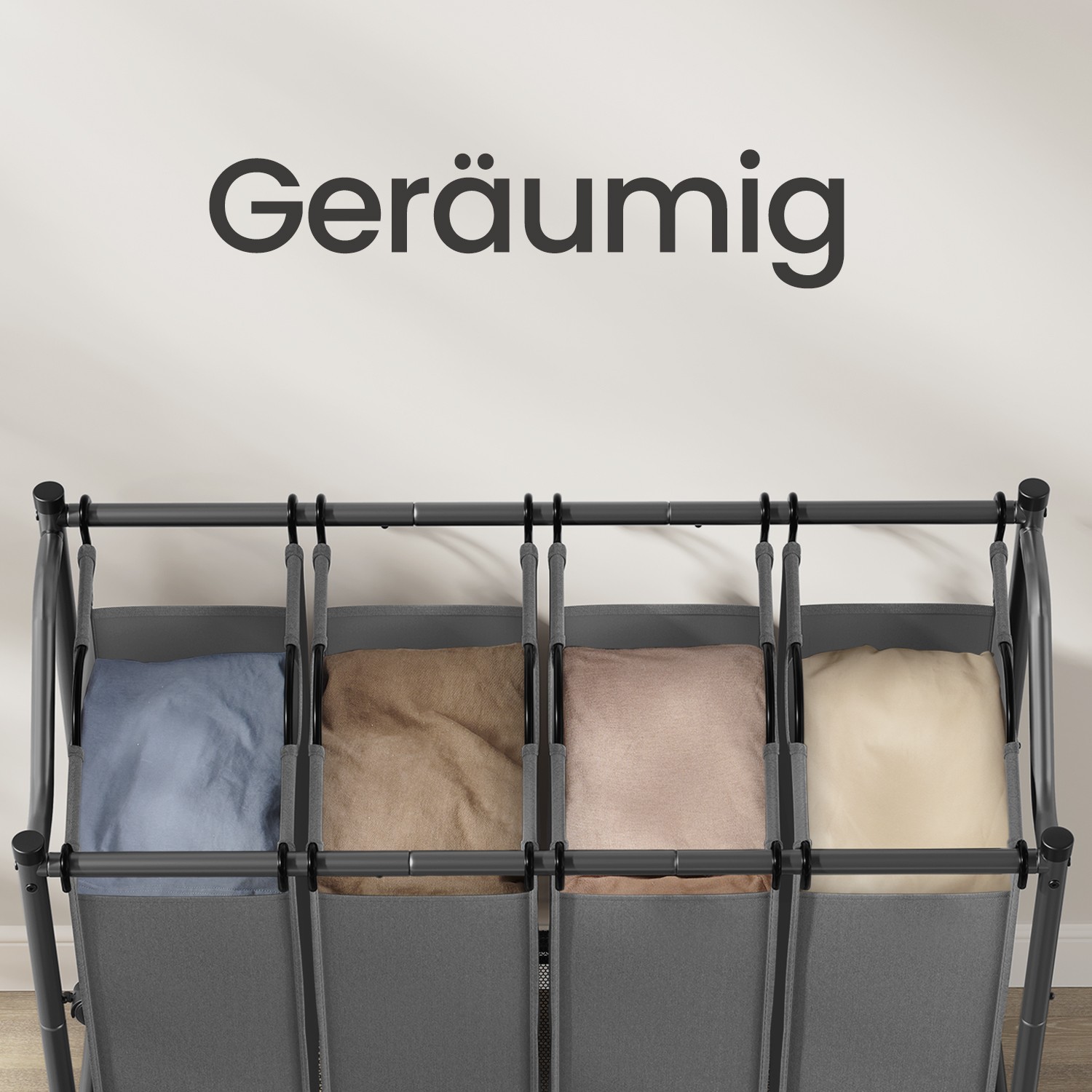 SONGMICS Laundry basket, laundry collector with 4 removable fabric bags, laundry container on wheels, laundry sorter, sturdy, 4 x 35 liters, black LSF005