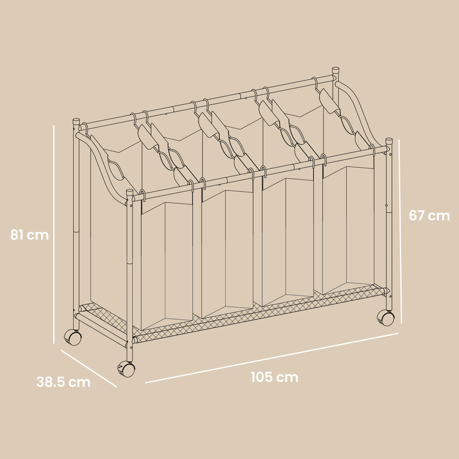 Size of individual laundry bags: 34 x 24 x 47.5/59.5 cm (L x W x H)