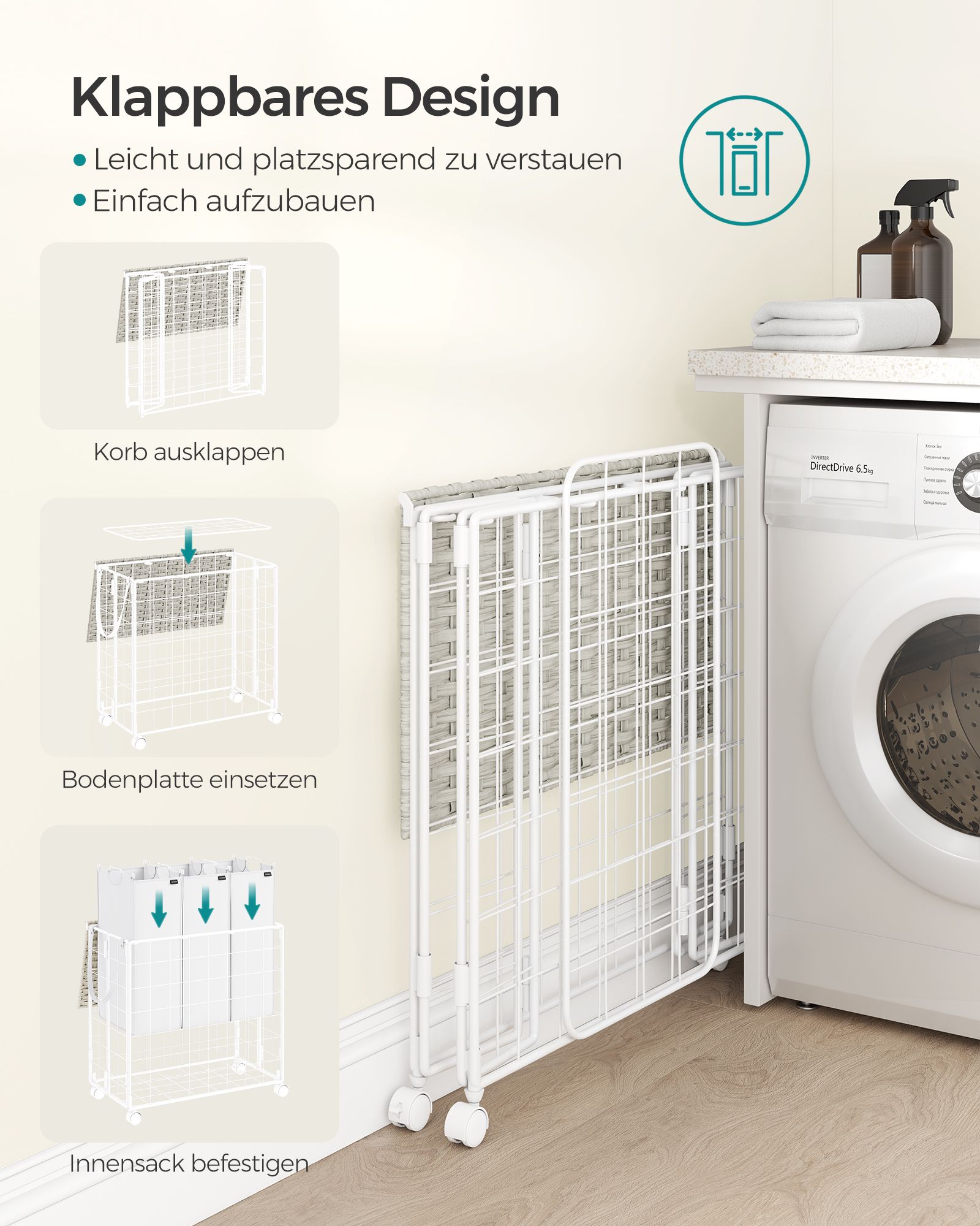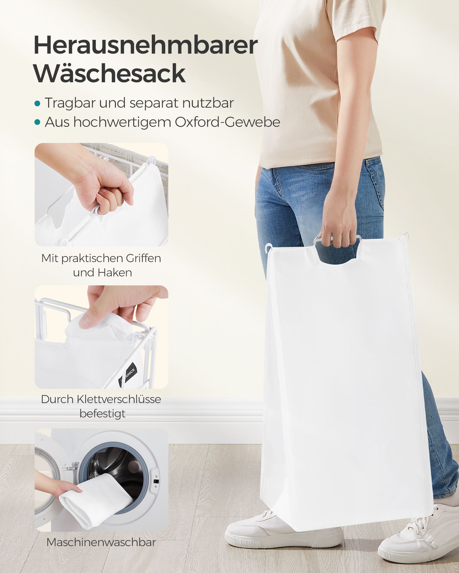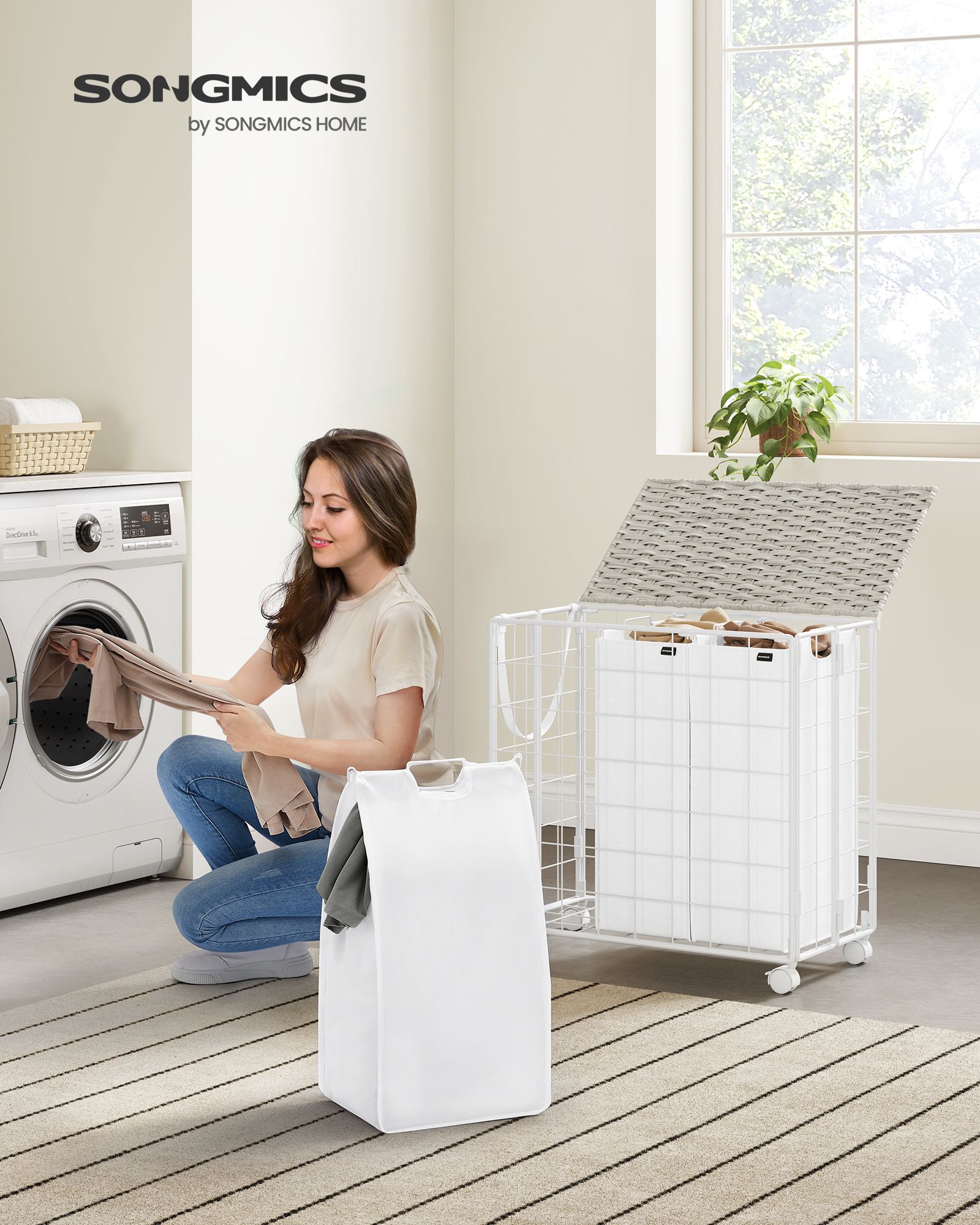 SONGMICS laundry basket 110 L, laundry collector with casters, removable laundry bag, 2 inner bags, laundry trolley with lid, 57 x 33 x 65 cm, for laundry room