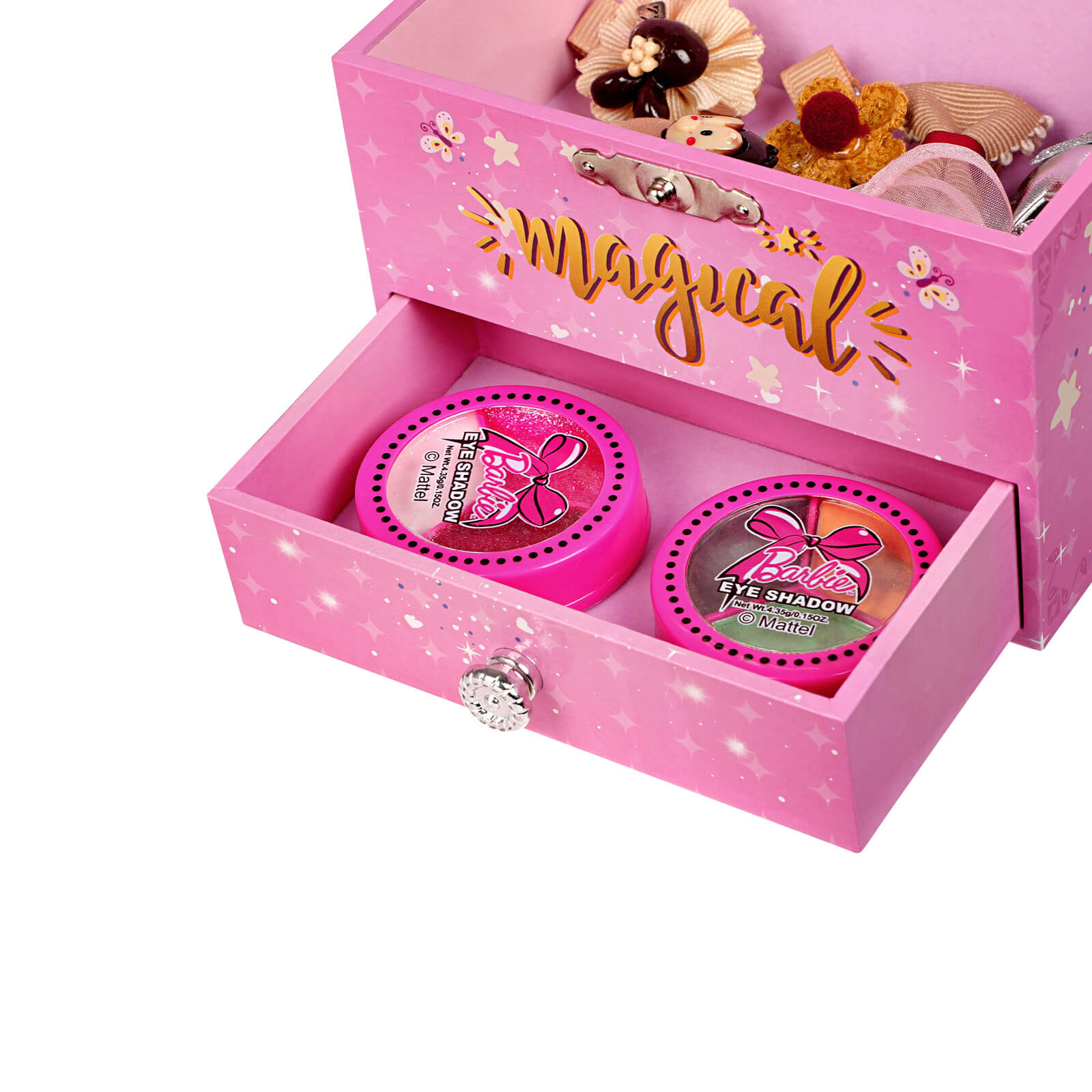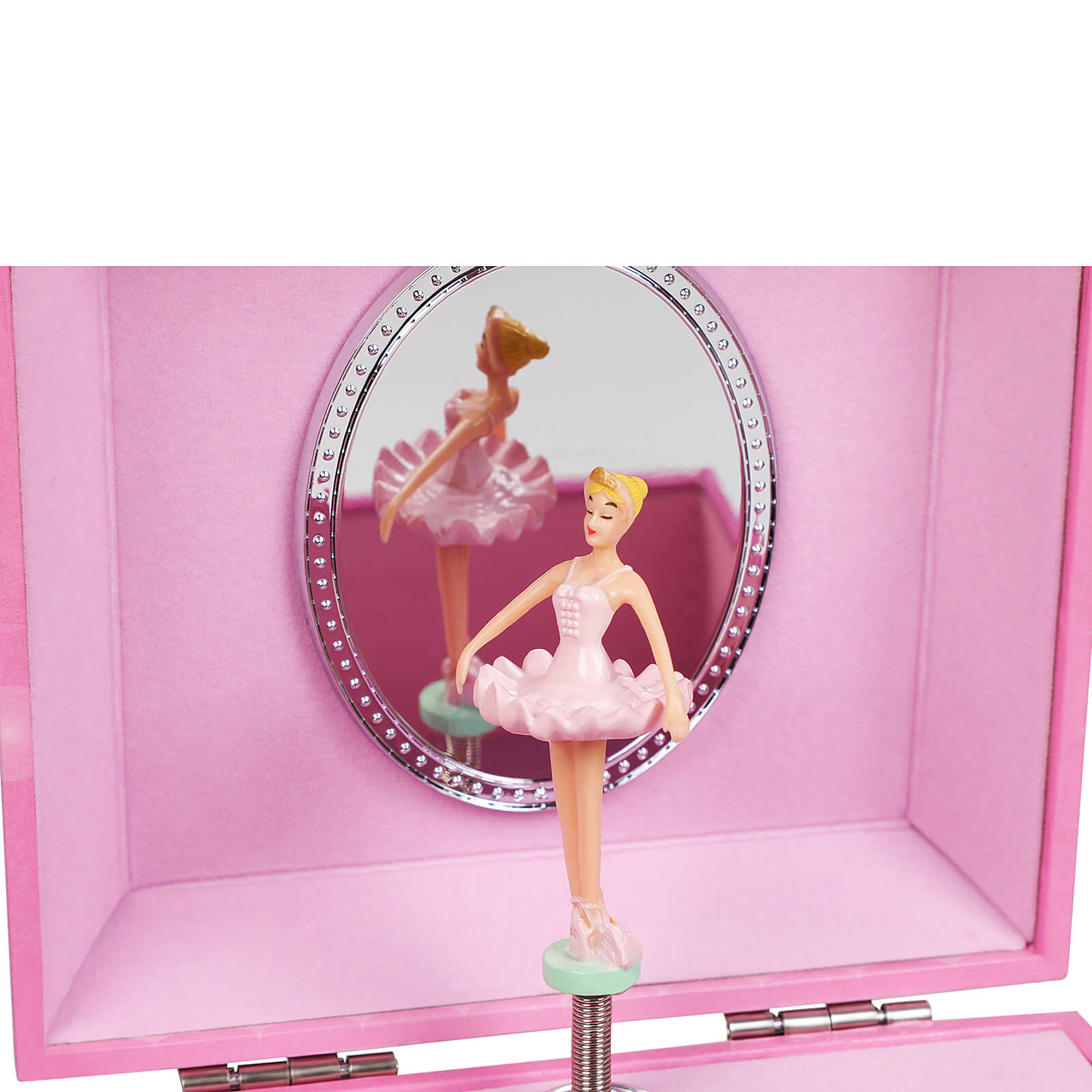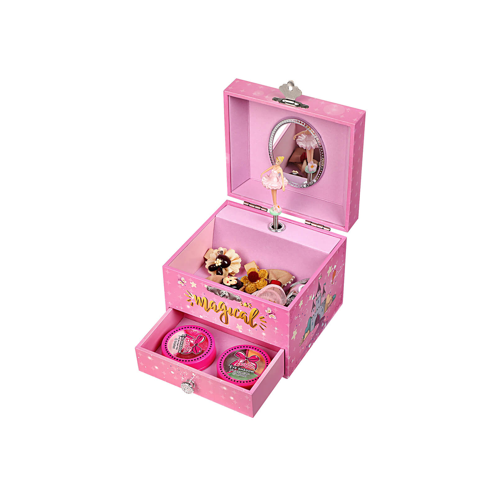 Every little girl dreams of being a princess once in her life. Our SONGMICS music box with dancing ballerina brings this dream to life. The magical unicorn on the box, the enchanted princess castle, a sky full of stars, fluttering butterflies, and last but not least, the pink color of the music box will make little girls squeal with delight. Wind up the music box with a mechanism on the back and then open it. An enchanting ballerina appears, dancing to a lovely melody. Your little princess will surely be amazed, her mouth agape. Fill the drawer and compartment with glittering hair clips, earrings, colorful rings, or other little treasures and let your little girl decide which jewelry she wants to wear today. With a smile on her face, she will stand in front of the magic mirror that reveals that she is the most beautiful in the whole land! In addition, your daughter or granddaughter will learn that her jewelry can be neatly stored in the little box. This will help her develop a sense of order and save you valuable energy. Give your little one this music box during her birthday party and she will dance joyfully to the melody of the “Flower Waltz” together with the ballerina and her friends. Product details: -Color: Pink -Material: MDF (medium-density fiberboard), decorative paper, velvet, ABS mirror -Size: 11.9 x 10.9 x 9.9 cm (W x D x H) -Weight: 259 g Scope of delivery: – 1 x SONGMICS music box Notes: 1. Do not expose the product to direct sunlight. 2. Keep the product away from sharp objects to avoid damage. 3. Please note that small parts such as the ballerina pose a choking hazard.