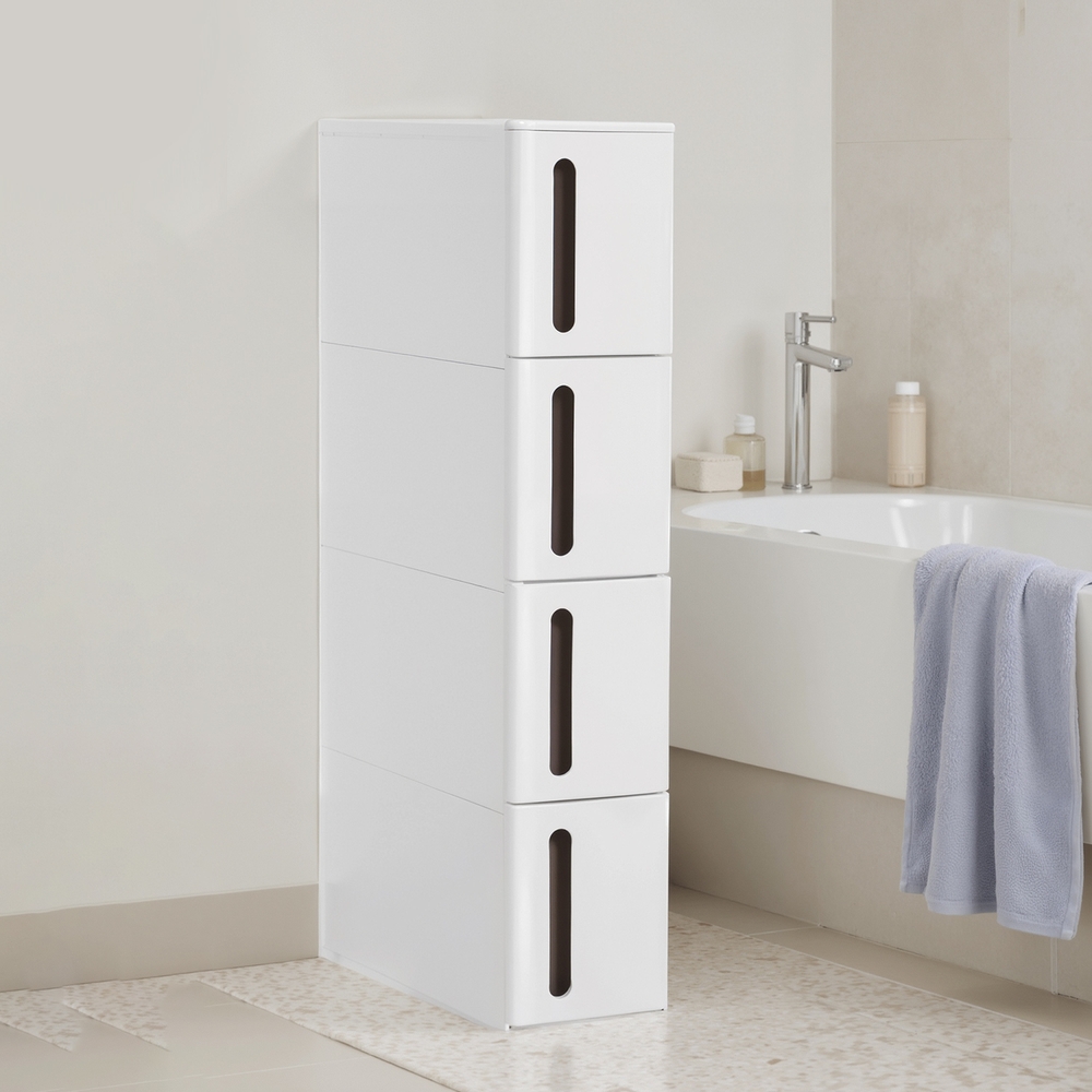 Description: You don’t know where to put your bathroom or kitchen utensils anymore, and your office resembles a mountain of stacked files – but you don’t actually have any more space in these rooms? The plastic rolling shelf from SONGMICS fits perfectly into any niche thanks to its narrow 17 cm design and provides plenty of space-saving storage in your living room, bathroom, kitchen, or office. Large capacity You can store food, drinks, baking ingredients, bathroom utensils, decorative items, office supplies, or other things in the 4 deep drawers. Make effective use of the space in your home! Clever and practical design – The clever stop mechanism ensures that the drawers cannot be pulled out completely. – Made of waterproof PP, it can be used in the bathroom, basement, laundry room, or kitchen. – The simple and clear design of the niche shelf allows it to fit perfectly into your space.Product details: – Color: White – Material: PP (polypropylene) – Size: 45 x 17 x 84 cm (L x W x H) – Weight: 4.6 kg Scope of delivery: – 1 x niche shelf with casters – 1 x instructions (DE, EN, FR, ES, IT) SONGMICS Notes:- Please do not assemble or disassemble this product too often to avoid damage. – Please do not place the product near sources of ignition.