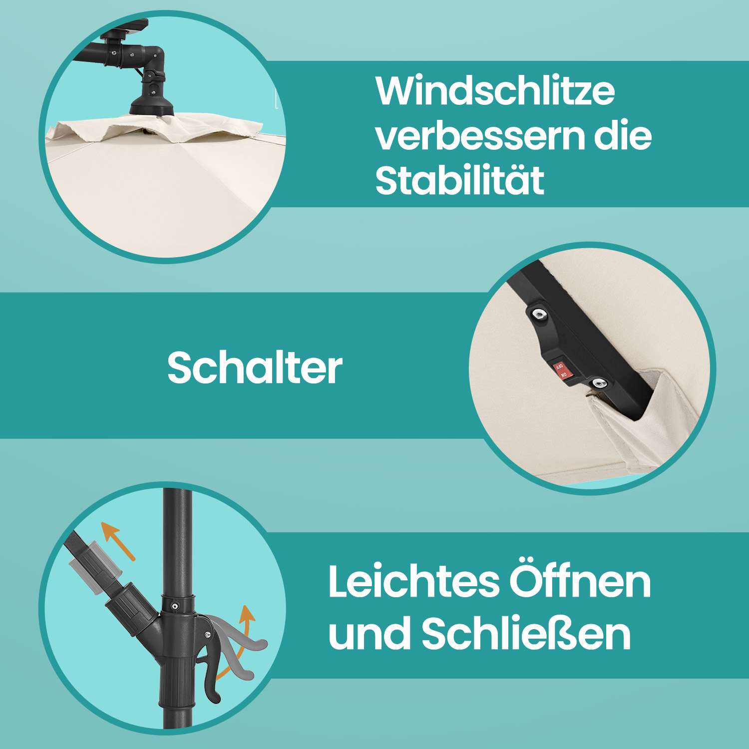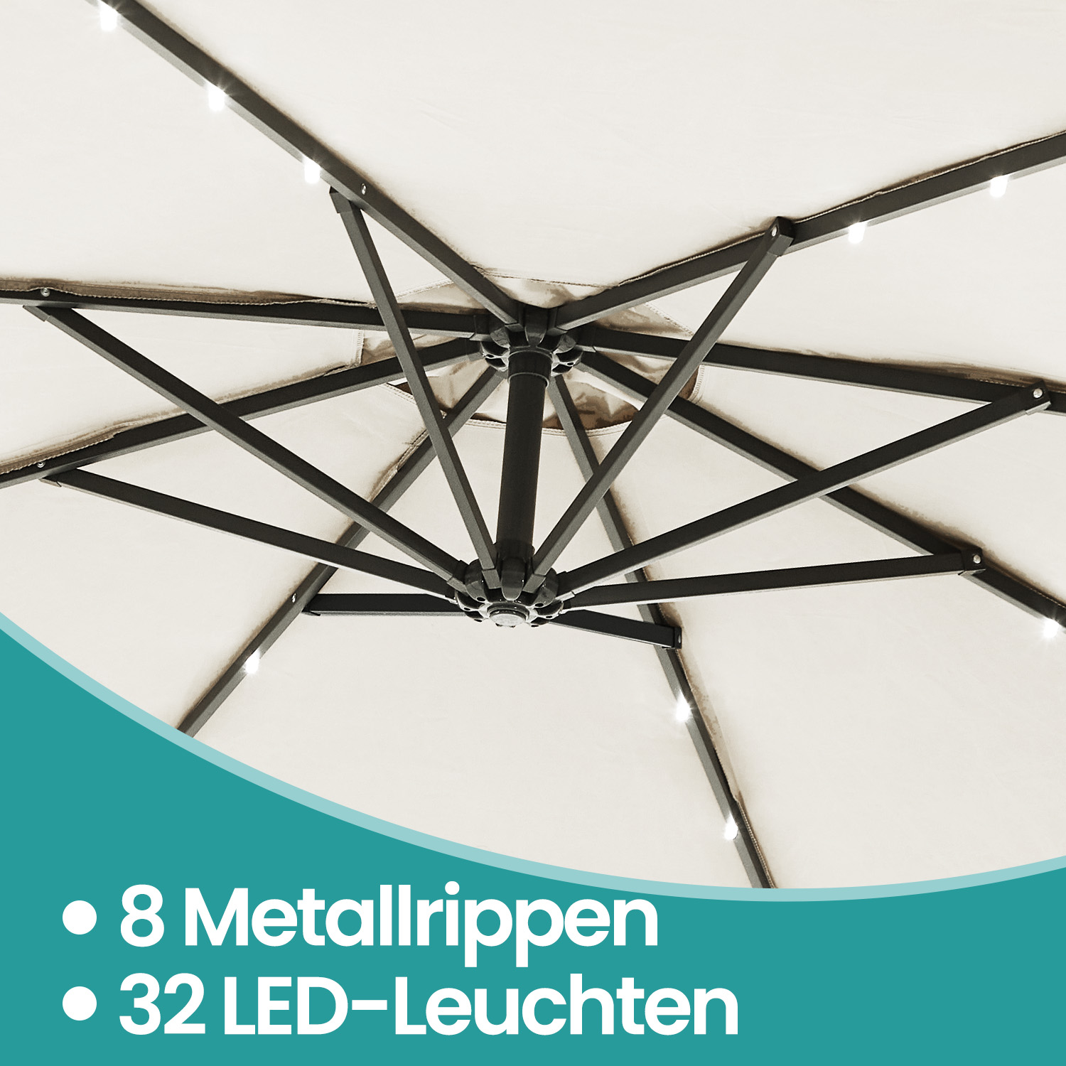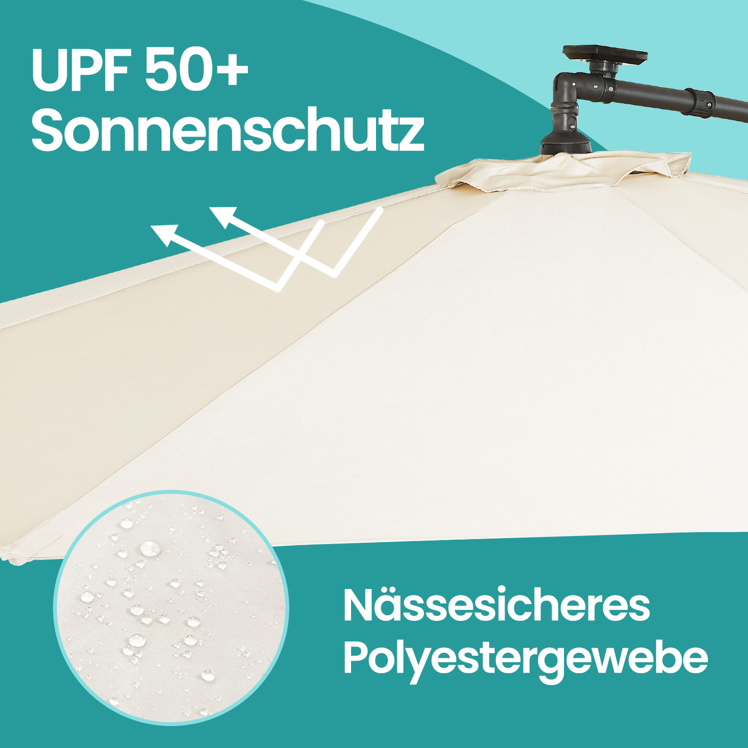 – Material: Metal umbrella pole, 180 g/m² polyester fabric