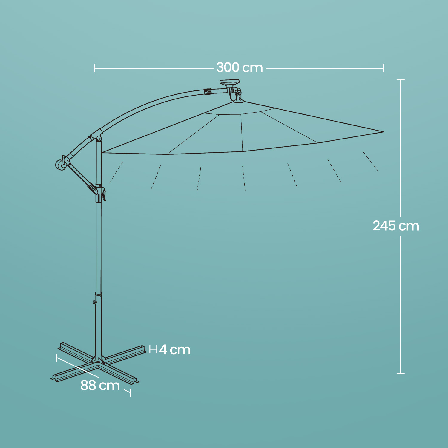 – Diameter of umbrella: 300 cm