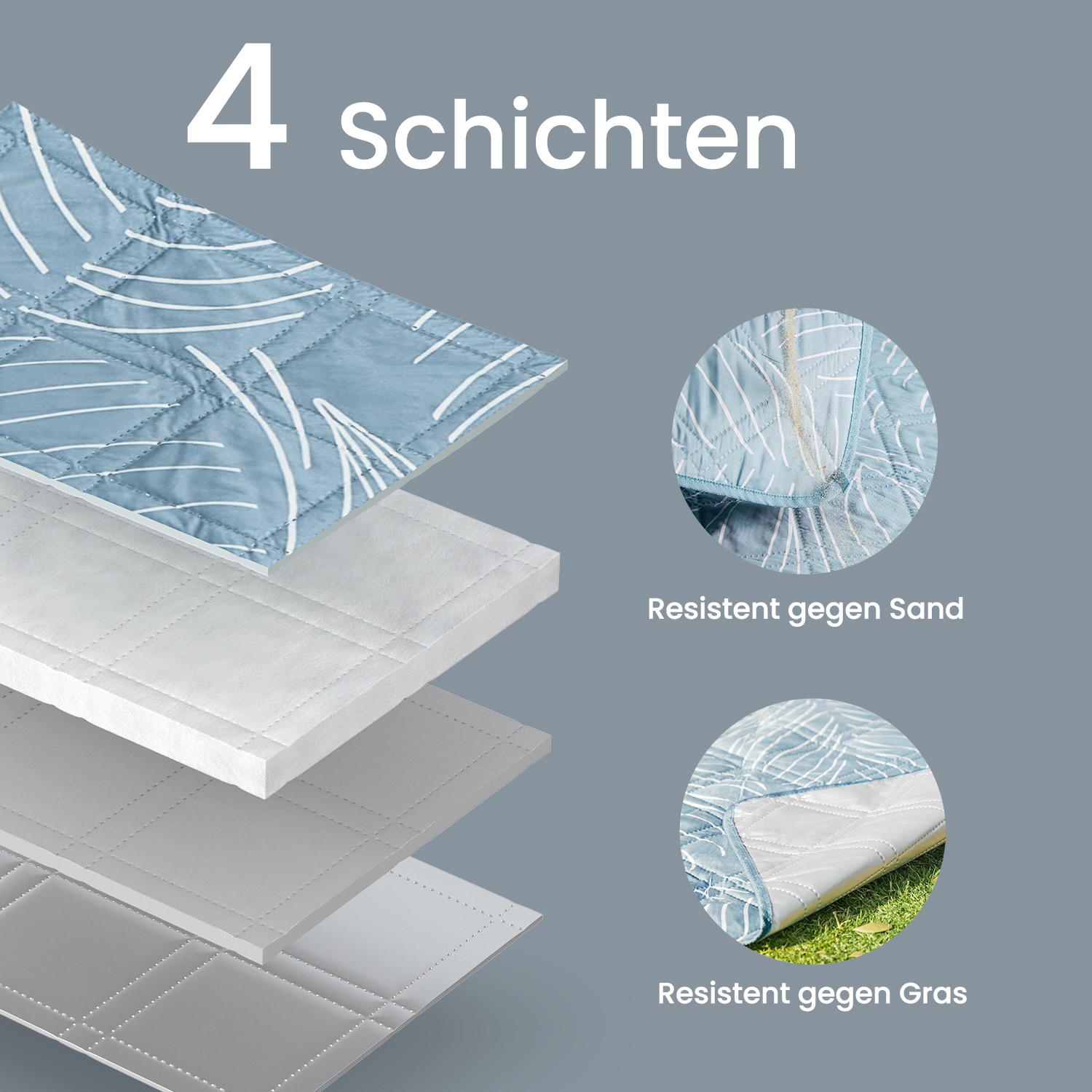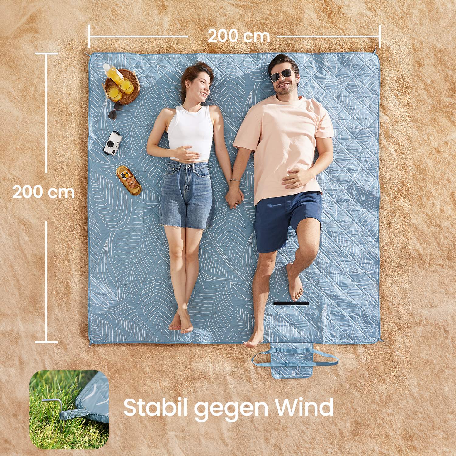 Picnic blanket, 200 x 200 cm, with 4 ground anchors, camping blanket, for park, garden, beach, waterproof, machine washable, khaki with tropical fern