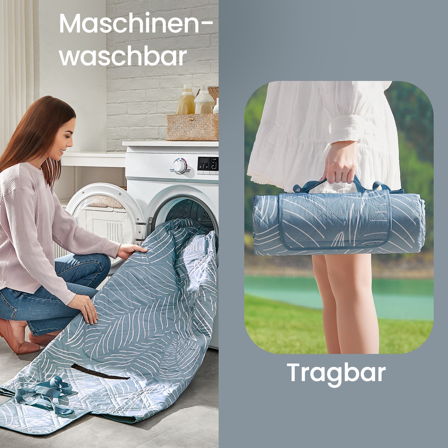 – Do not wash the beach blanket frequently in the washing machine to extend its life.