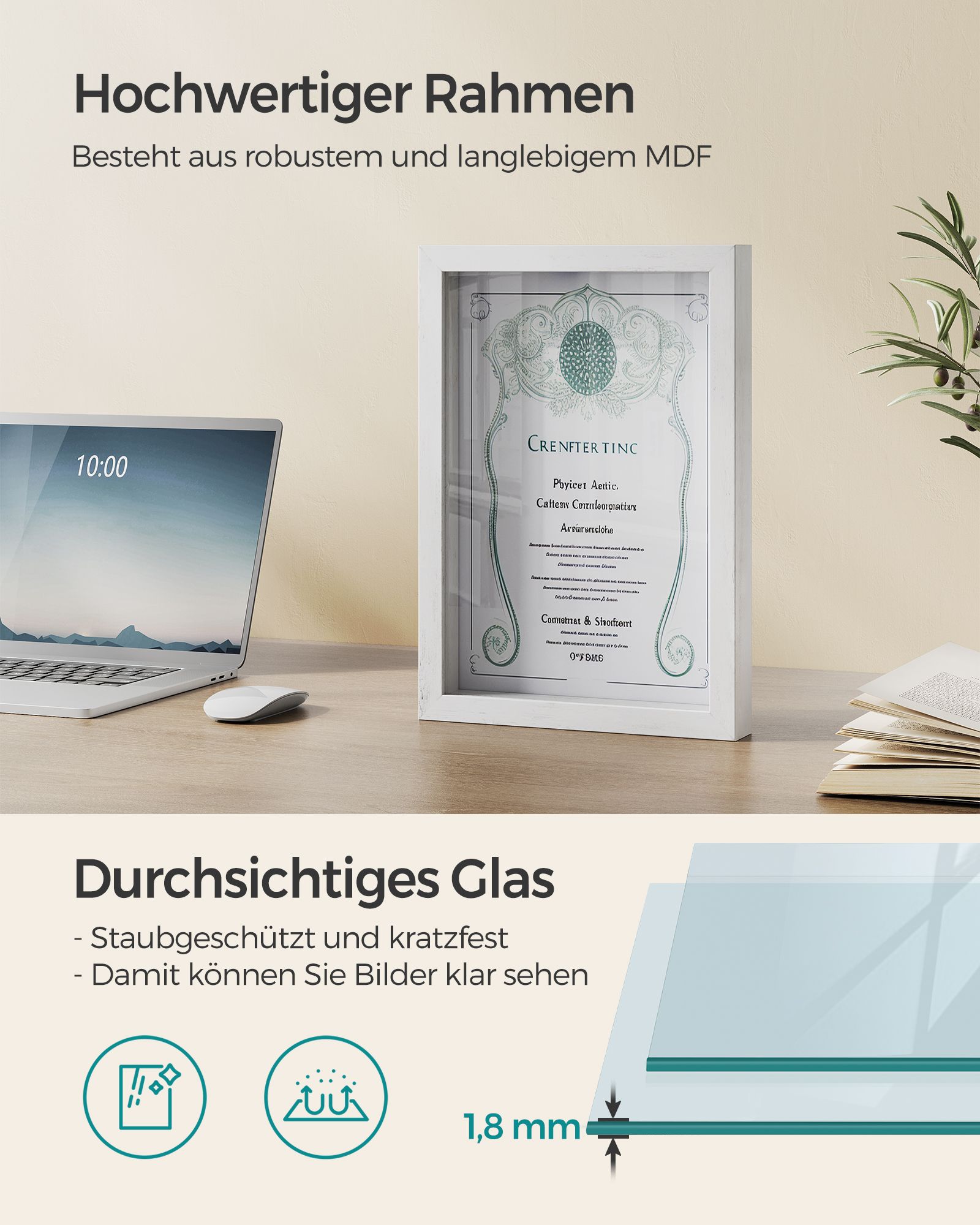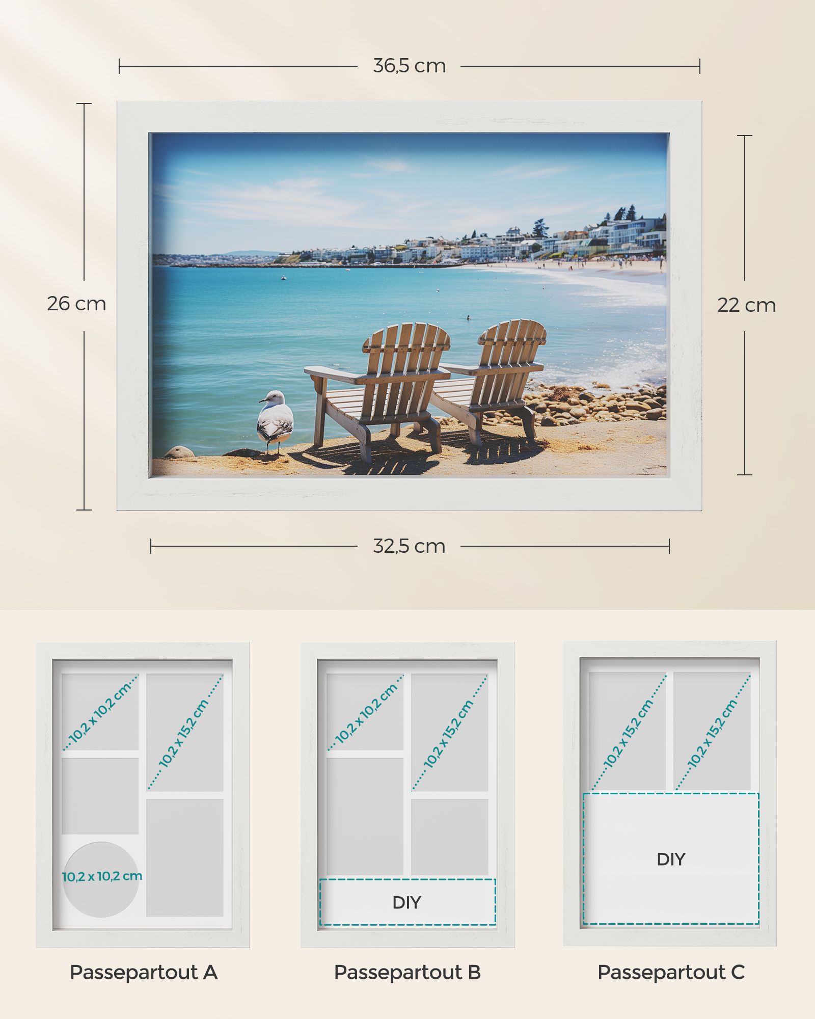 SONGMICS picture frame A4, 3 passe-partouts, photo frame to fill, 4 pins, collage for pictures A4, 10.2 x 15.2 cm, 10.2 x 10.2 cm, 2 trace-free wall hooks