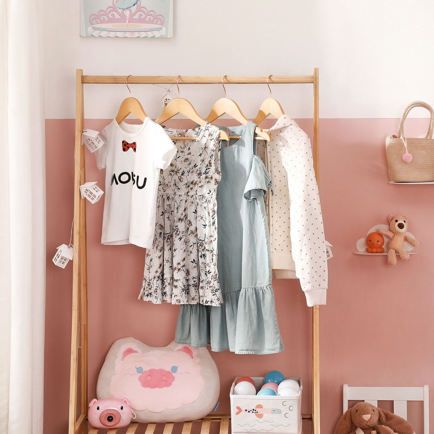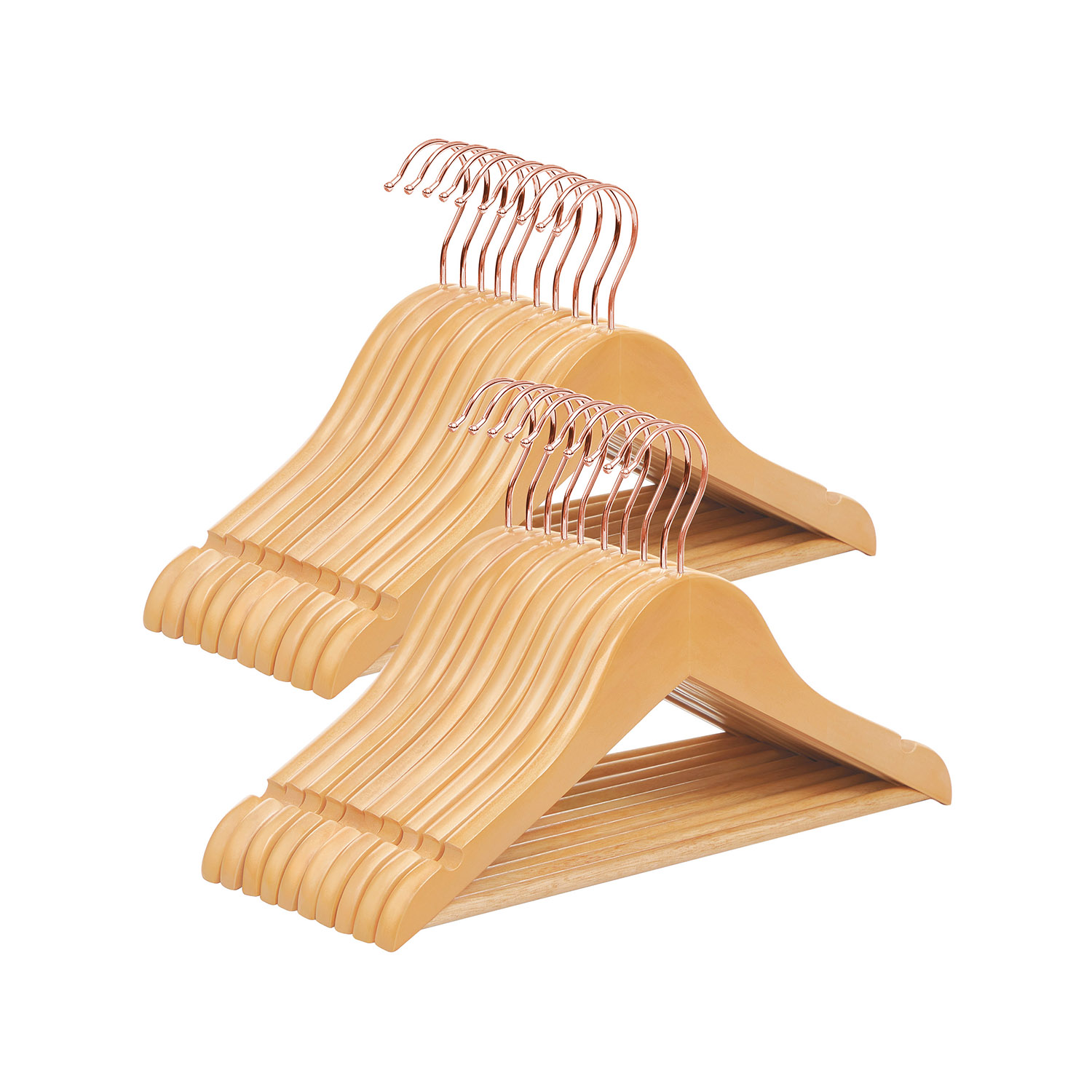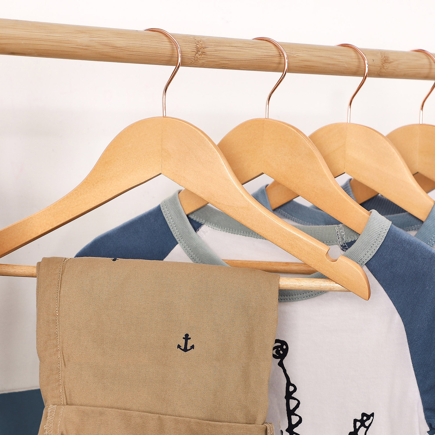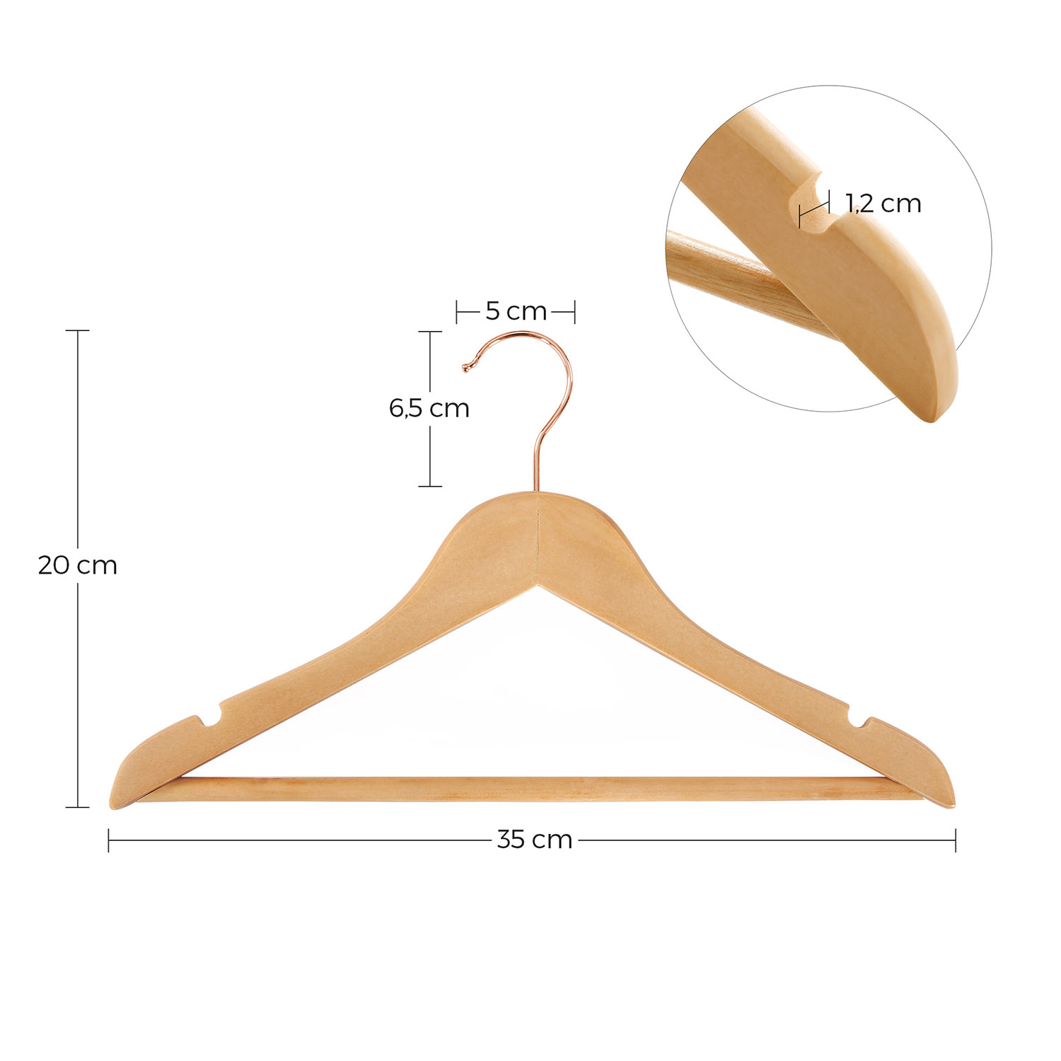 Problem-free morning routine: From now on, you and your children will no longer have to rummage through messy piles of clothes! With these children’s hangers from SONGMICS, all your little ones’ clothes will hang neatly in the wardrobe so you can find them at a glance. This leaves more time for a delicious breakfast before heading off to school. Keeping children’s clothes in good shape: Being organized is half the battle. Even small children should learn this. With these cute, natural-colored children’s hangers, tidying up the closet is actually fun. The smooth surface and rounded ends also protect your children’s clothes from dents or creases, so they can always go to their friends or school perfectly dressed. Product details: – Color: natural color, rose gold – Material: maple wood, hooks with metal coating – Size per hanger: 35 x 1.2 x 20 cm (L x W x H) – Hook size: 5 x 6.5 cm (Ø x H) – Total weight: 2 kg – Max. static load capacity per hanger: 5 kg Scope of delivery: – 20 x wooden children’s hangers SONGIMC notes: – The maximum load capacity per hanger is 5 kg. Please do not exceed this maximum weight. – Do not use these hangers in a tumble dryer or washing machine.
