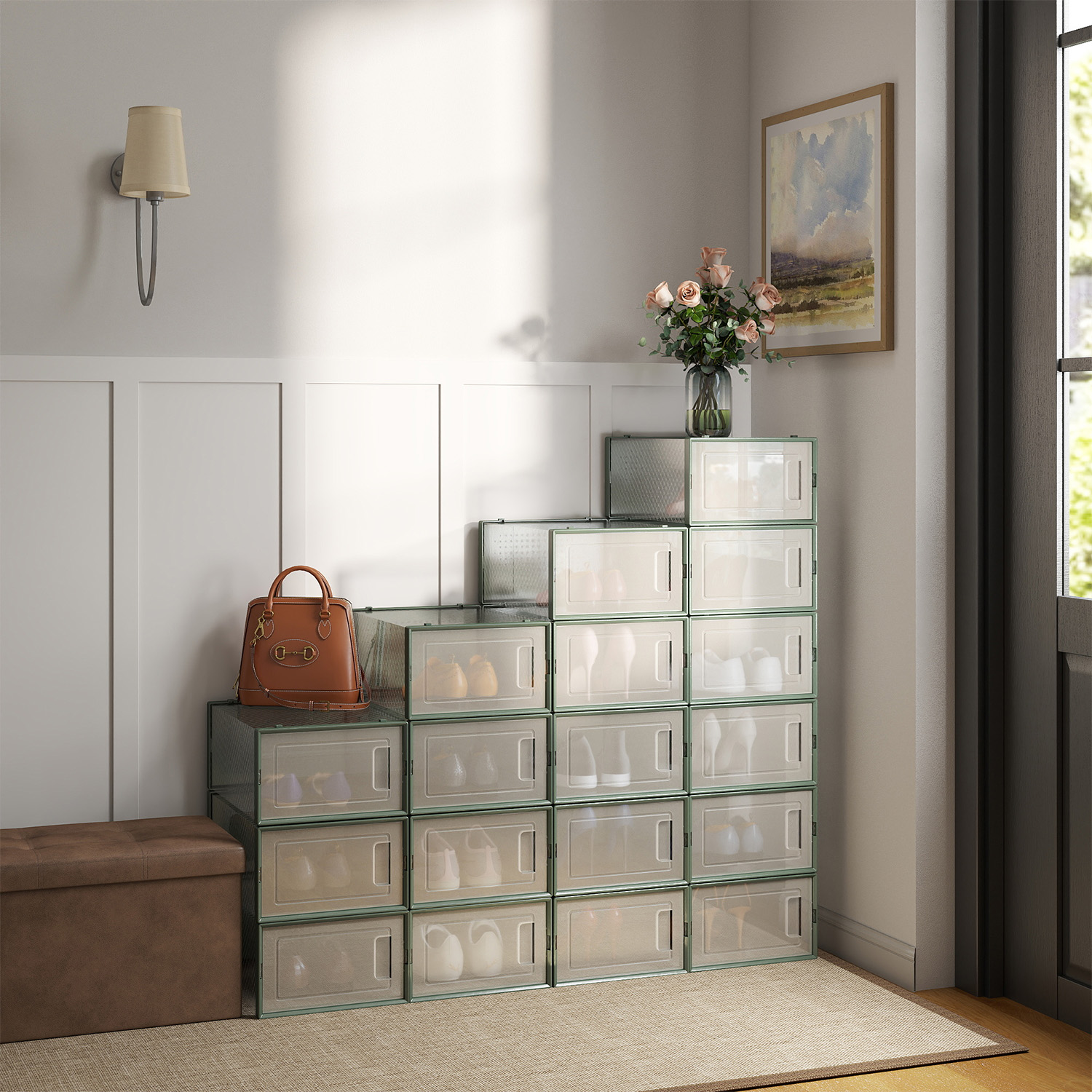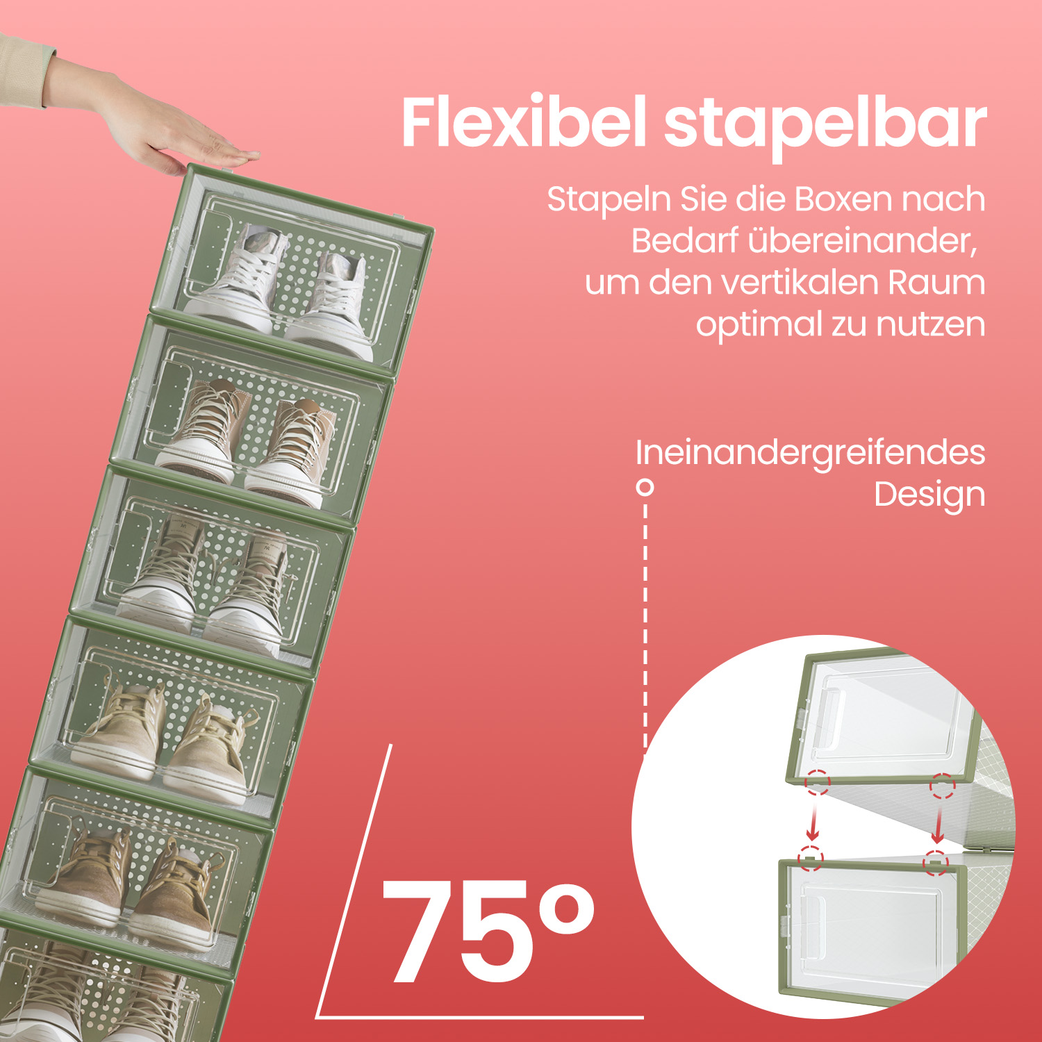 Shoe boxes, set of 18, plastic shoe organizer, foldable and stackable, shoes up to size 46, transparent white