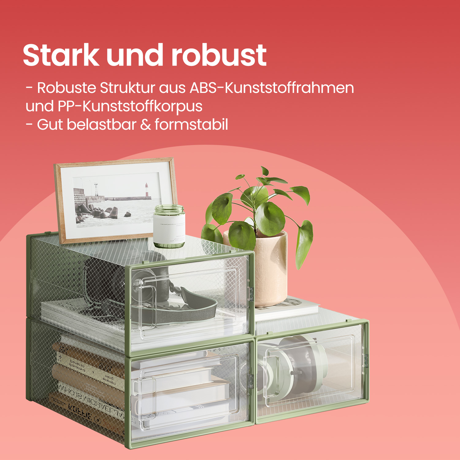 – Material: Body made of PP (polypropylene), door made of PP (polypropylene), frame made of ABS plastic