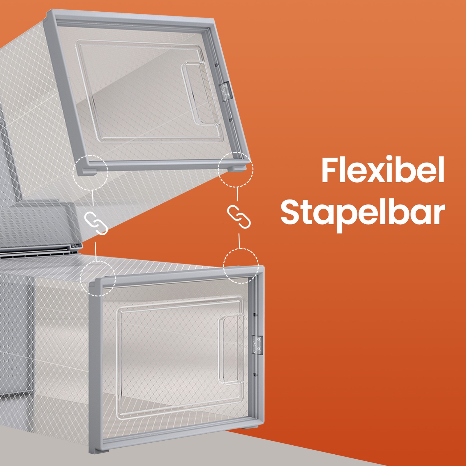 Shoe boxes, set of 18, plastic shoe organizer, foldable and stackable, shoes up to size 44, transparent gray