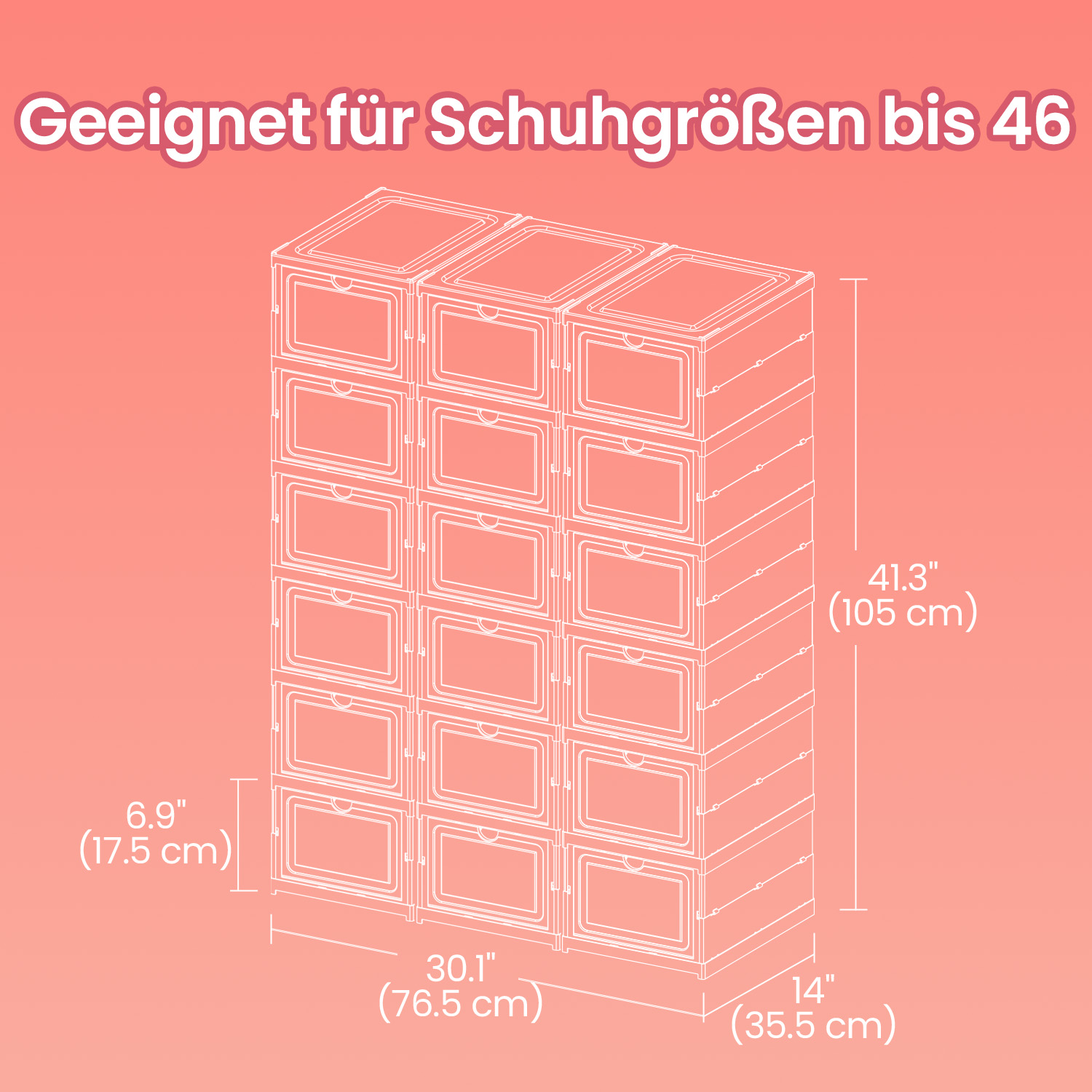 – Size per shoe cabinet: 35.5 x 25.5 x 105 cm (L x W x H)