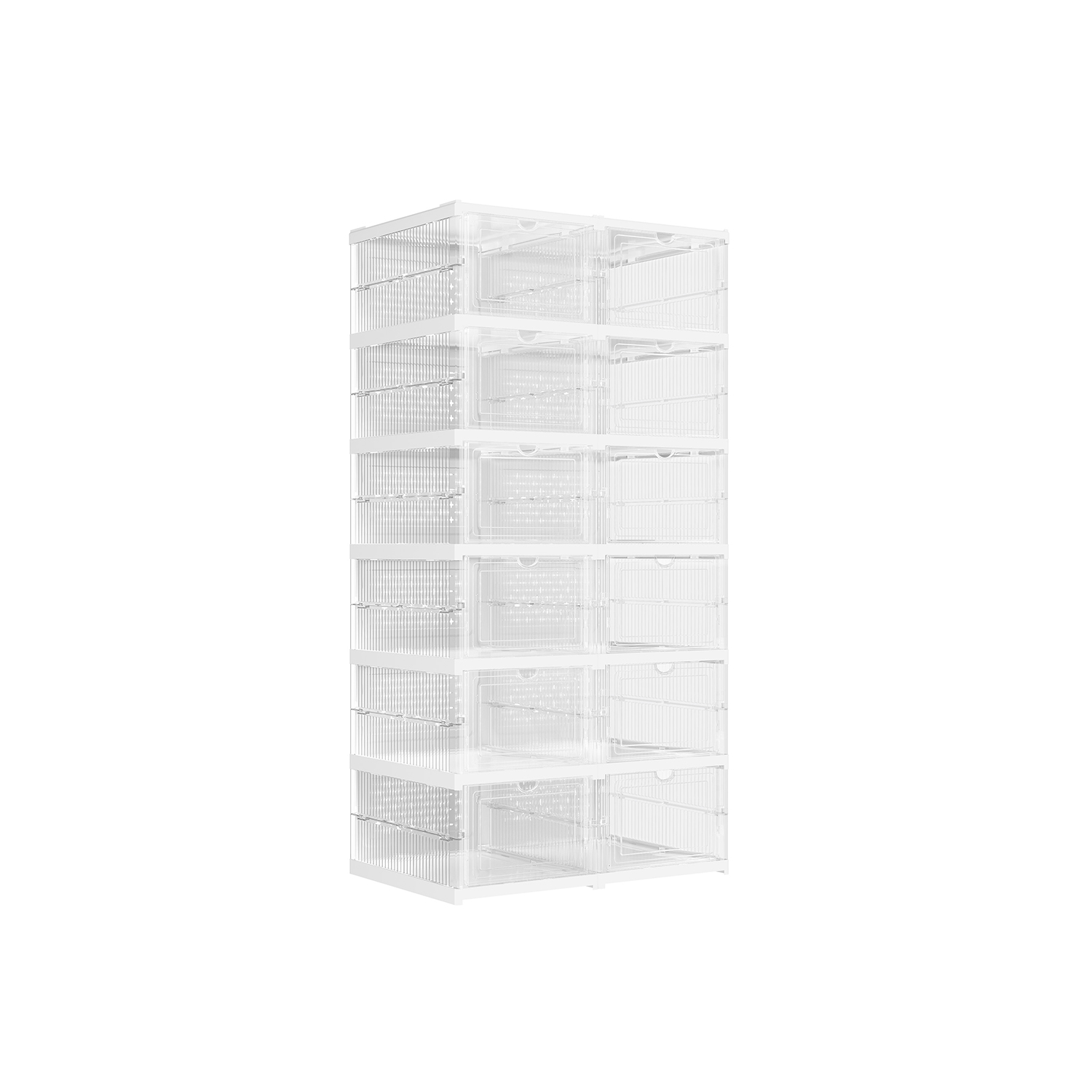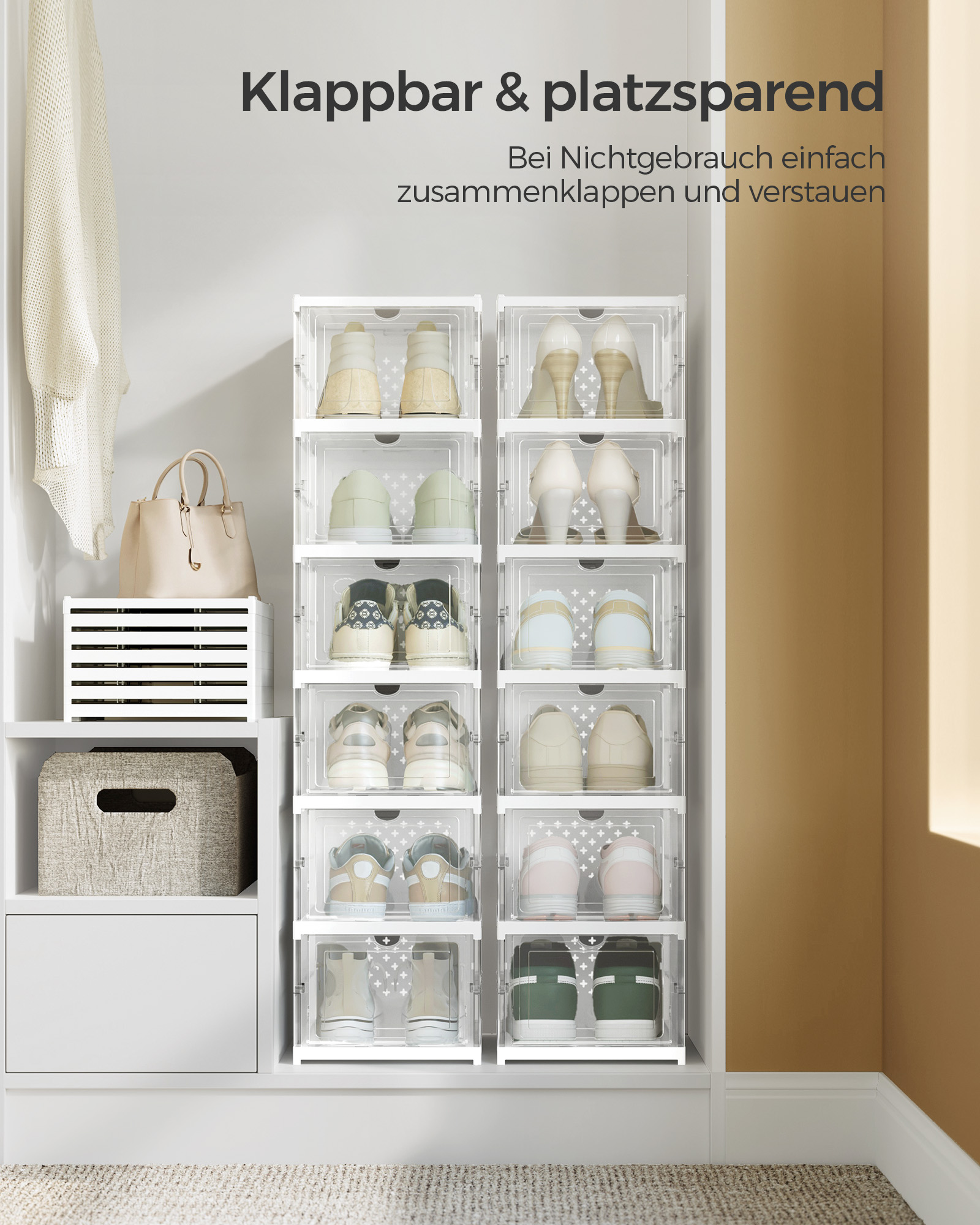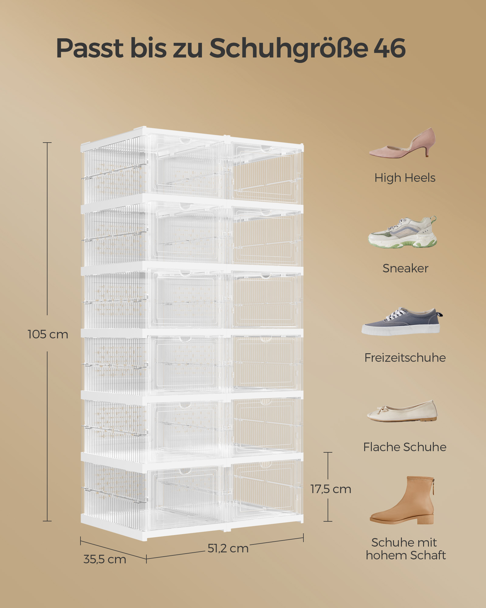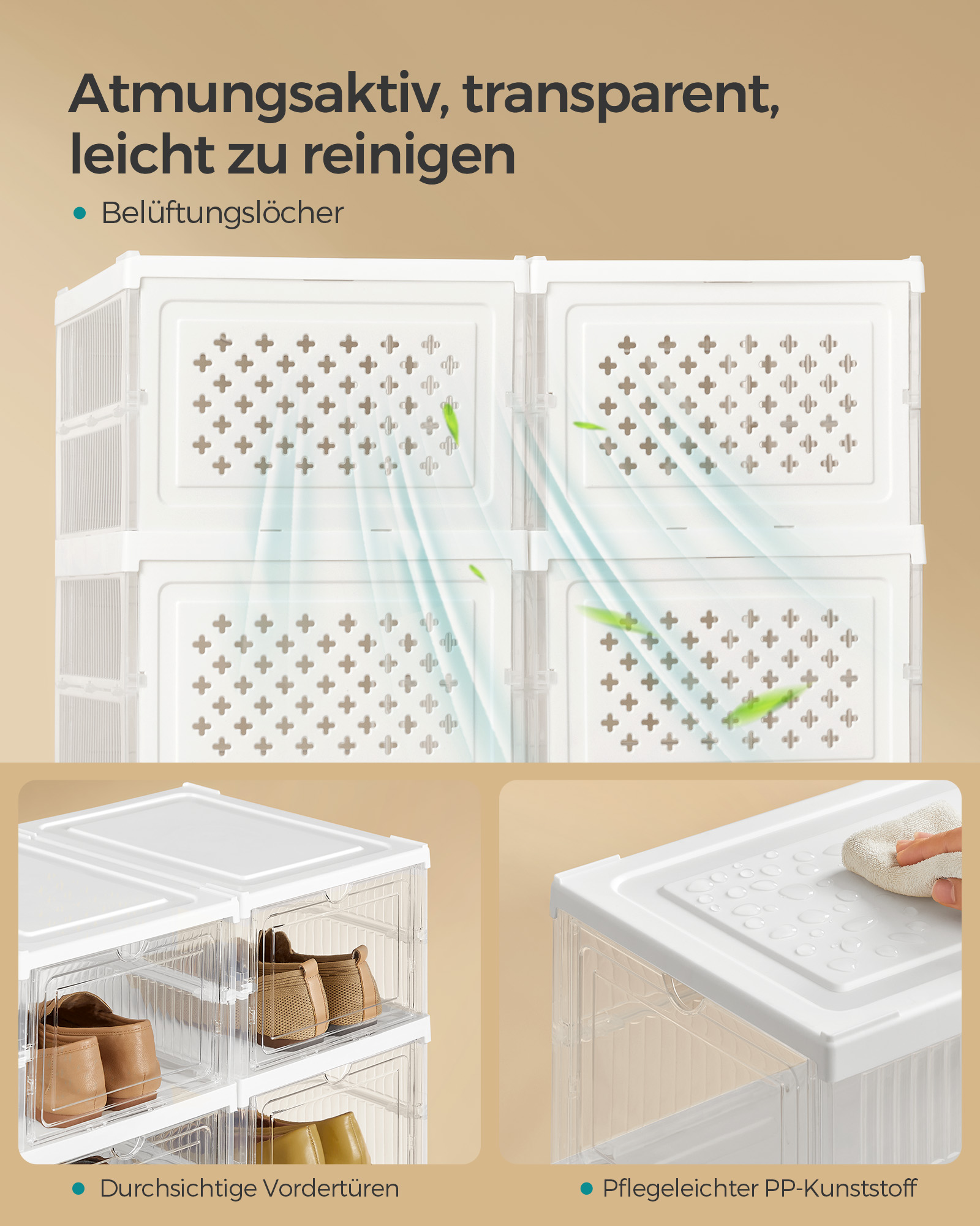 SONGMICS shoe cabinet, with 6 shoe boxes, integrated shoe organizer, foldable, portable, for shoes up to size 46, 1-minute assembly, transparent ink black LSP205B01
