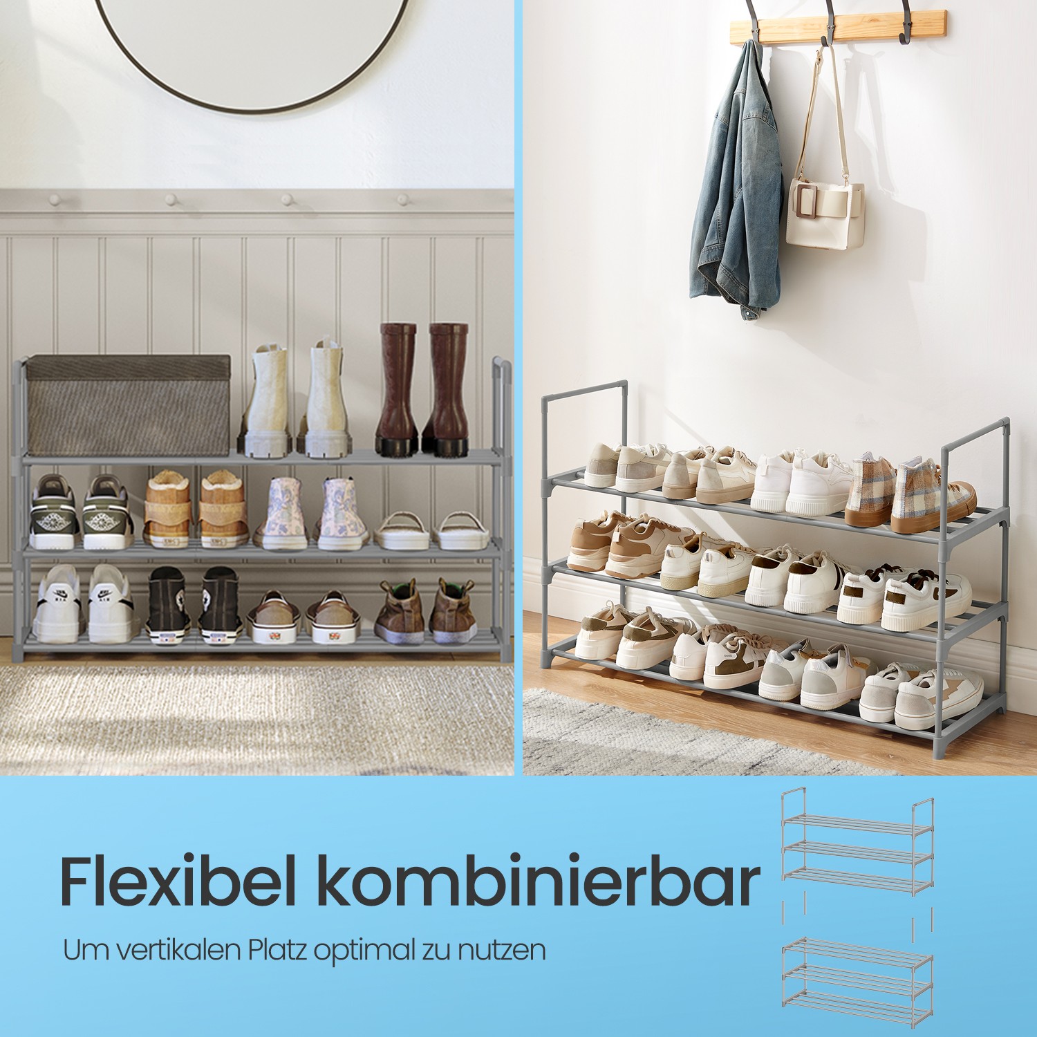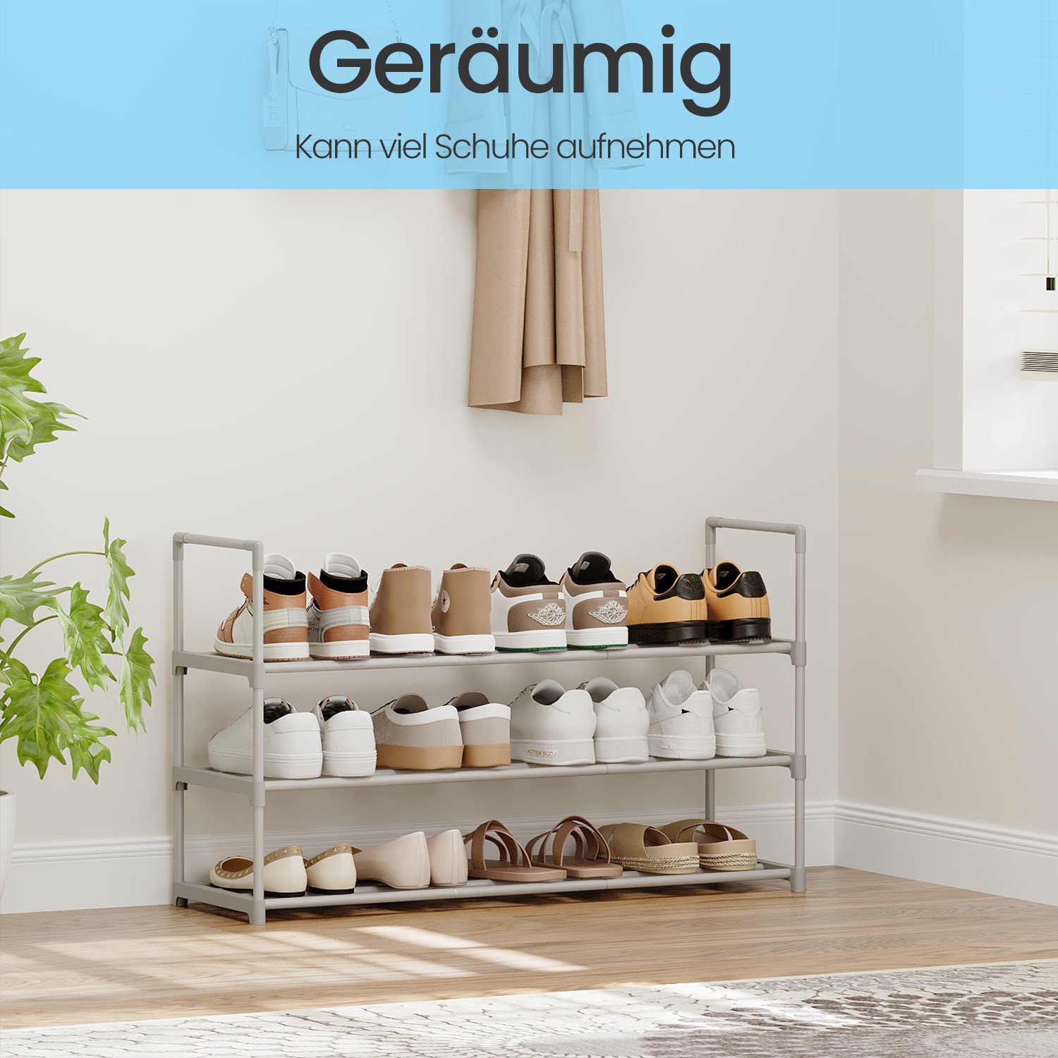 SONGMICS shoe rack with 3 shelves, metal shoe stand, free-standing rack, easy to assemble, space-saving, for 12 to 15 pairs of shoes, stackable, for hallway, living room, black LSA303B02