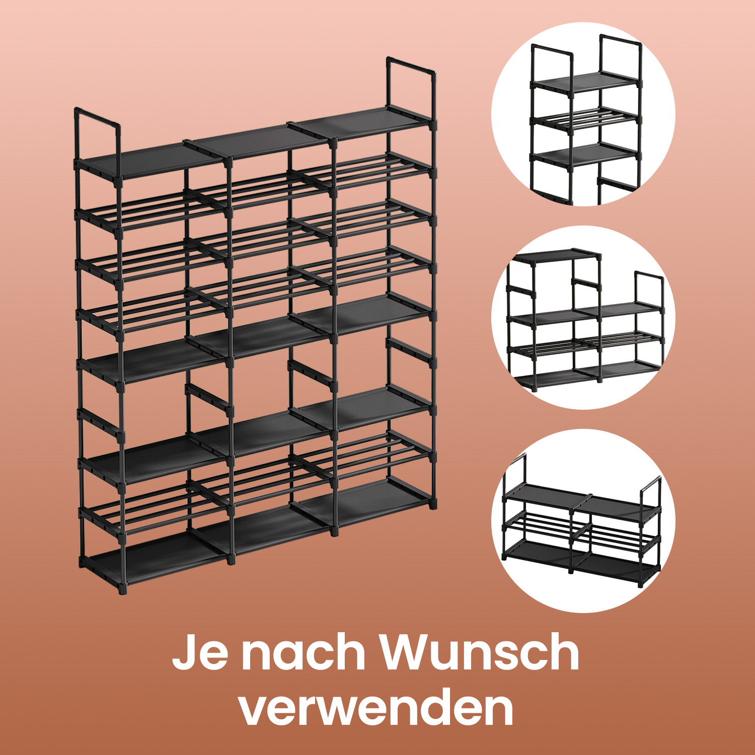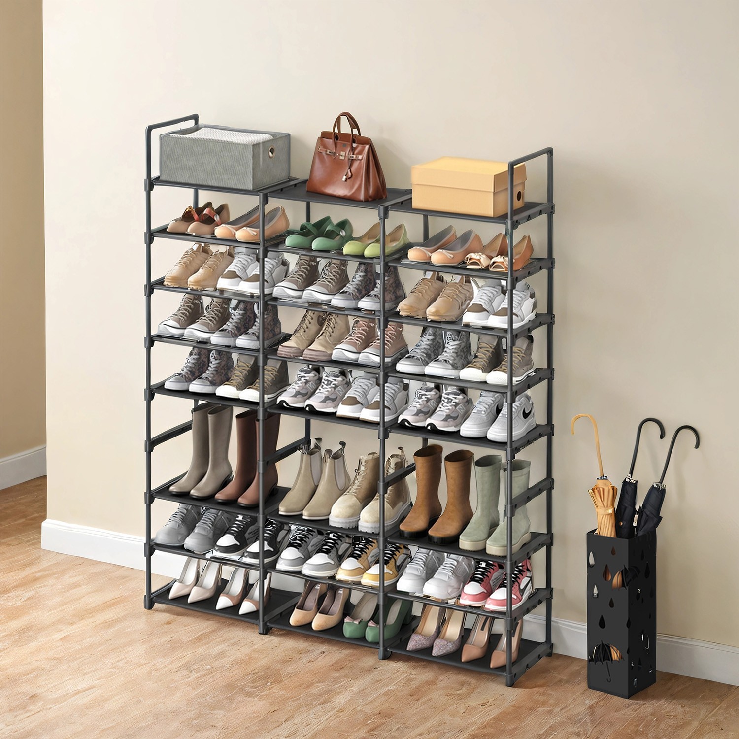 SONGMICS adjustable shoe rack, shoe stand with shelves, storage rack, steel tubes, non-woven fabric, for up to pairs of shoes, space-saving, for entrance hall, wardrobe, garage