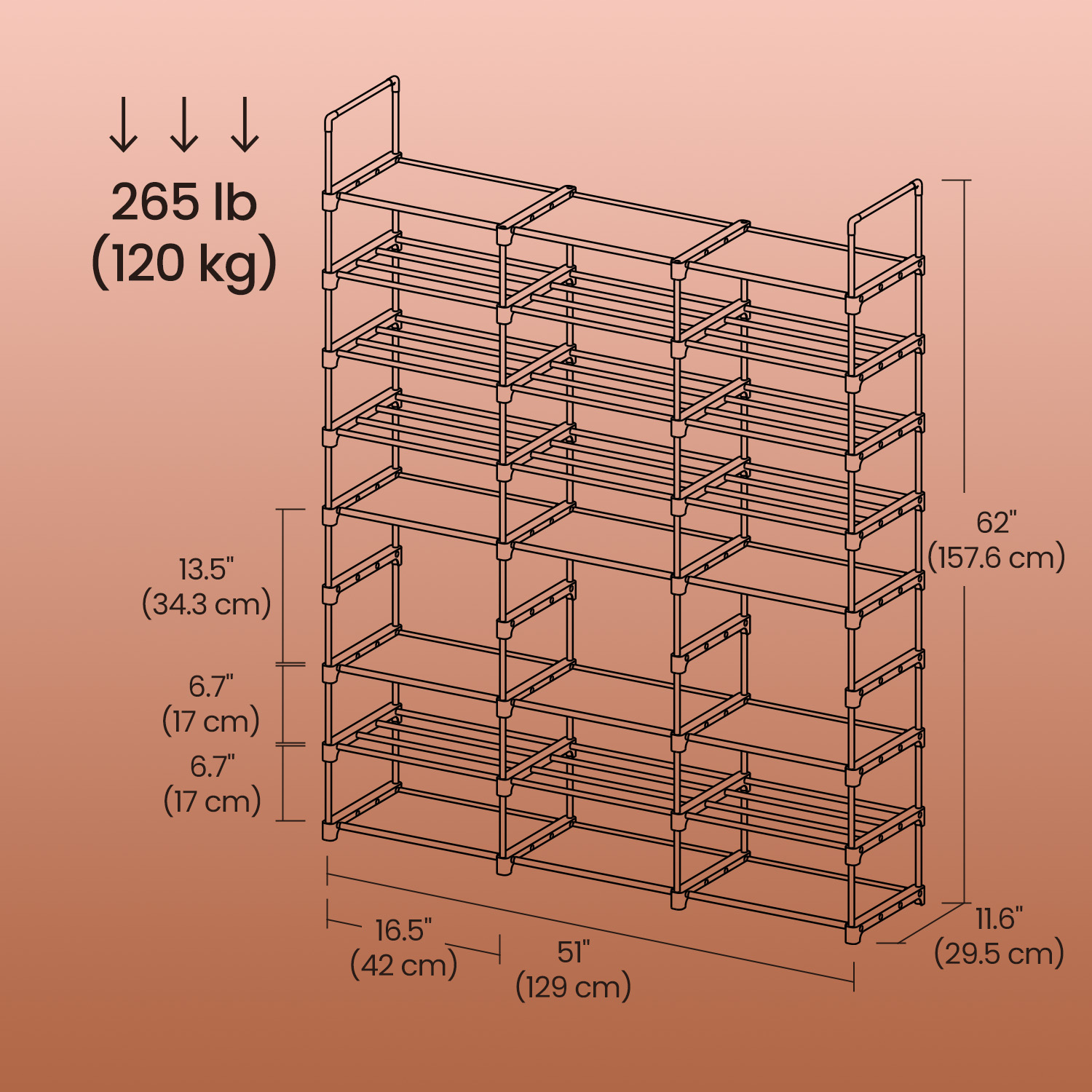 – Max. total load capacity with even weight distribution: 120 kg