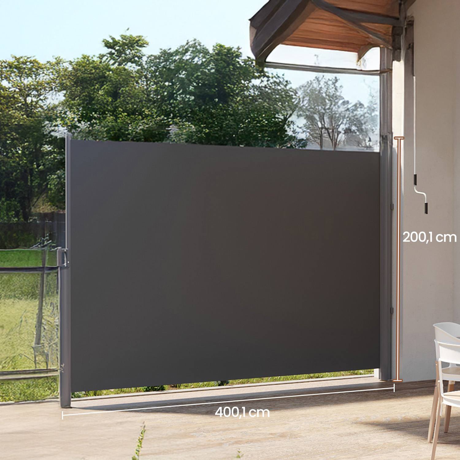 Side awning with aluminum alloy box, extendable, opaque, sun protection, for balcony, terrace, garden, anthracite