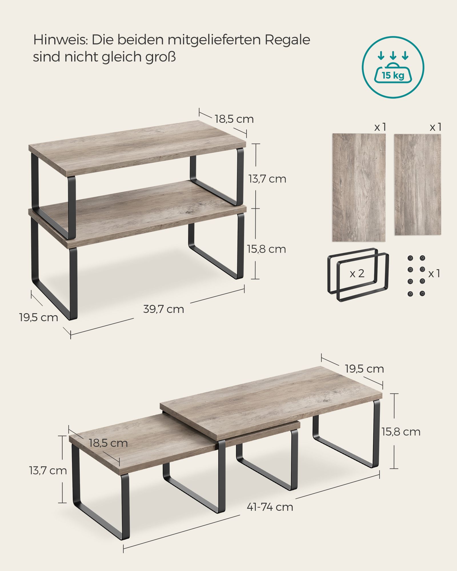 Size of small shelf: 18.5 x 39.7 x 13.7 cm (D x W x H)