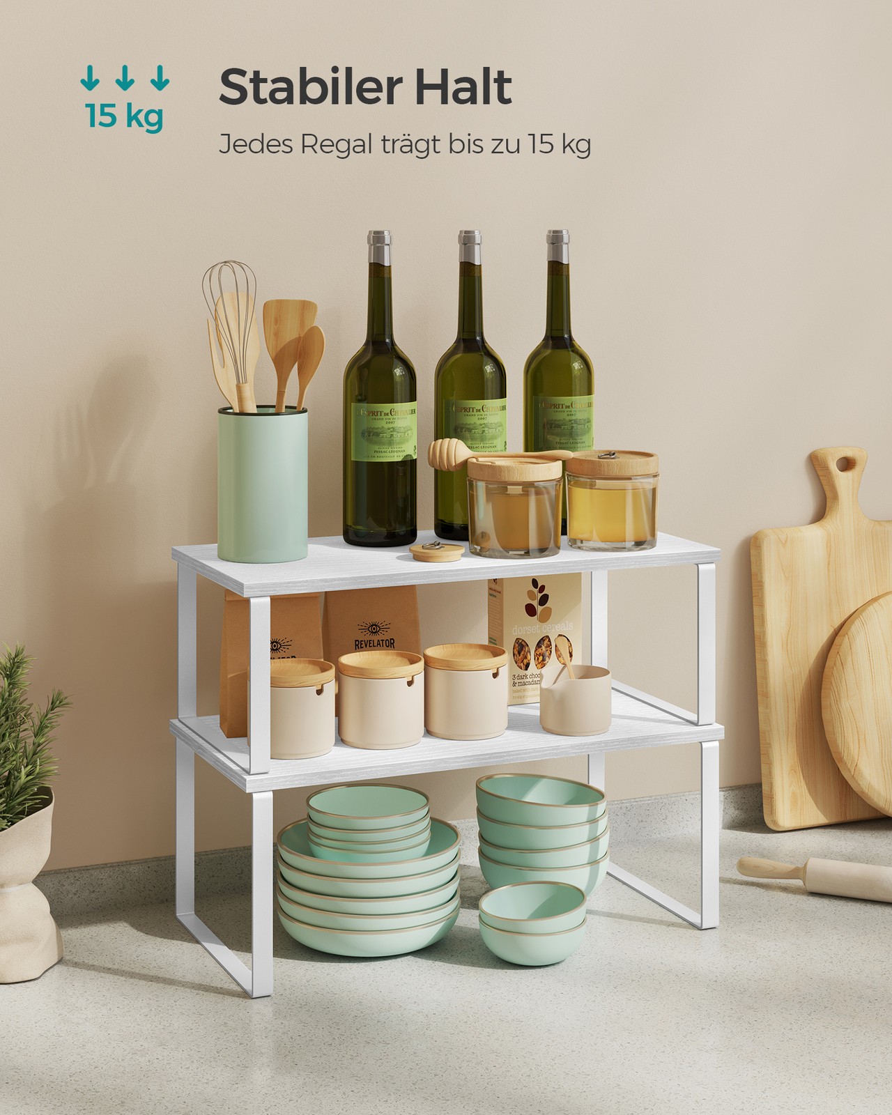Max. static load capacity per shelf: 15 kg