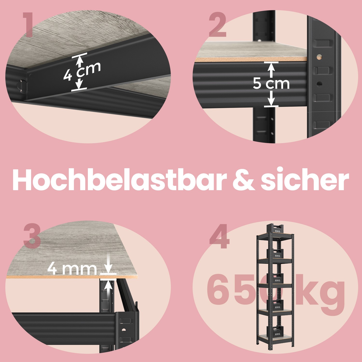 SONGMICS Heavy-duty shelf, kitchen shelf, bookshelf, storage shelf, standing shelf, 5 shelves, 150 x 37 x 37 cm, load capacity up to 400 kg, adjustable shelves, industrial design, vintage brown-black GLR037B01