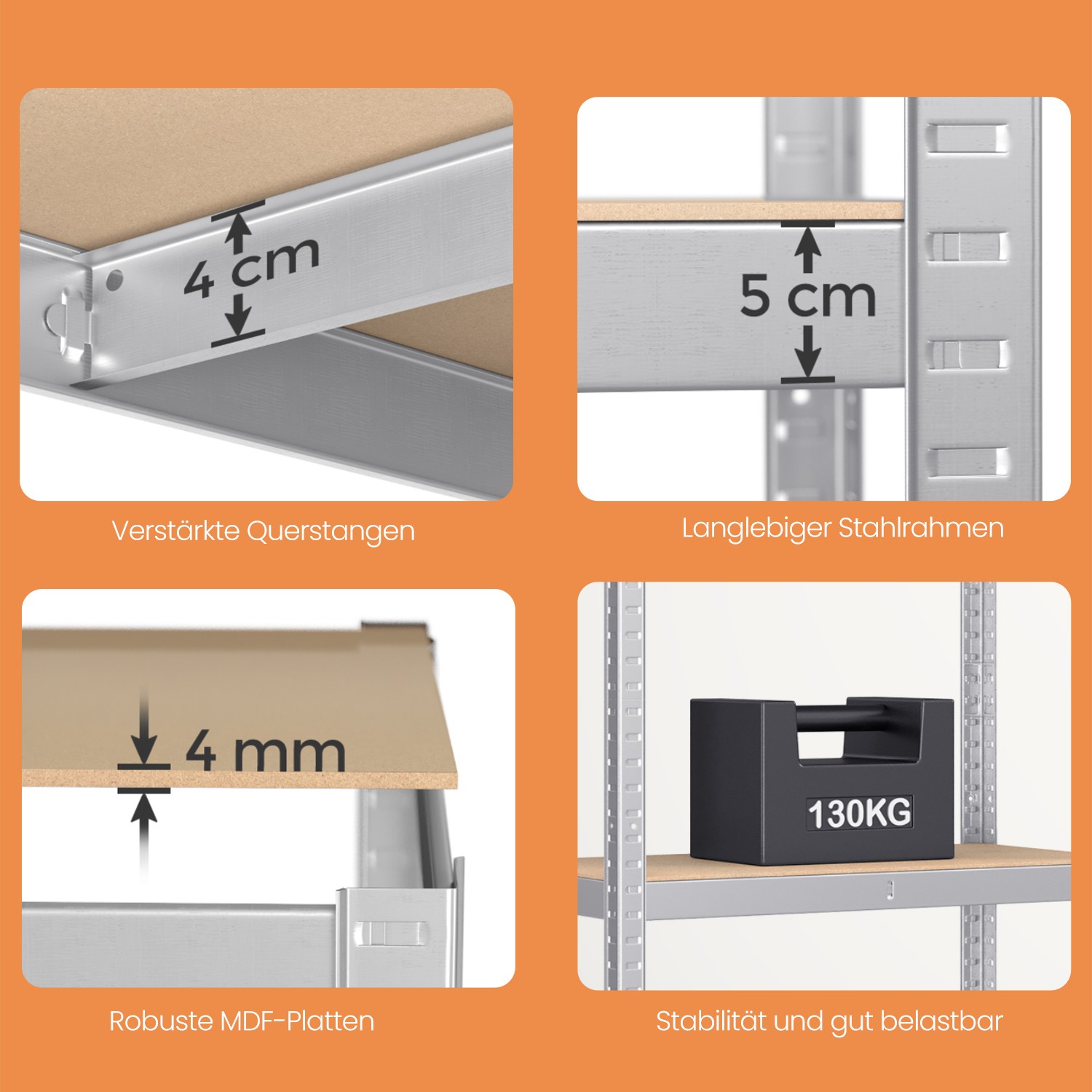 Standing shelf, bookshelf, storage shelf, 4 shelves, kitchen shelf, 40 x 80 x 160 cm, load capacity up to 520 kg, adjustable shelves, industrial design, gray