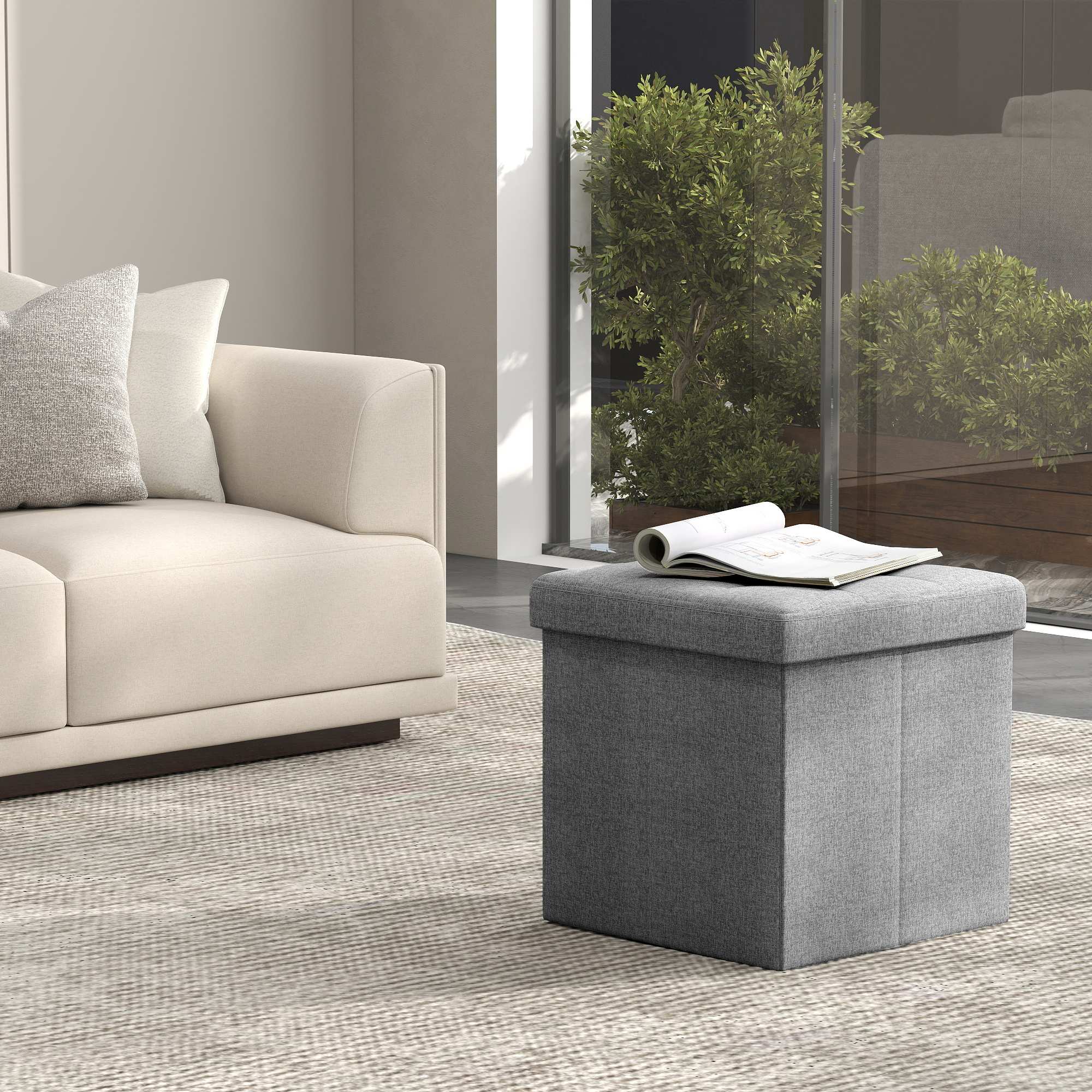 SONGMICS Storage Stool, Foldable Stool, Footstool, Folding Stool, Seat Cube for Living Room, Bedroom, 30 x 30 x 30 cm, Dark Gray LSF028G01