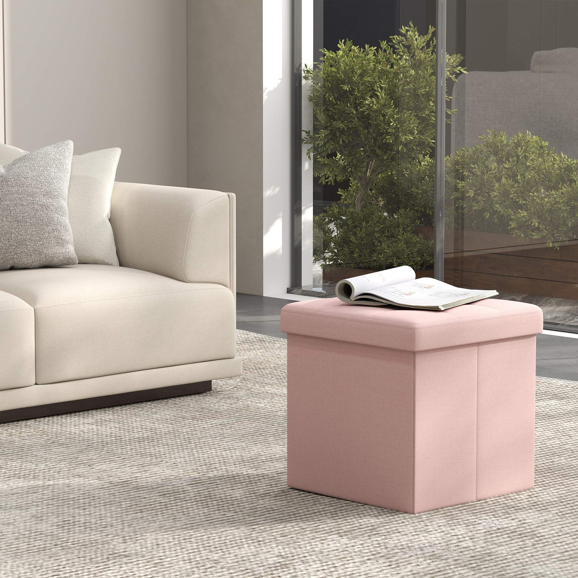 SONGMICS Storage Stool, Foldable Stool, Footstool, Folding Stool, Seat Cube for Living Room, Bedroom, 30 x 30 x 30 cm, Dark Gray LSF028G01