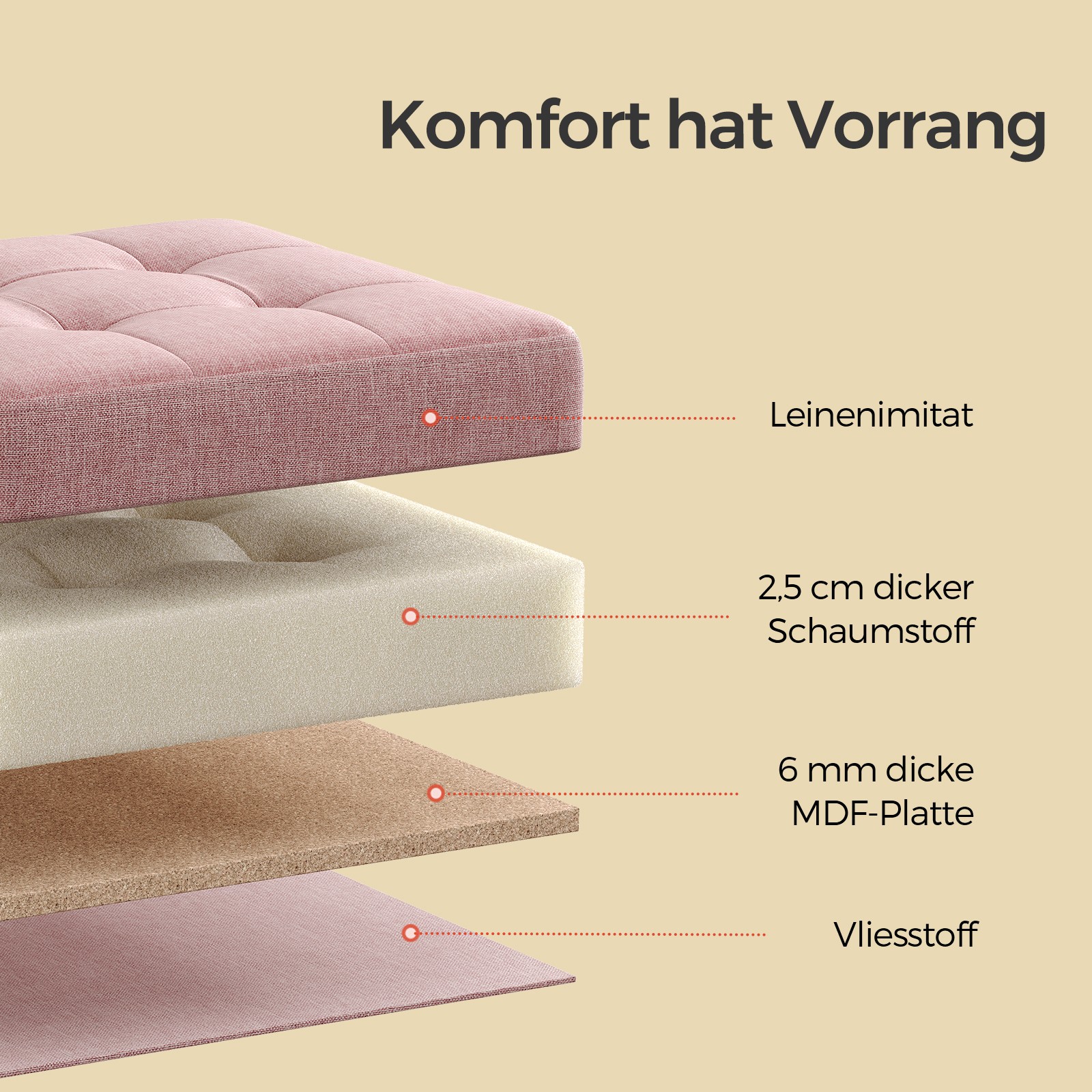 – Material: MDF (medium-density fiberboard), faux linen, 25D high-resilience foam