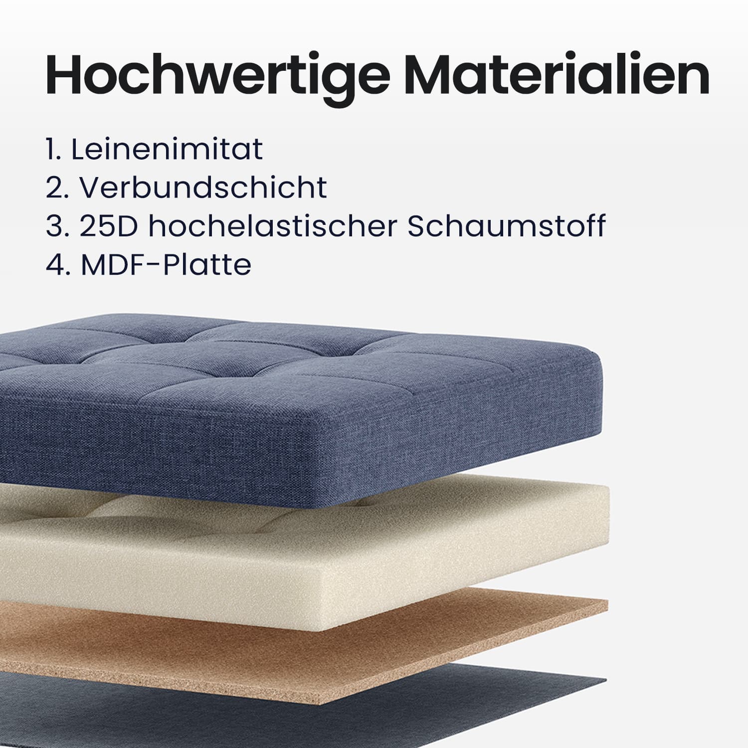 – Material: MDF (medium-density fiberboard), imitation linen, 25D high-resilience foam