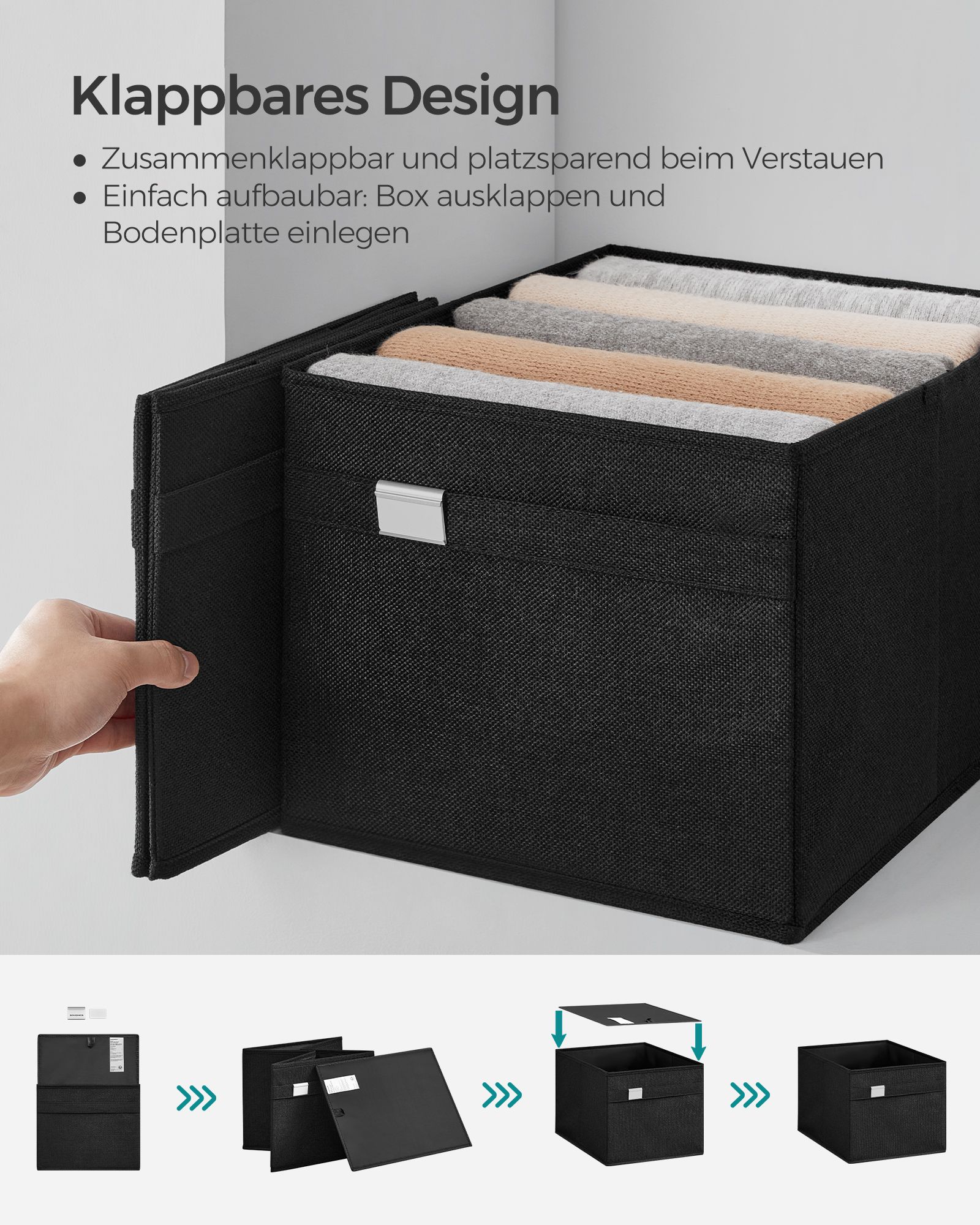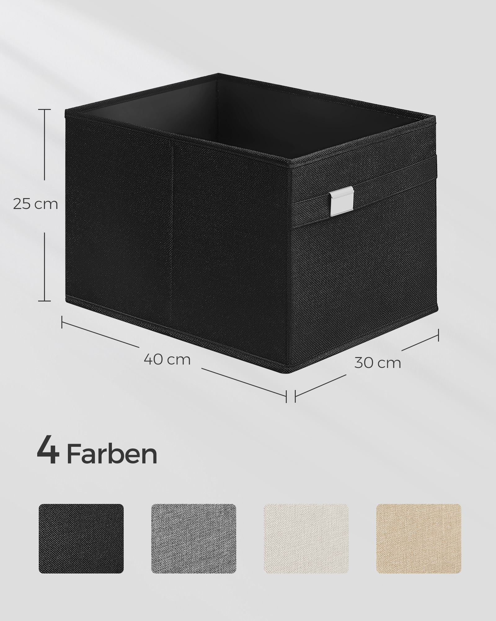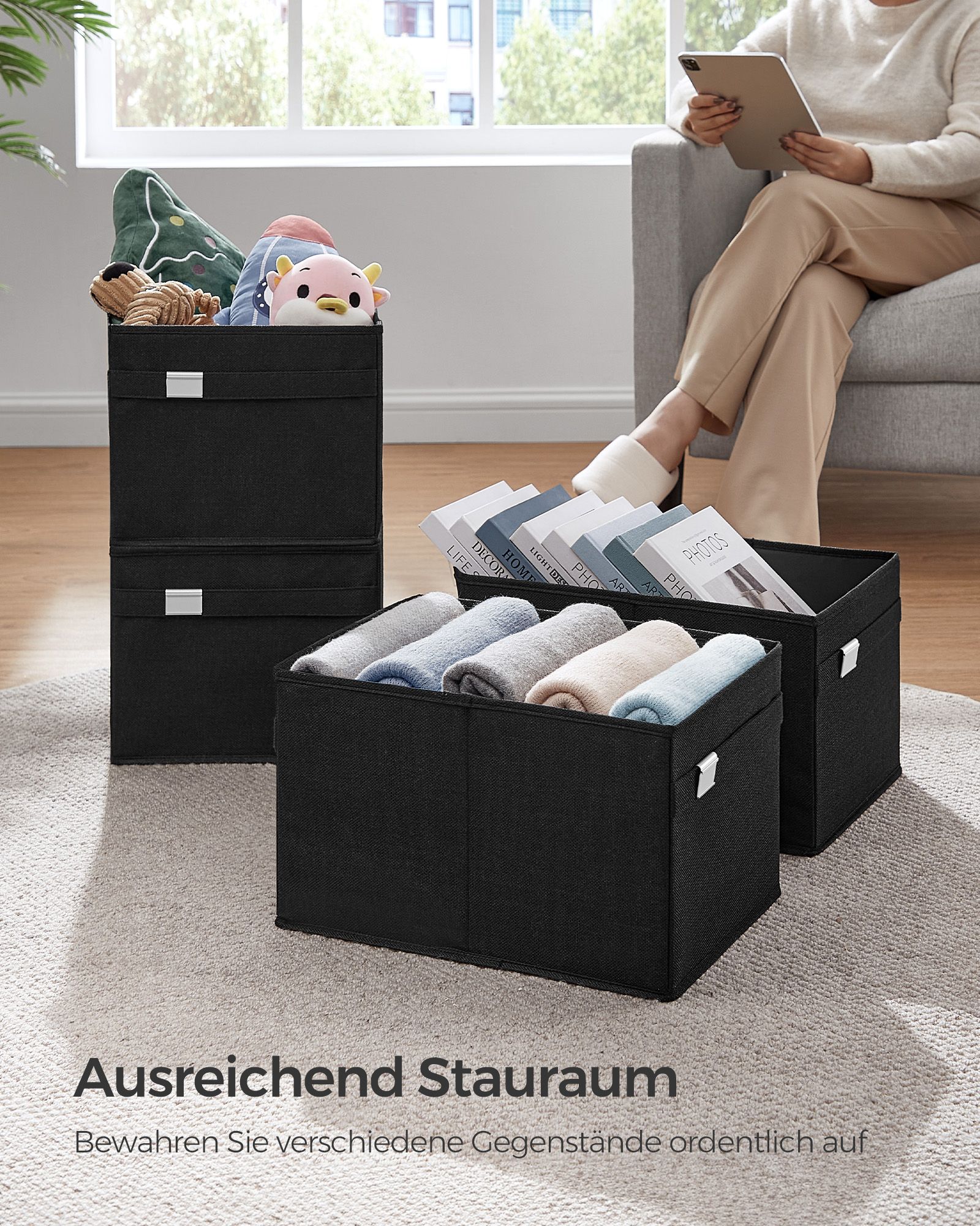 SONGMICS storage box, set of 4, organizing boxes, 40 x 30 x 25 cm, 2 handles, foldable, Oxford fabric and imitation linen, easy to clean, metal label holder
