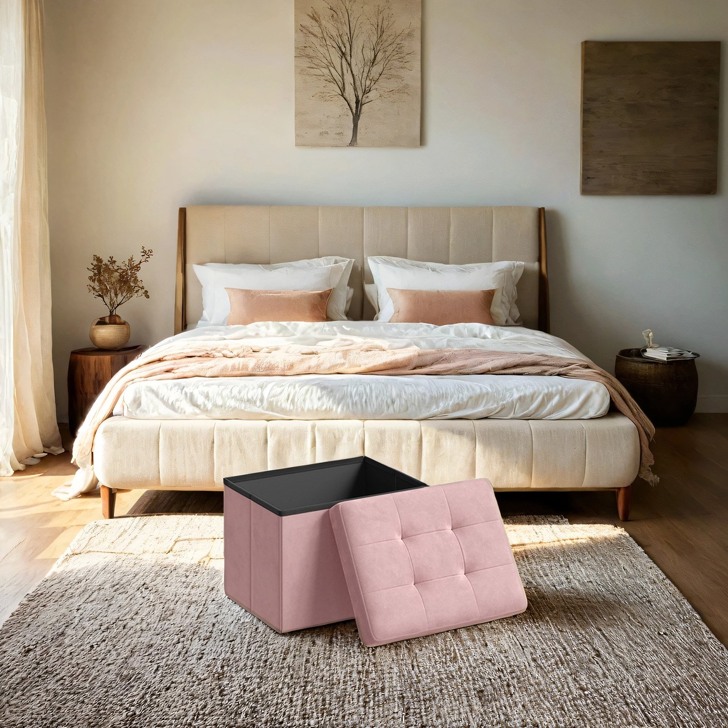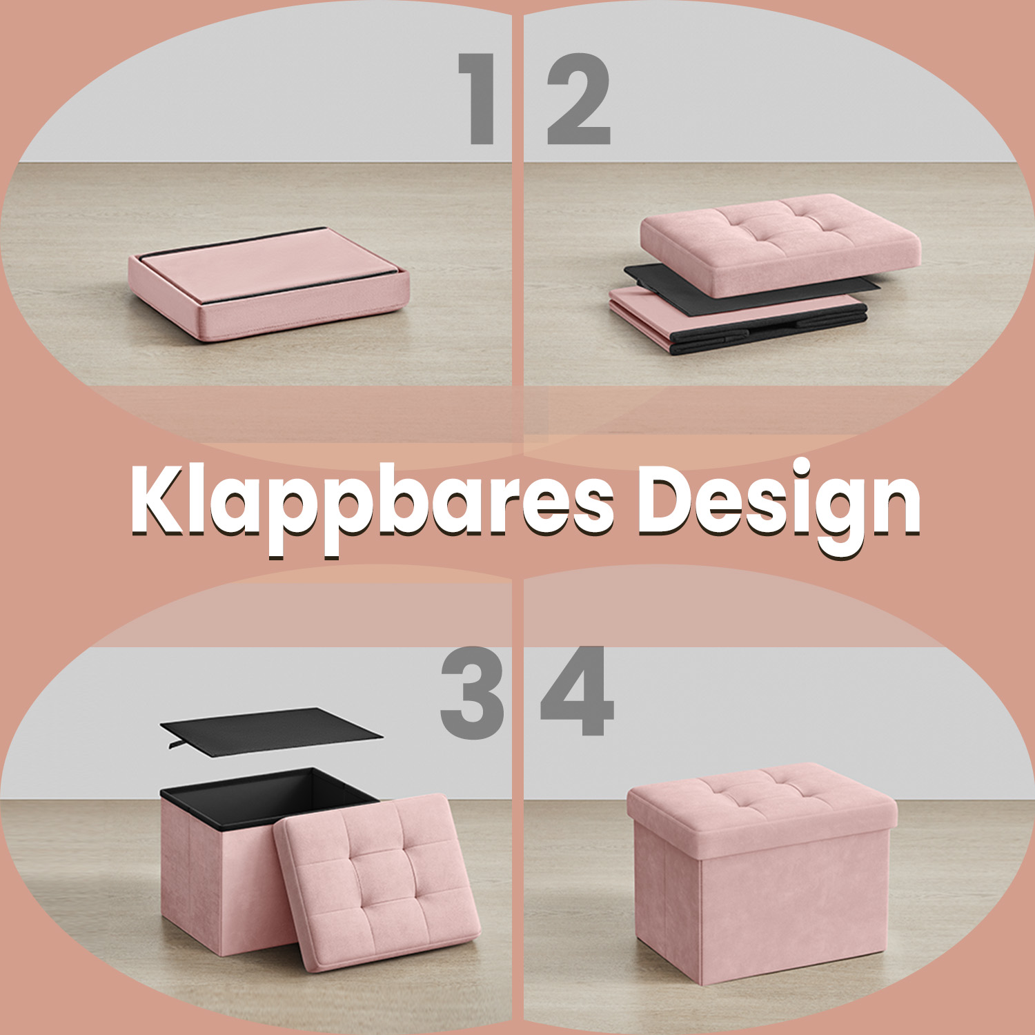 Storage stool, small footstool, bench, 38 x 38 x 38 cm, load capacity up to 300 kg, for living room, bedroom, dormitory, dove gray