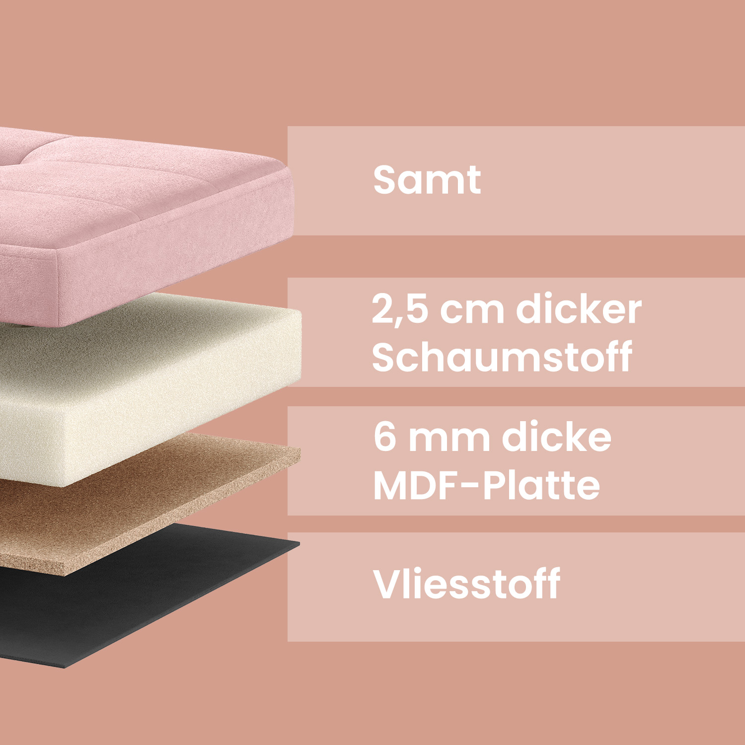 Material: MDF (medium-density fiberboard), velvet, foam