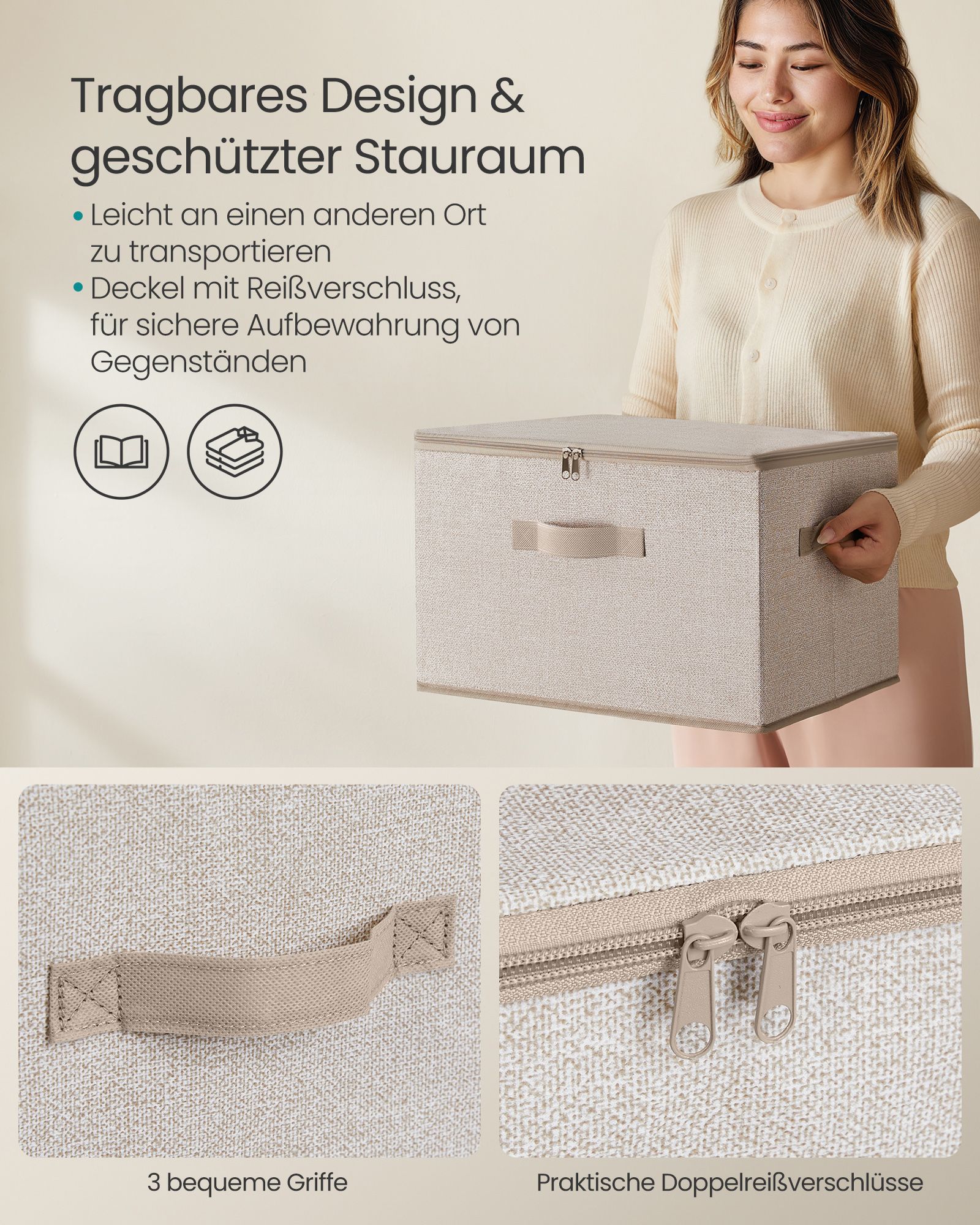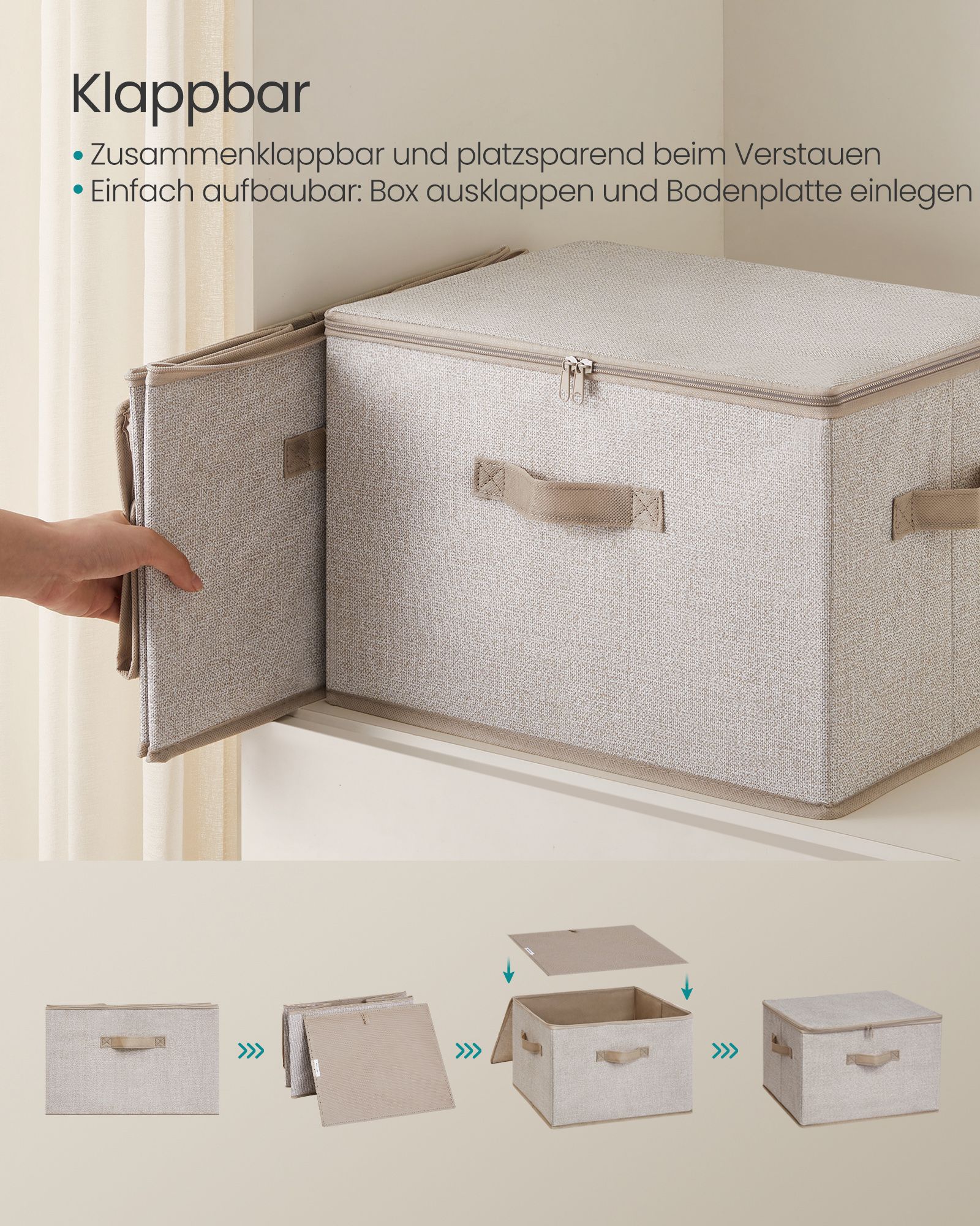 SONGMICS storage box with lid, set of 3, foldable fabric box with handles, storage for clothes and toiletries