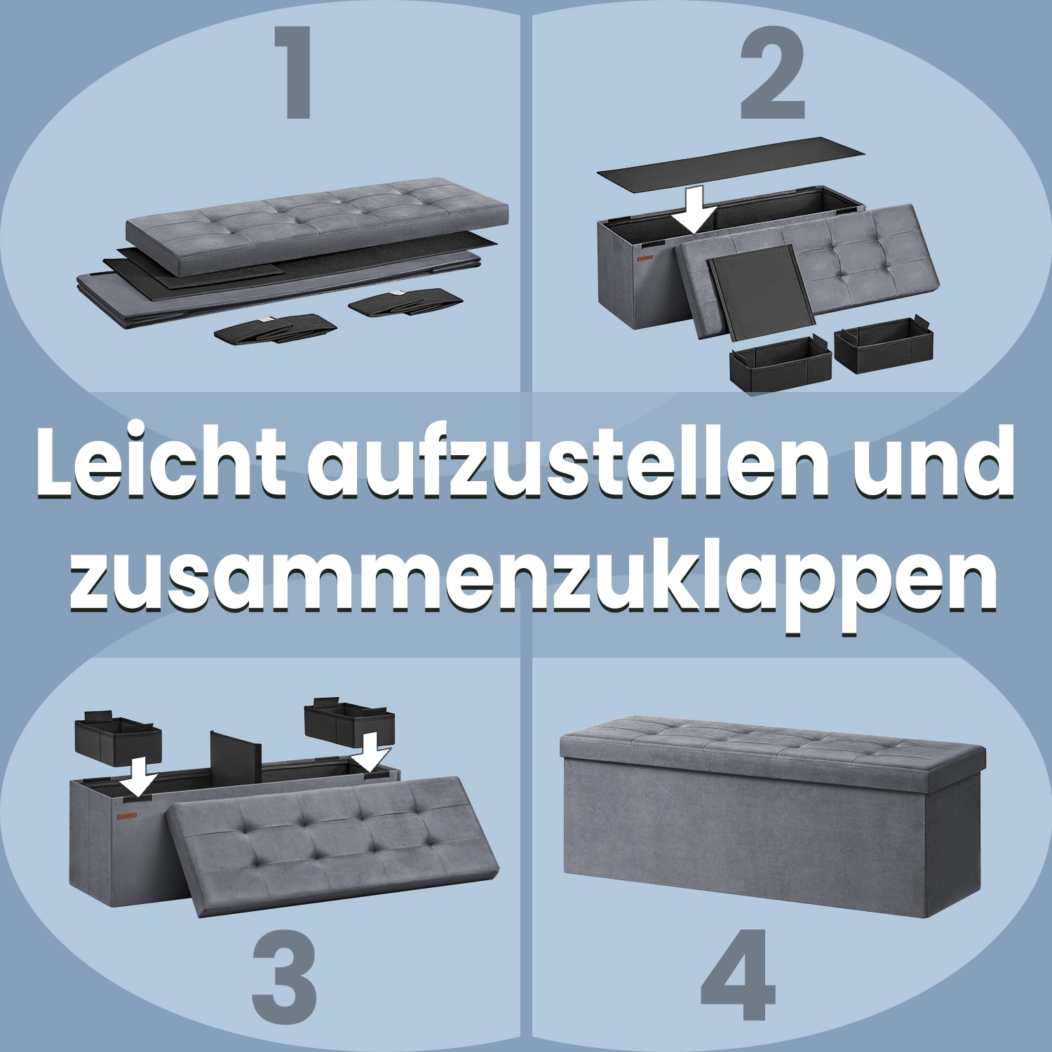Storage stool, bench, 38 x 110 x 38 cm, foldable, footstool, load capacity up to 300 kg, for living room, bedroom, hallway, slate gray