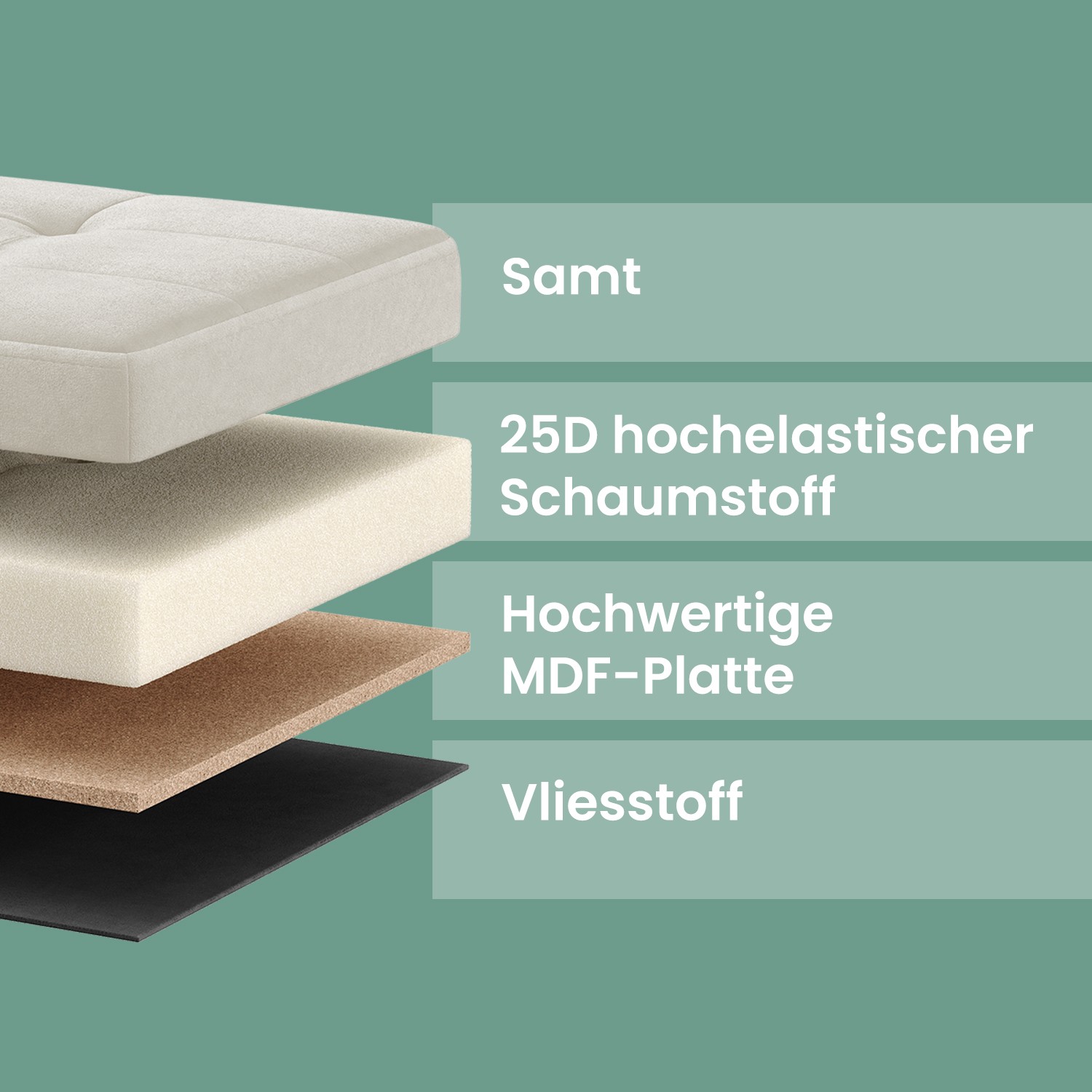 – Material: MDF (medium-density fiberboard), velvet, 25D high-resilience foam