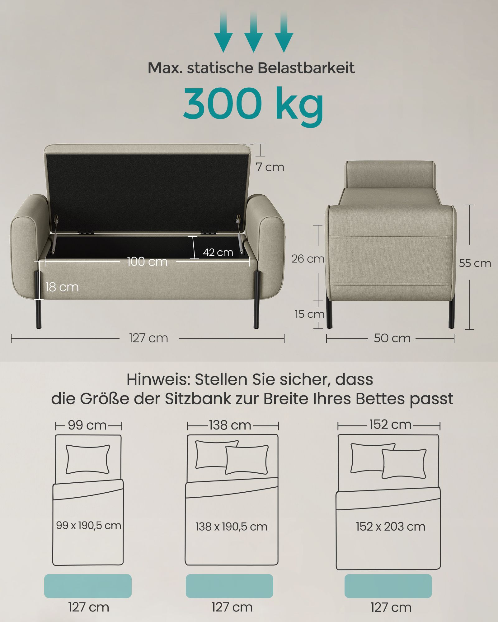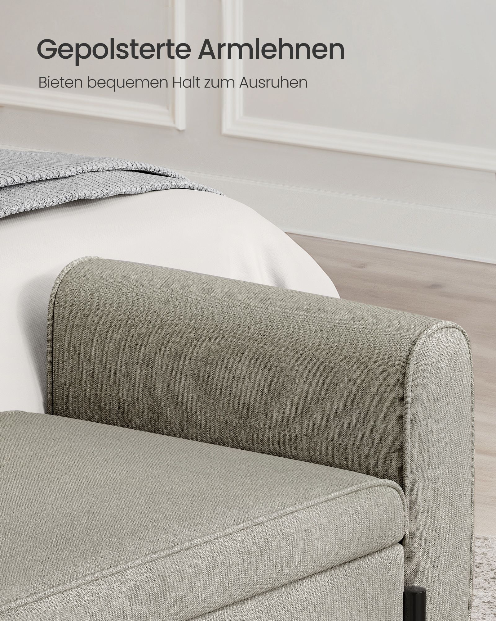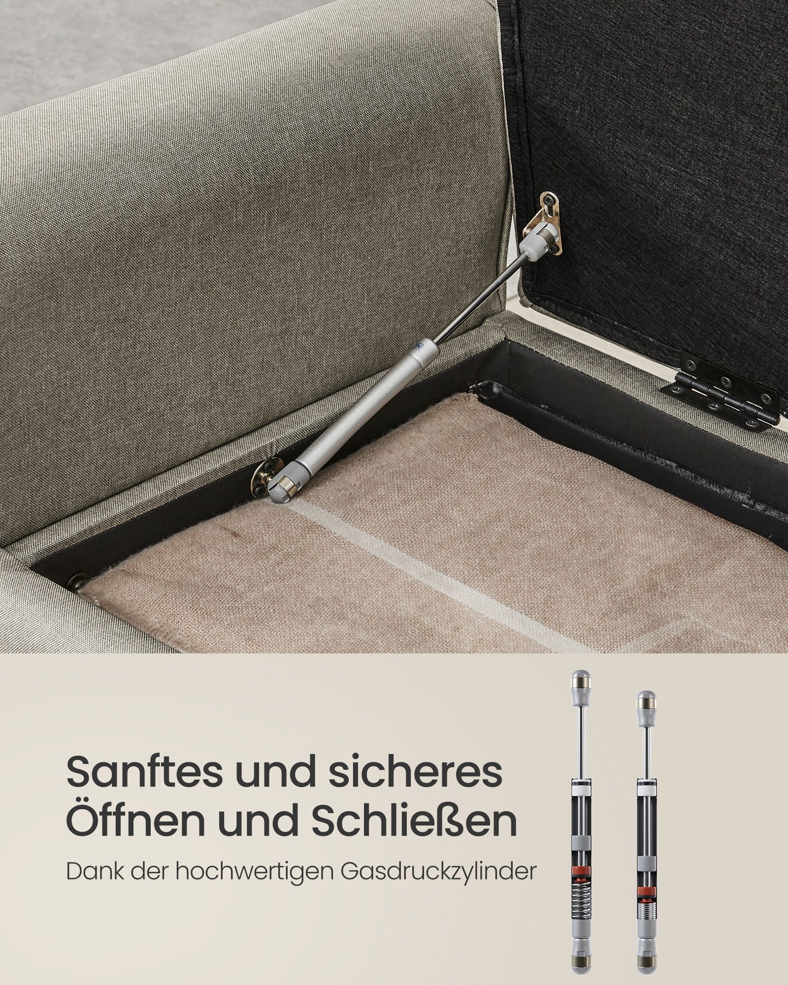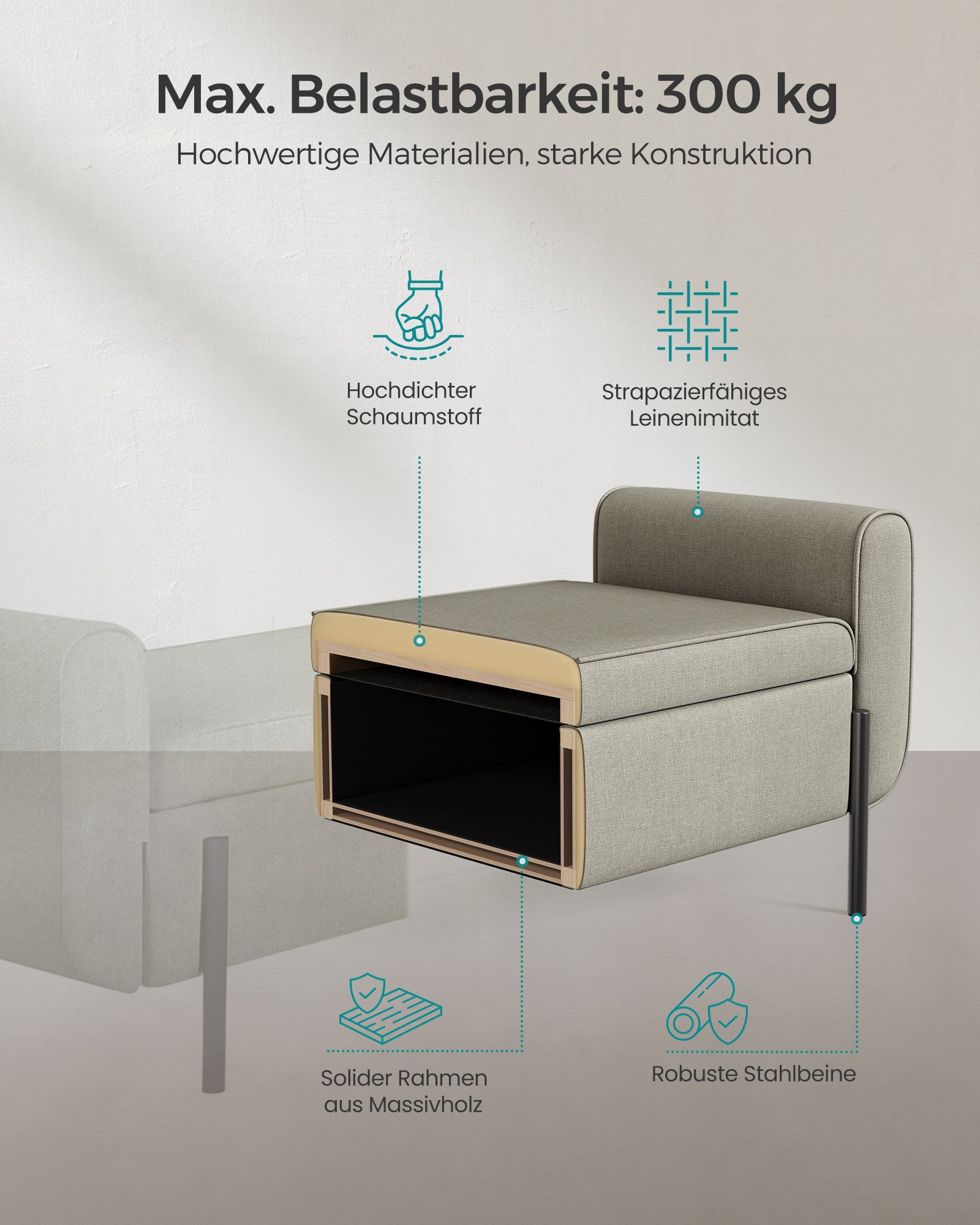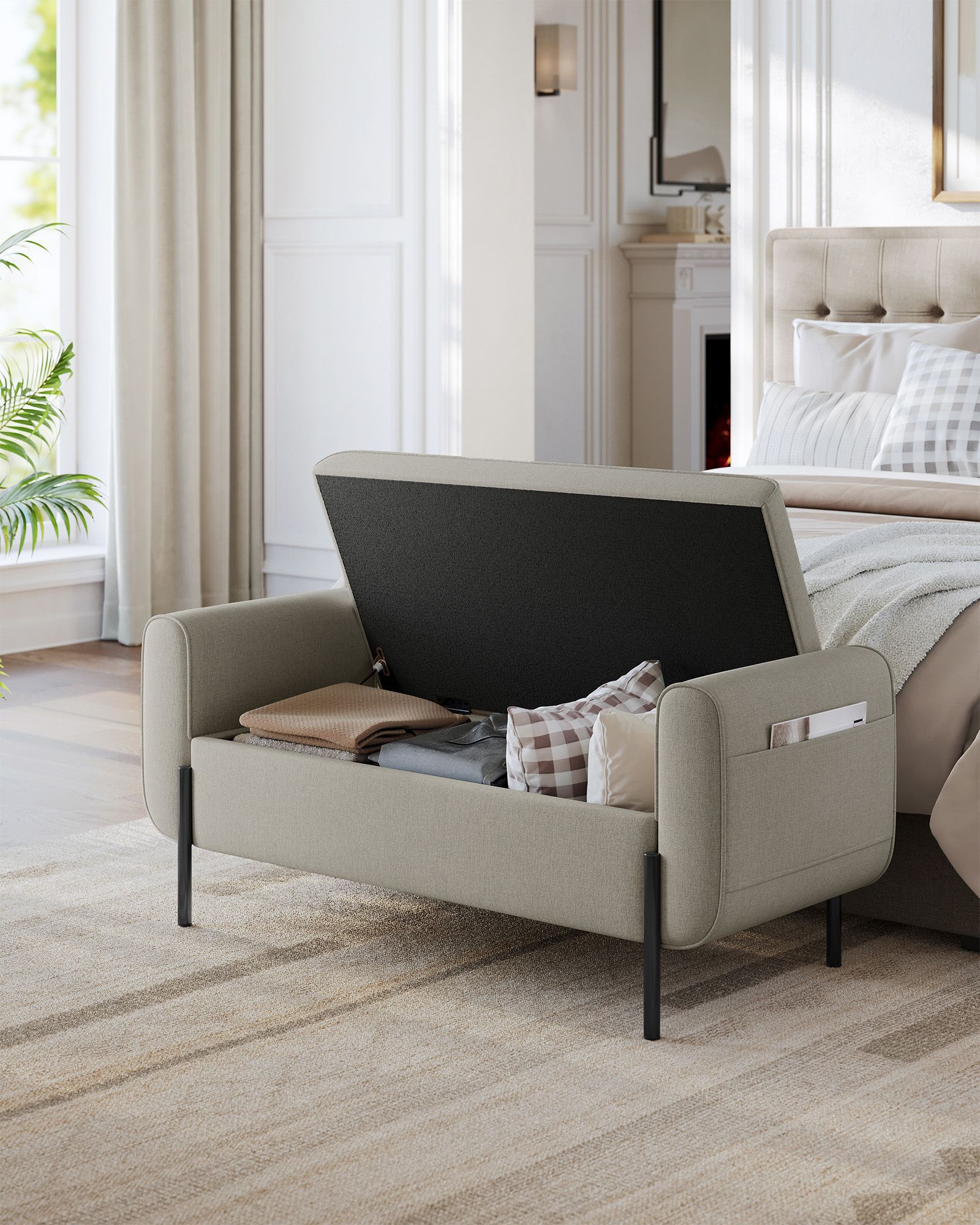 SONGMICS Storage Stool, Bench with Armrests, Seat Chest, Storage Box, for Living Room, Bedroom, Hallway, Steel Legs, Dove Gray LOM072G02