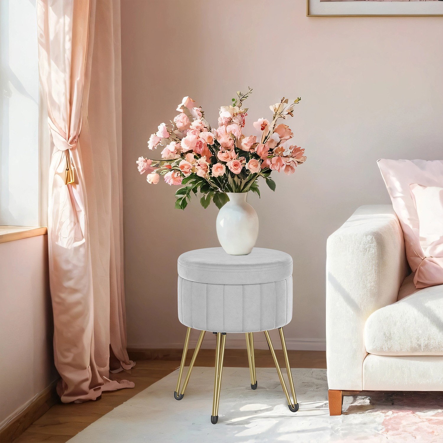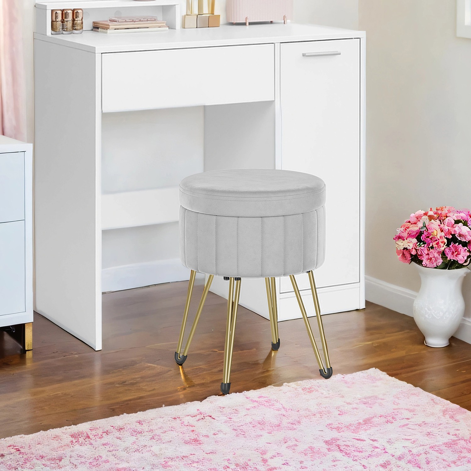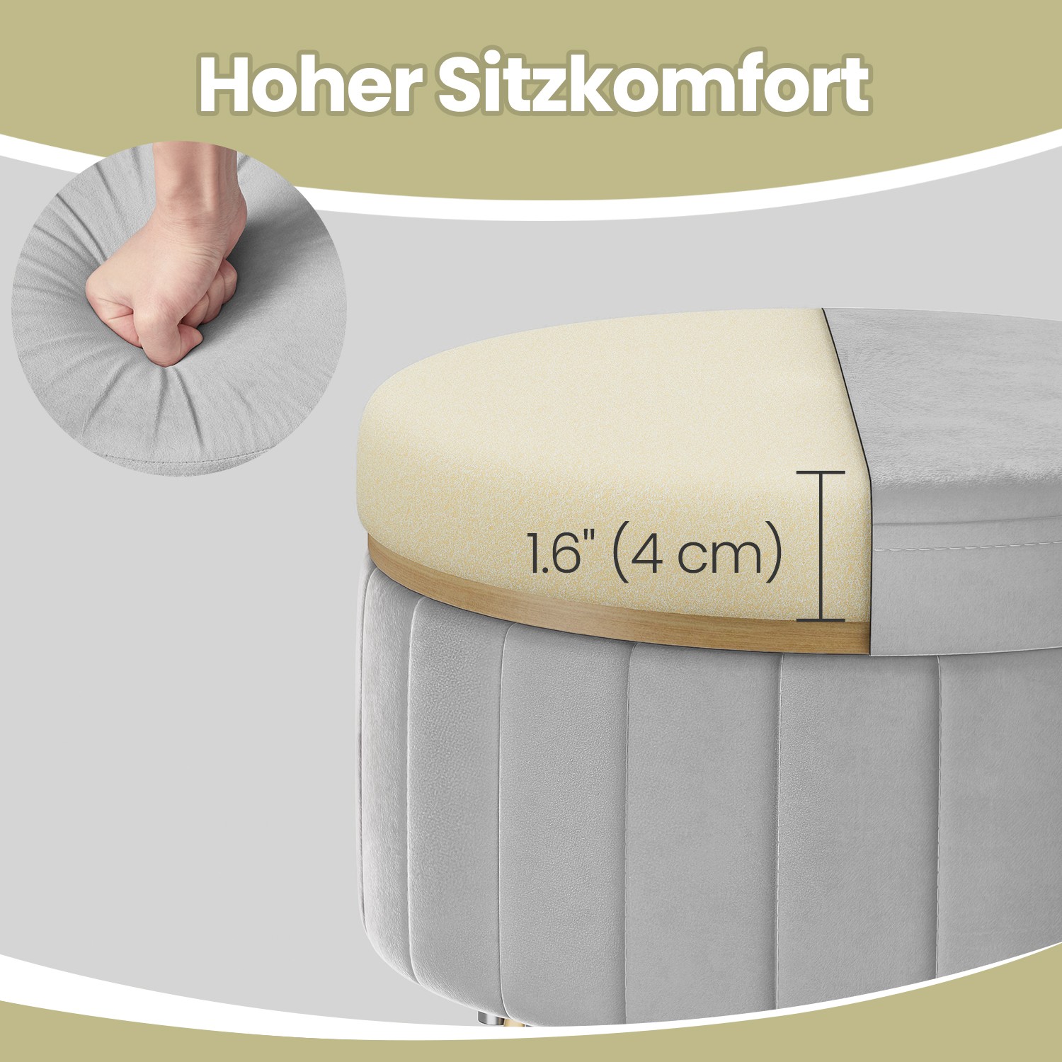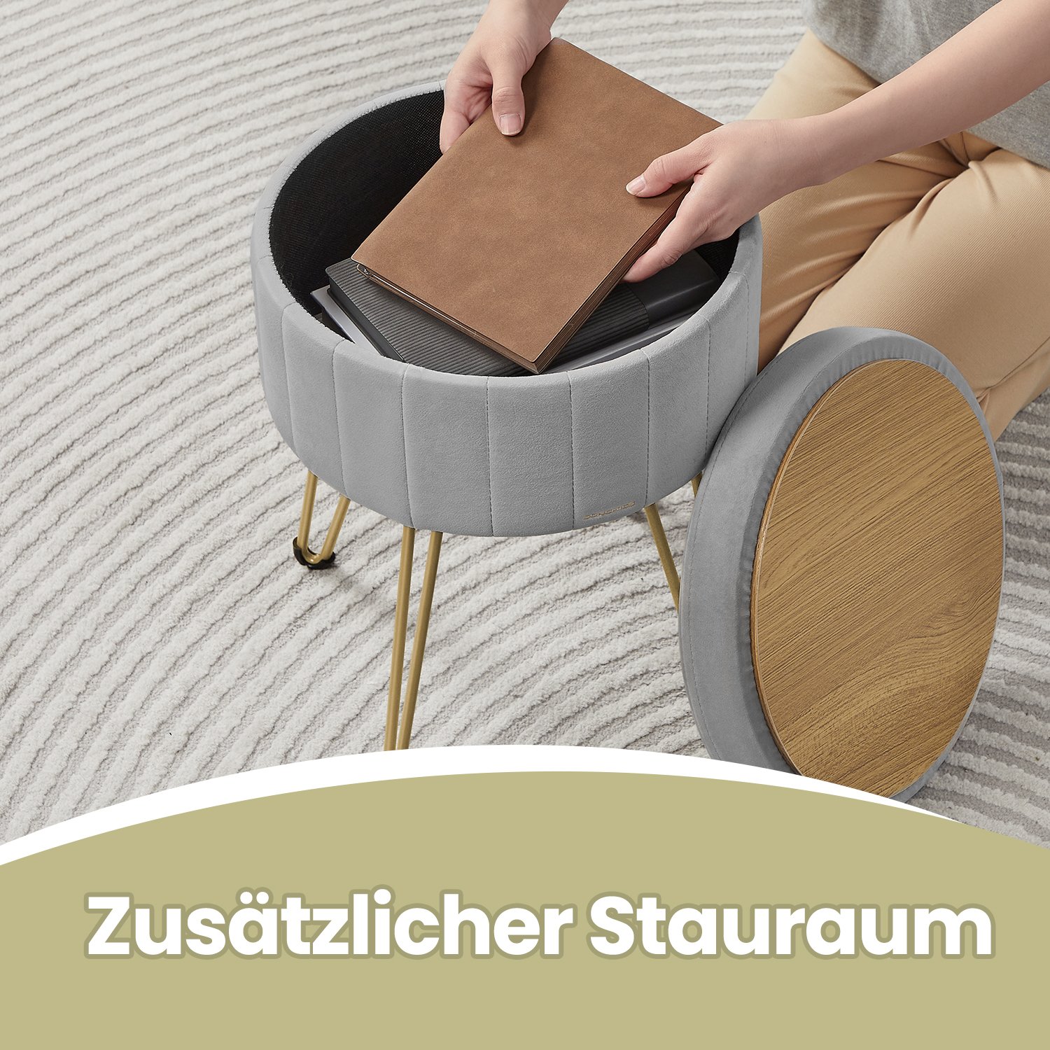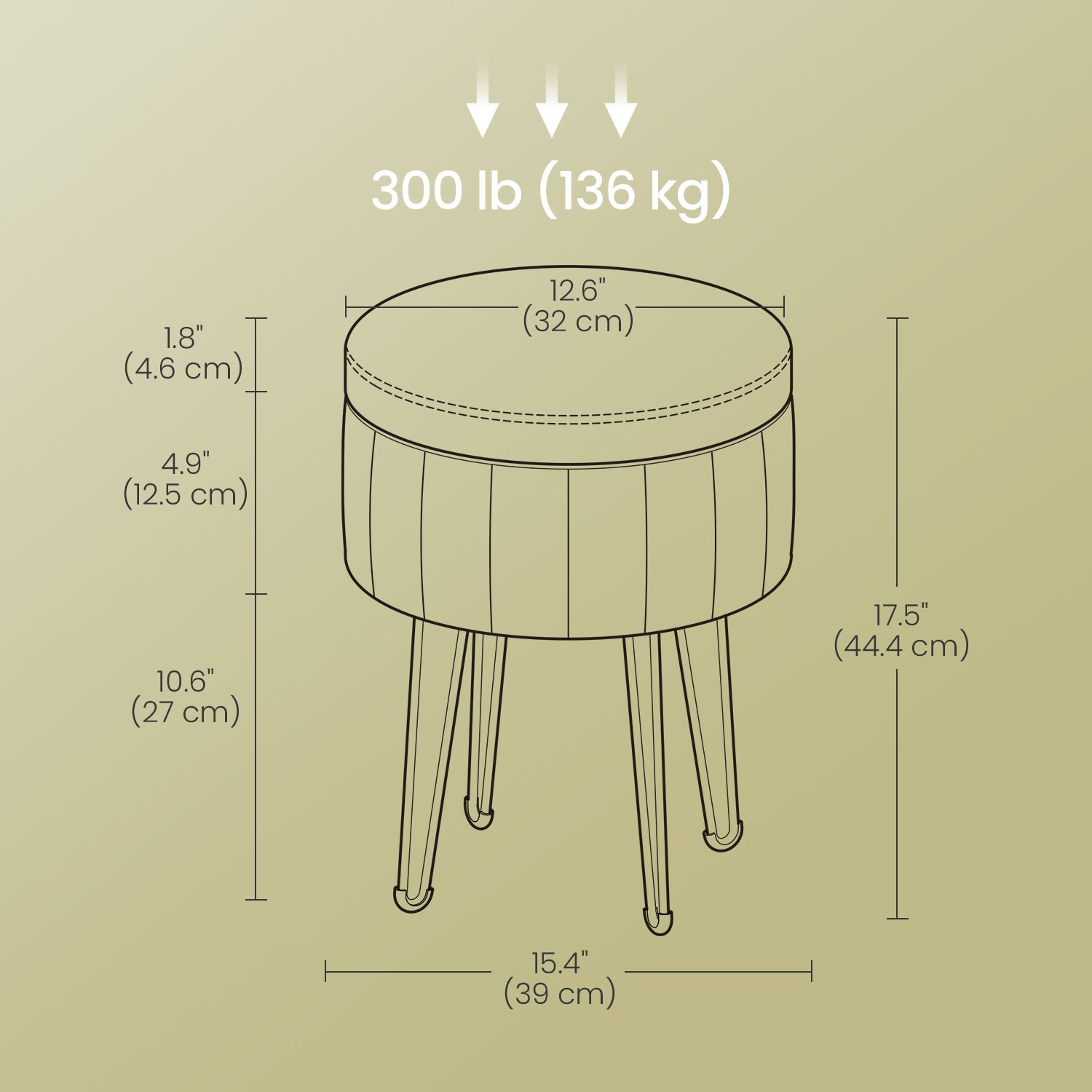 SONGMICS Stool, stool with storage space, velvet makeup stool, round stool, 39 cm d, 44.4 cm H, 4 metal legs, for dressing room, living room, bedroom, ink black LOM003B01