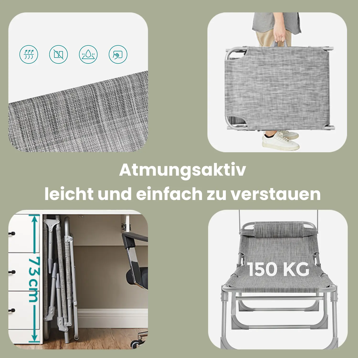 Relaxed atmosphere! Whether on the patio, balcony, or in the garden, this sun lounger is the perfect decorative element to create a relaxed atmosphere. It will make you feel like you’re on vacation at the beach, even at home. Doing nothing! Who wants to assemble this deck chair? No one… Don’t worry, SONGMICS had a good idea! All you have to do is unfold it, and you’ll have a sun lounger for moments of complete relaxation.Product details: Color: Greige Material: Iron, synthetic fiber fabric Size: 53 x 193 x 29.5 cm (L x W x H) Weight: 6.8 kg Max. static load capacity: 150 kg Scope of delivery: 1 x sun lounger SONGMICS notes: The maximum load capacity of the sun lounger is 150 kg. Please do not exceed this maximum weight. Please unfold the sun lounger completely before use. Please do not leave the product outdoors for long periods of time; do not expose the sun lounger to rain or strong sunlight.