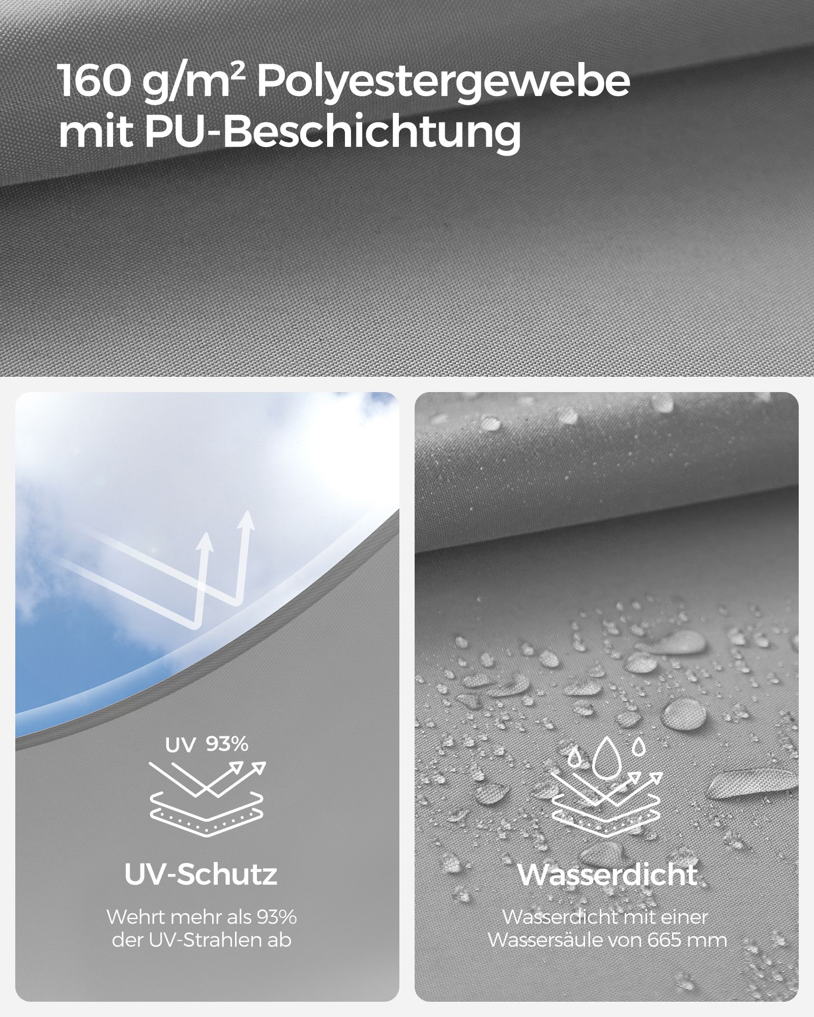 Material: 160 g/m² polyester fabric with PU coating, stainless steel ring